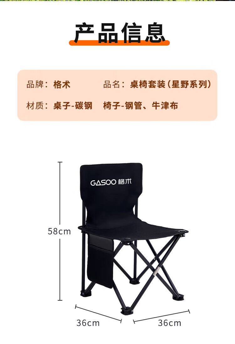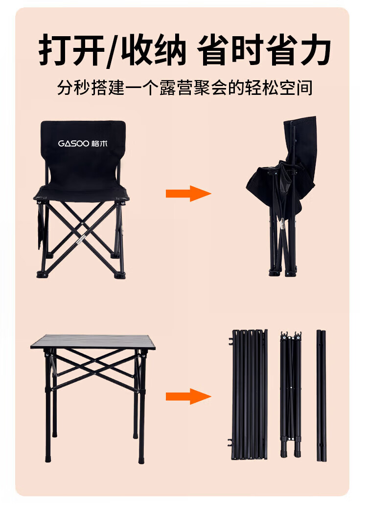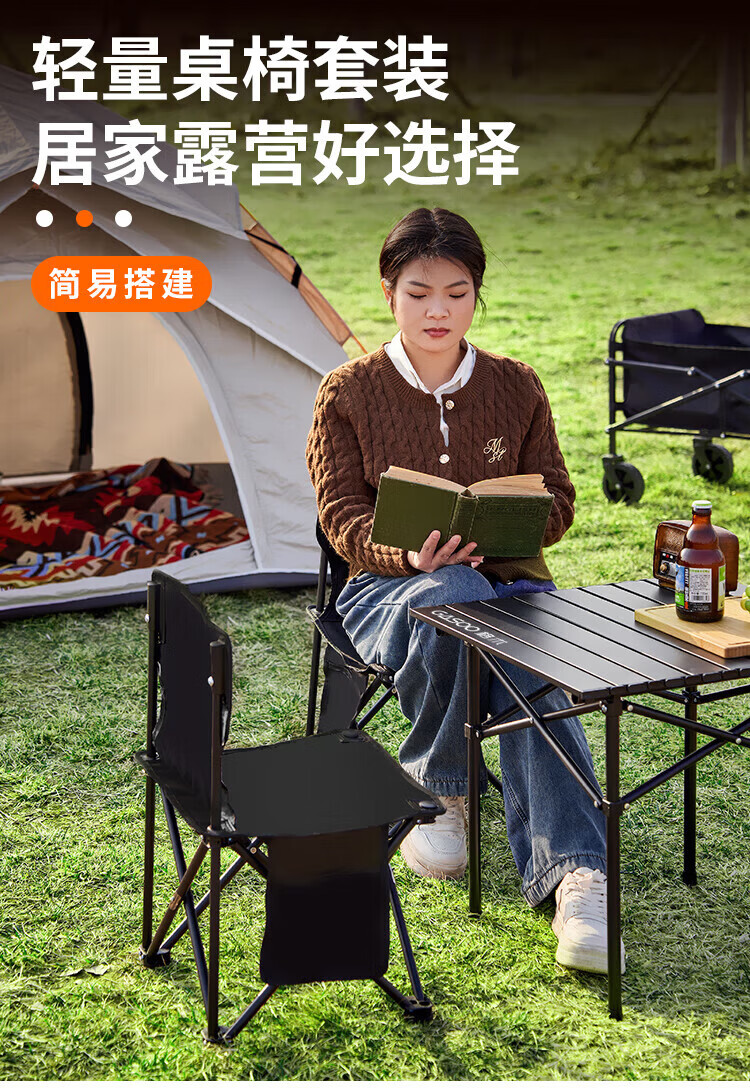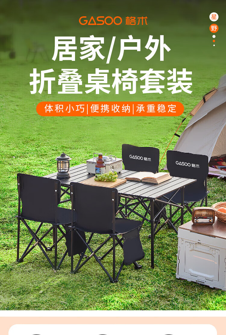 gosoo露营装备全套户外桌椅套装组合折叠桌椅便携野餐蛋卷桌一桌四椅