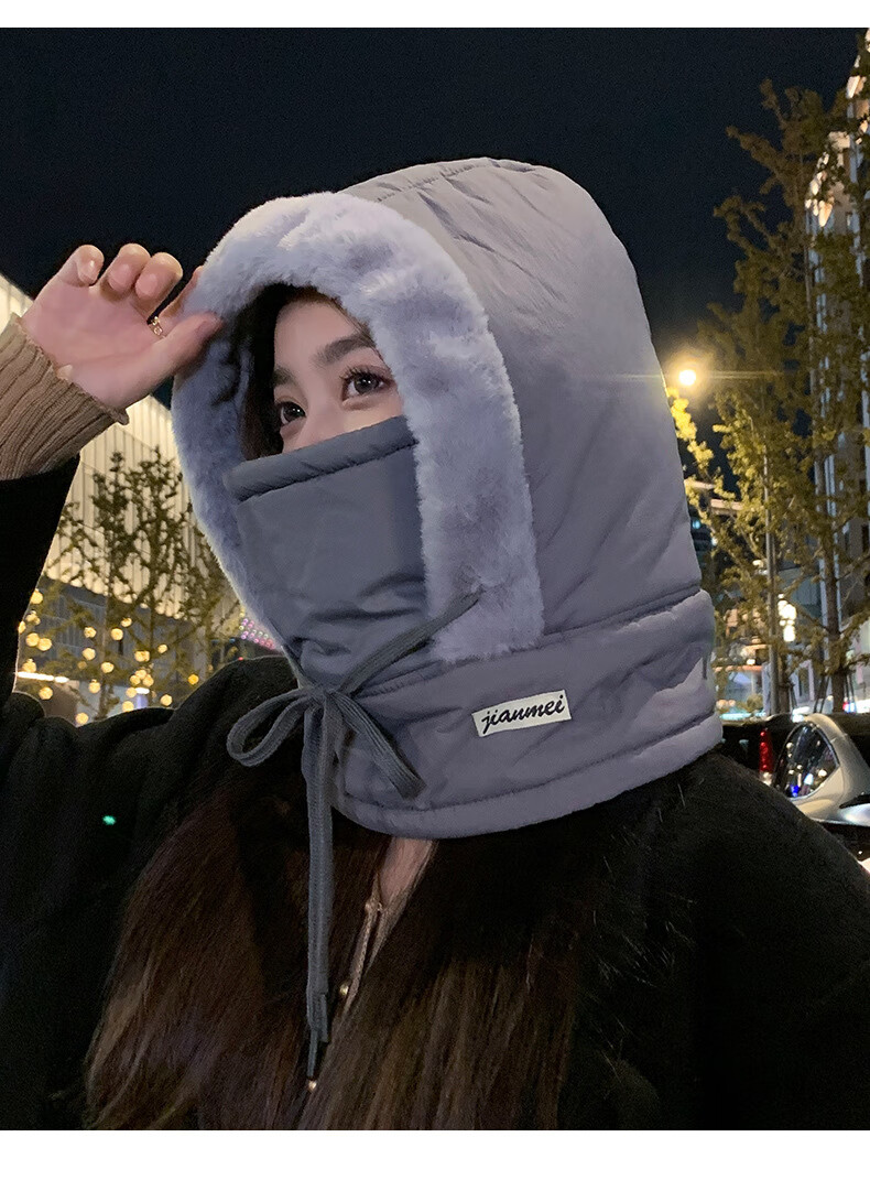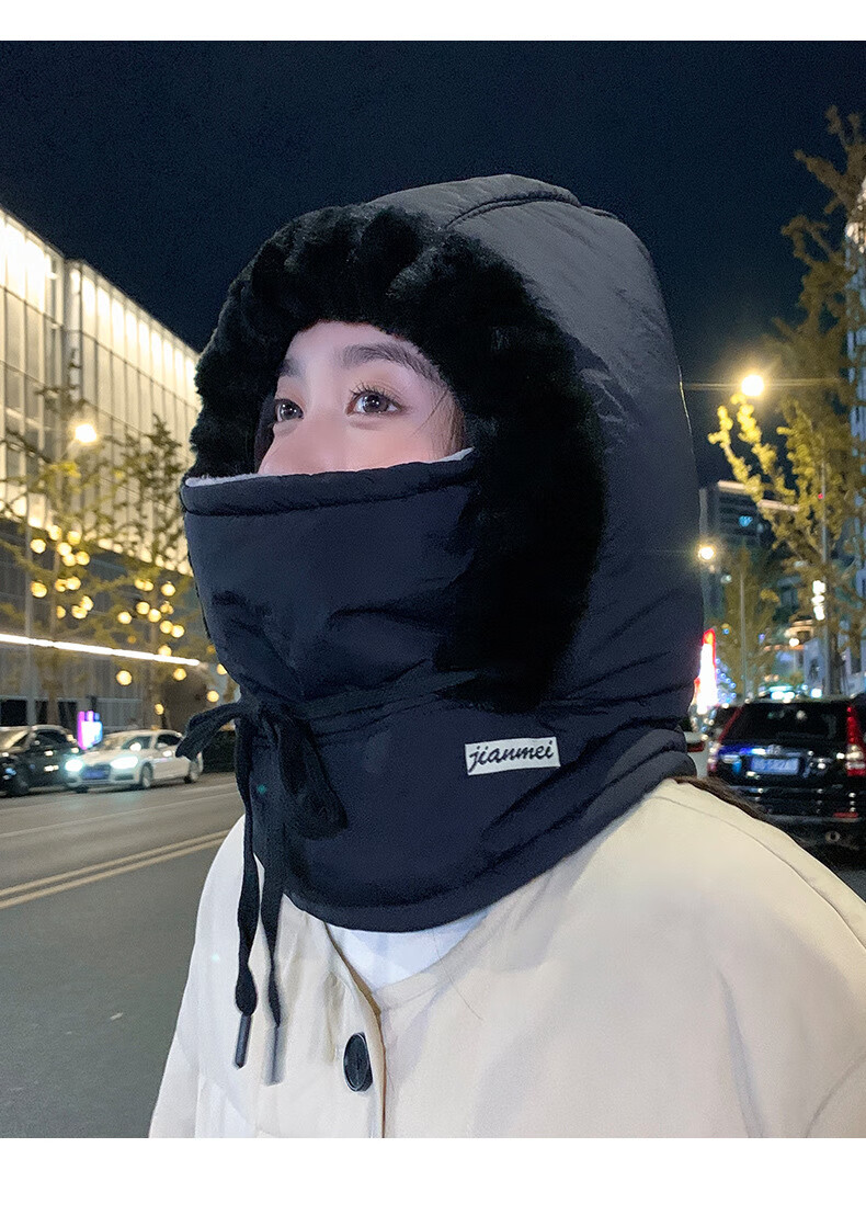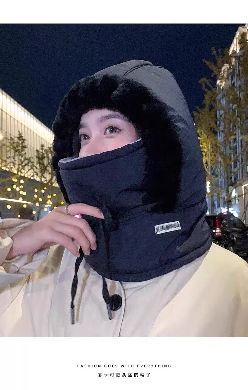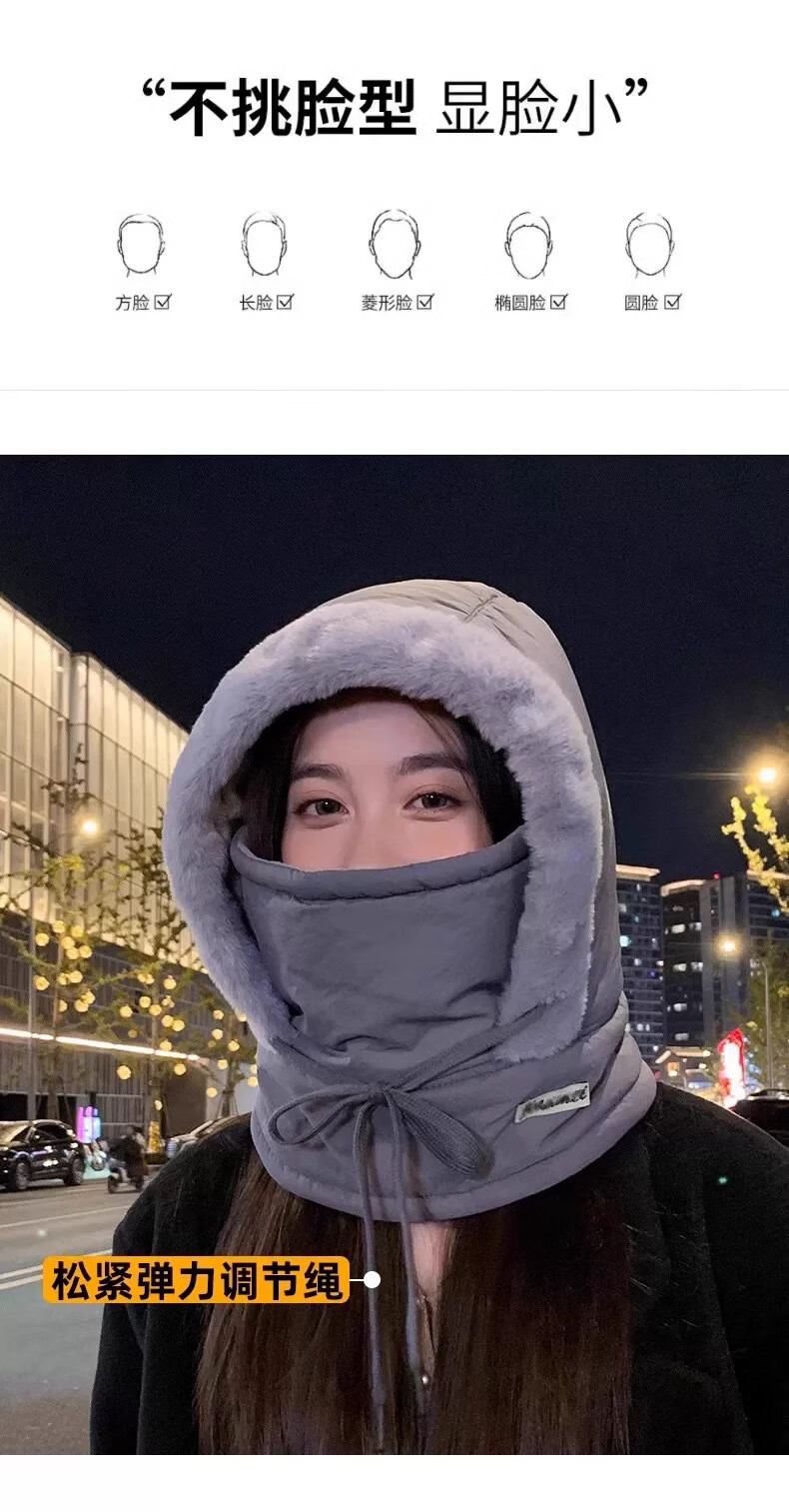 2025冬季保暖雷锋帽男女加绒加厚护耳围脖帽子一体骑行防寒面罩 男士保暖帽-深灰色【不惧寒风】