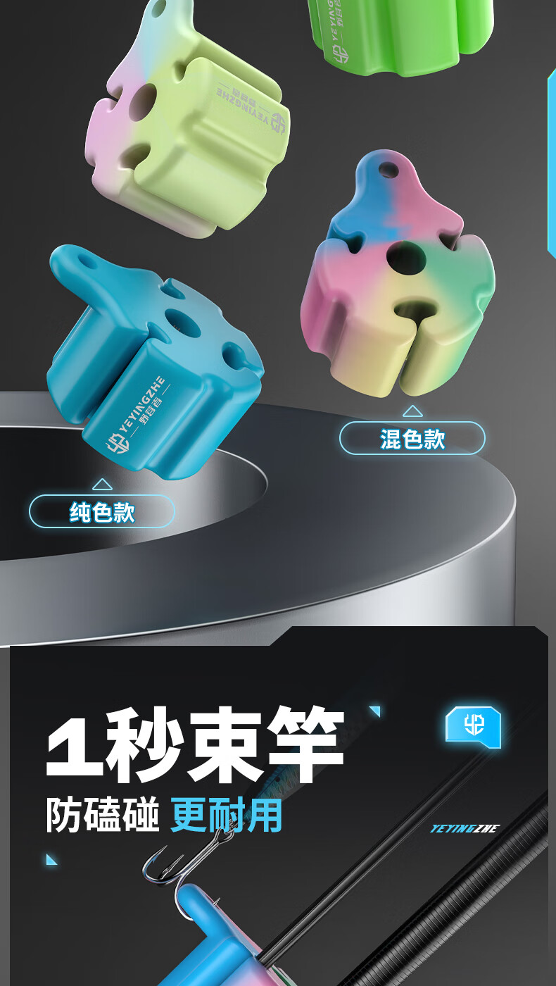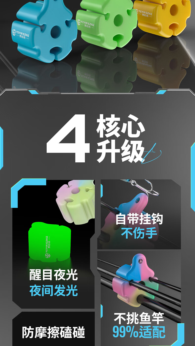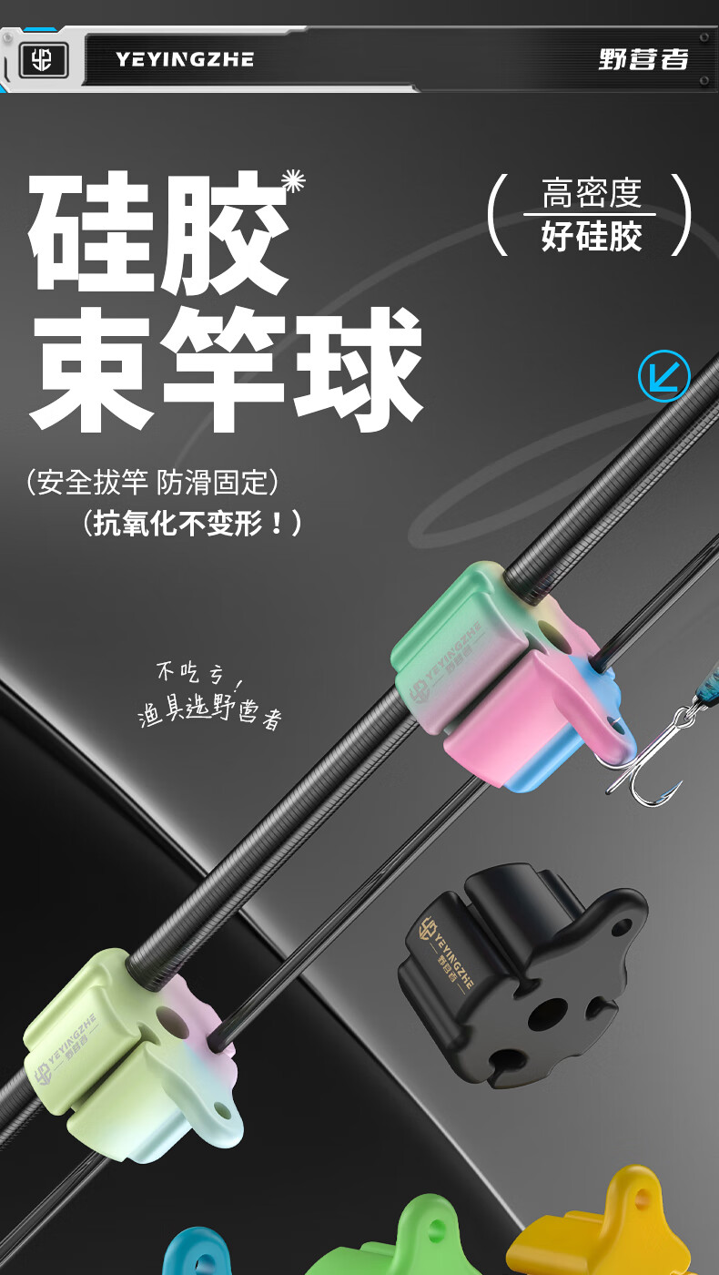野营者硅胶路亚束竿球夜光退拔杆神器束杆球微物束杆带收纳保护套 真硅胶-大孔径版【四色混色】路亚通用 一个装
