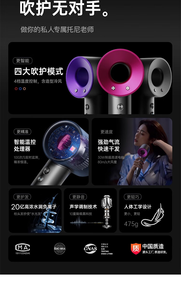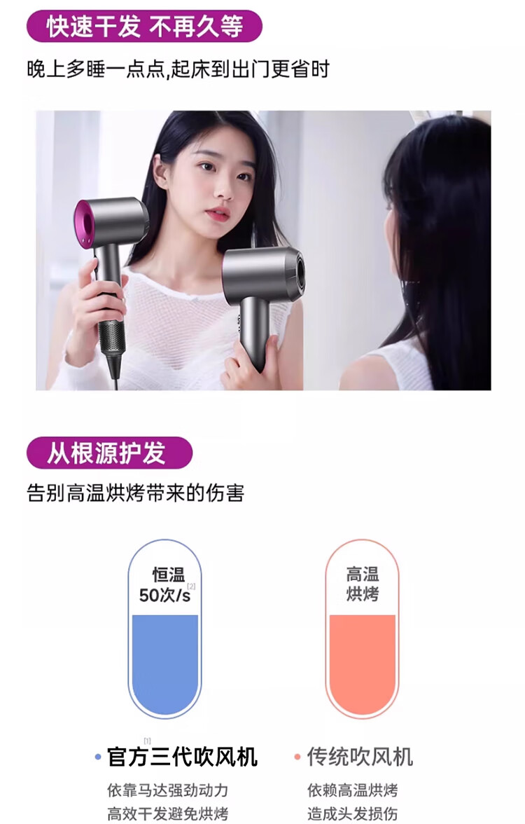 RASW【落日玫瑰丨挚爱限定】德国吹风机家用静音负离子大功率不伤发恒温吹风筒速干情人节礼物女朋友 【绅士灰】礼盒包装 45亿负离子护发 520情人节女生生日礼物实用走心高级感送女友