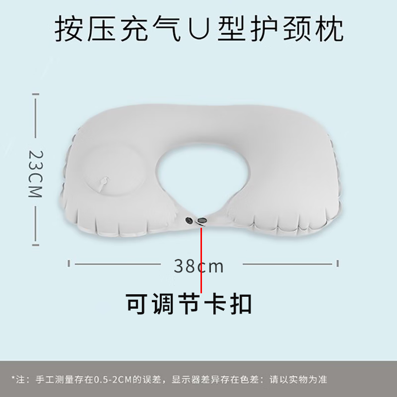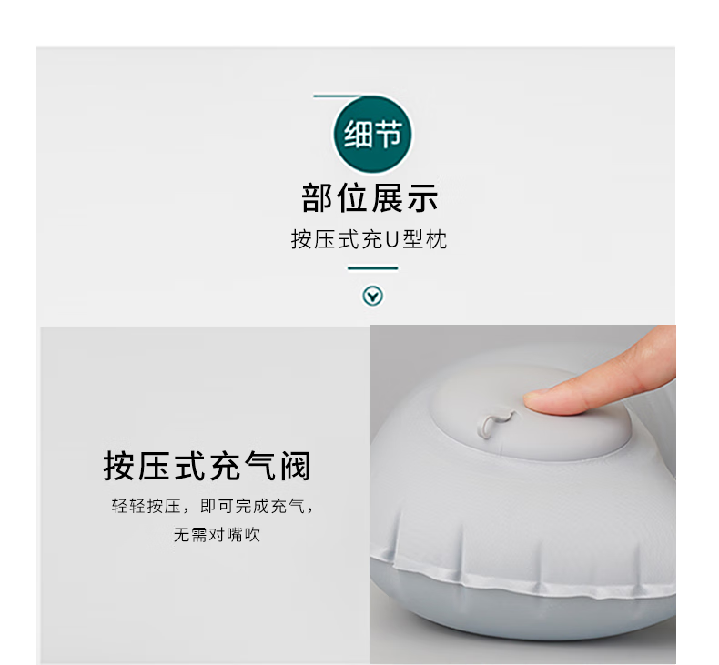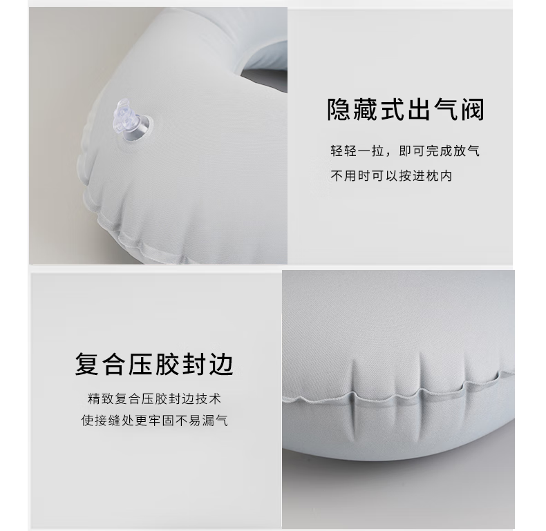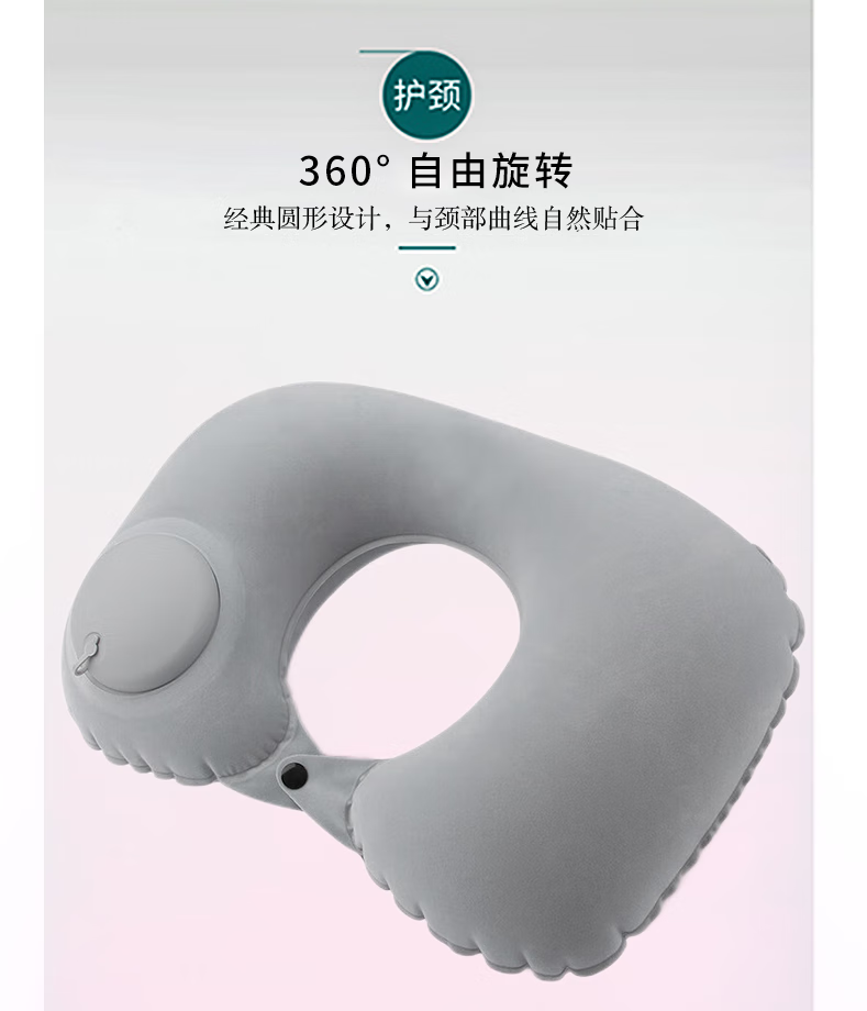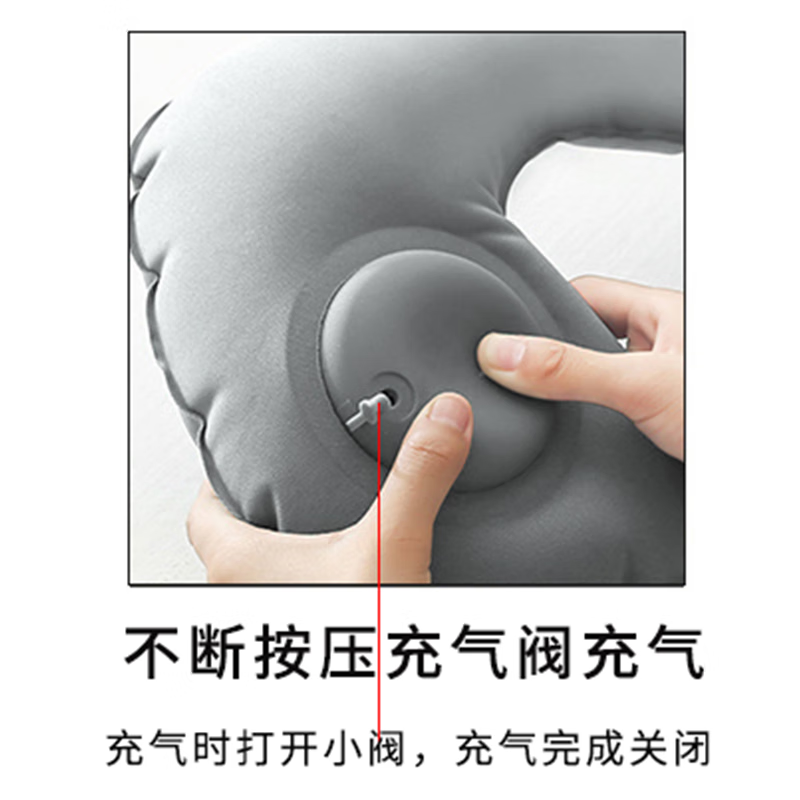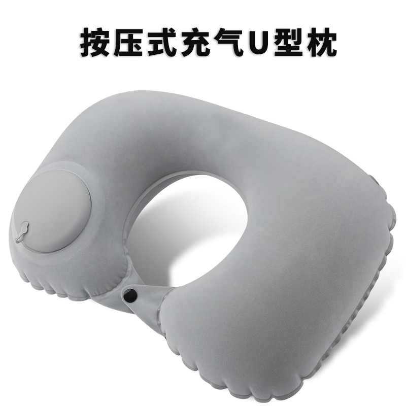 山头林村【优选百货】 充气u型枕 户外便携式自动旅行枕靠垫按压午睡可折 【植绒灰色】