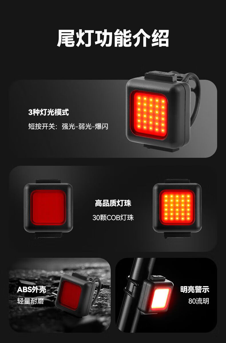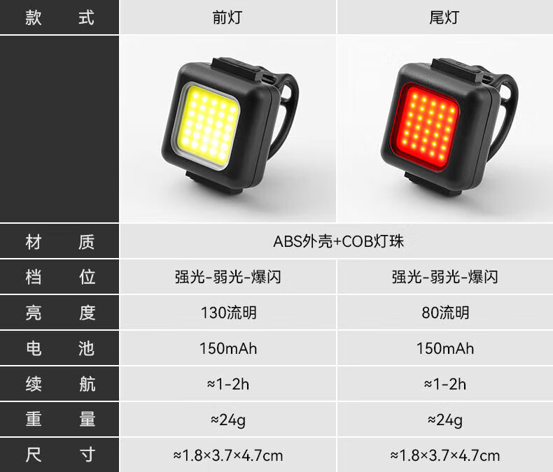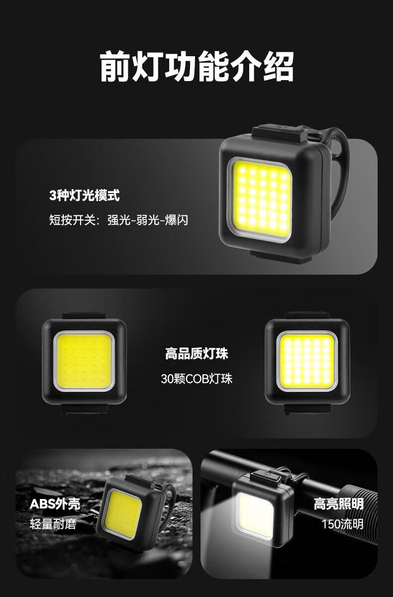 【优选】运动户外儿童 COB前灯自行车前灯尾灯强光手电筒儿童 自 小巧便捷丨防水耐用丨续航 固定灯带【1个装】可调节