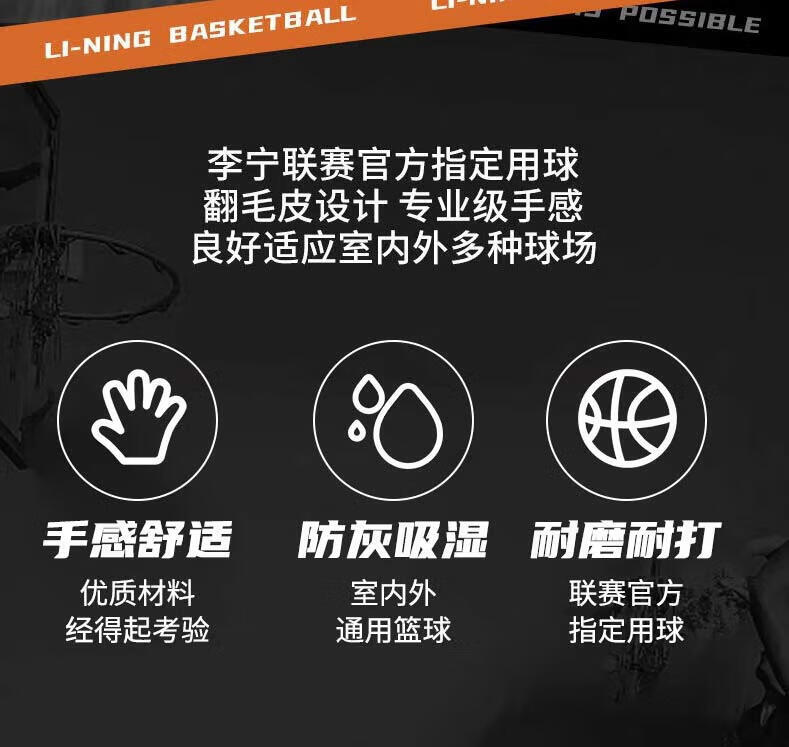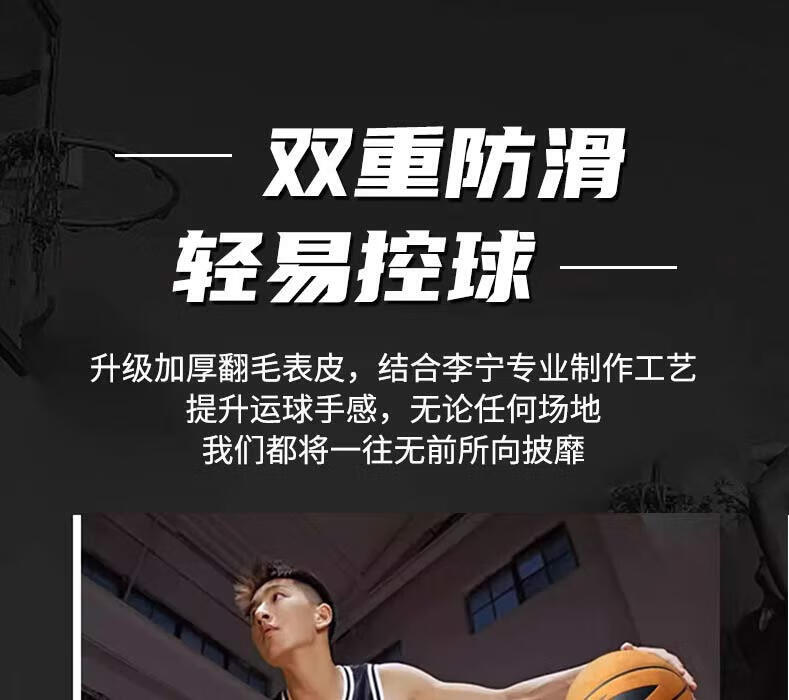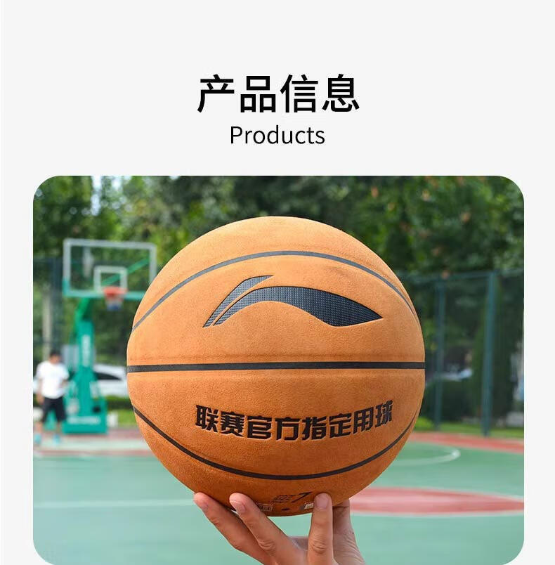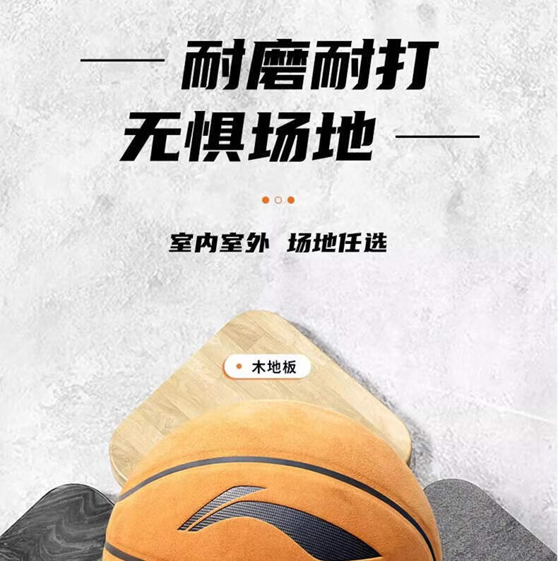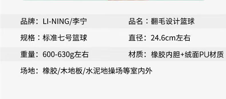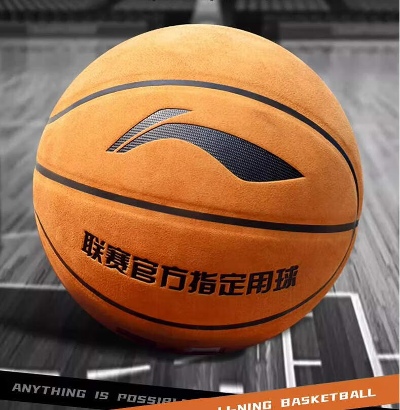 李宁(LI-NING)篮球7号成人青少年室内外训练比赛专用防滑吸湿耐磨翻毛皮蓝球 7号棕色翻毛设计/绒面pu-通用 无规格
