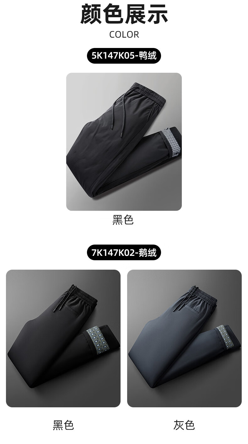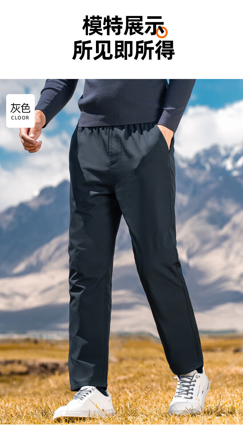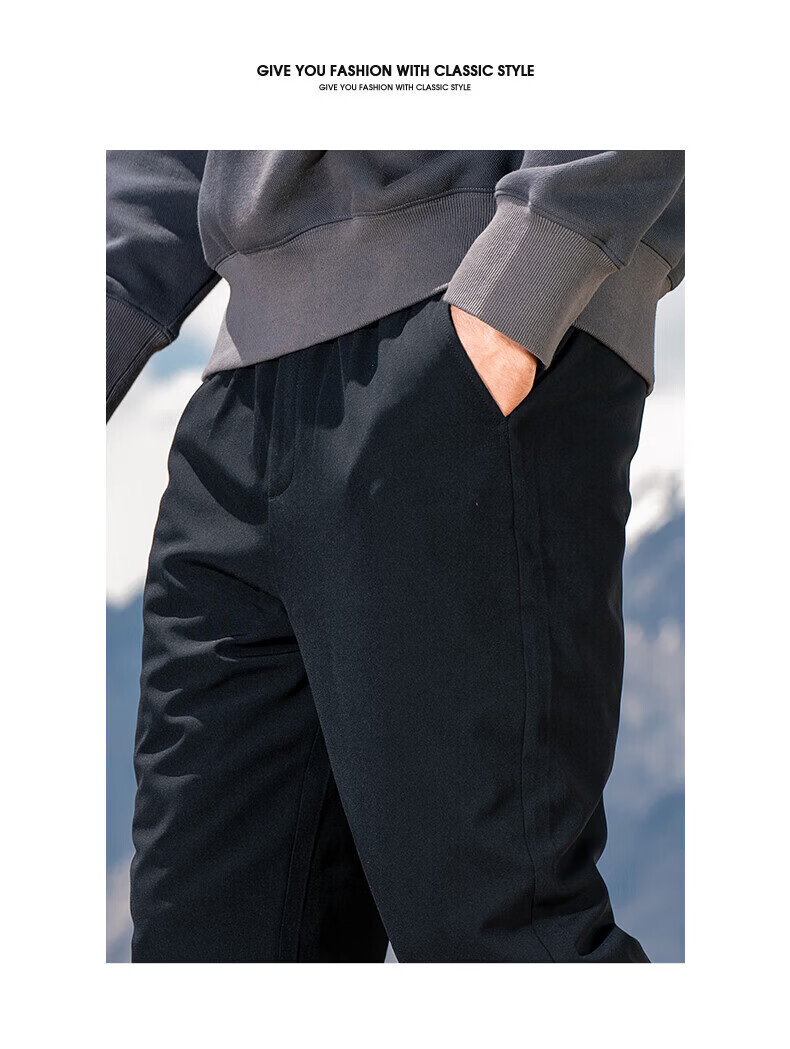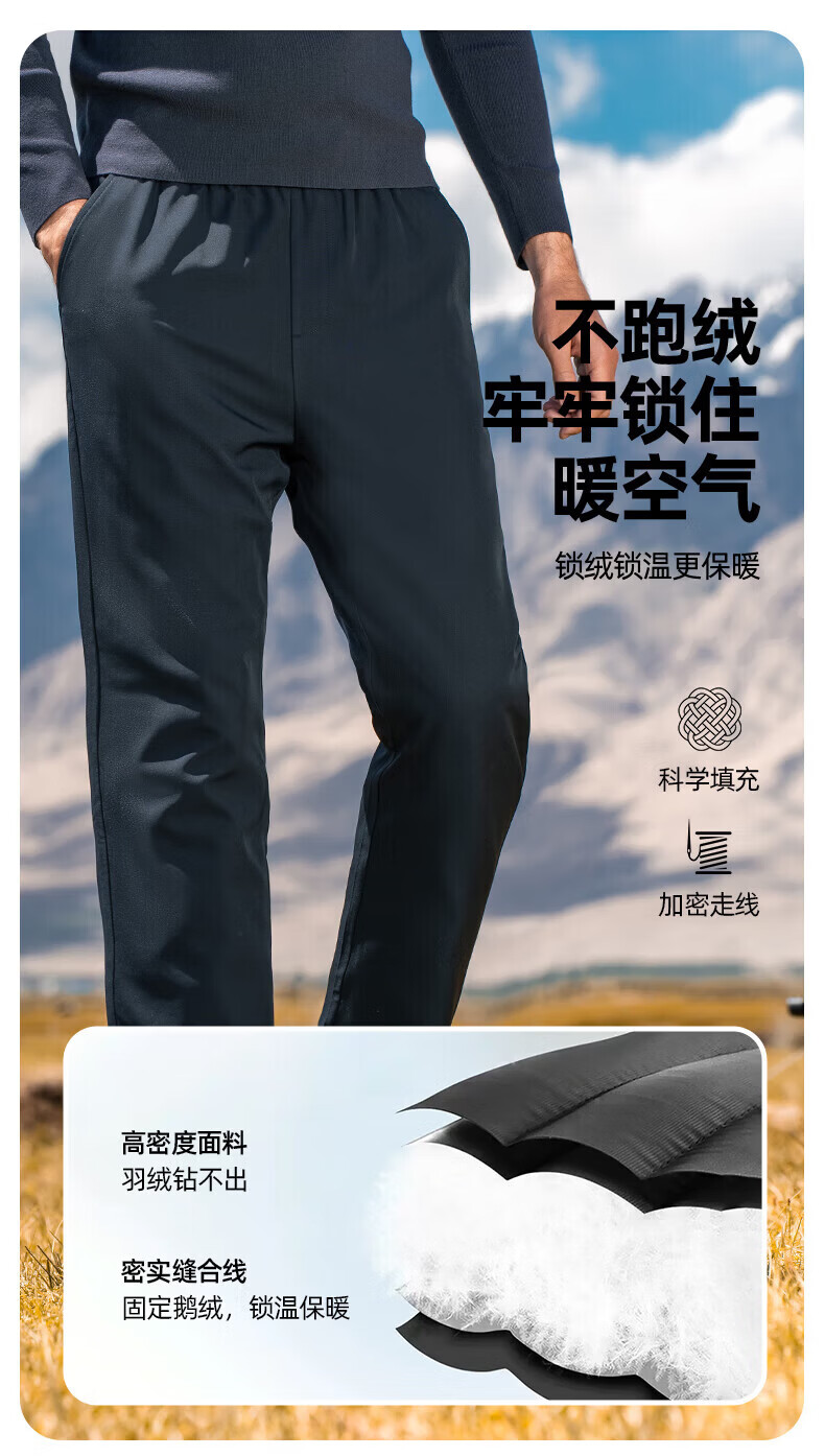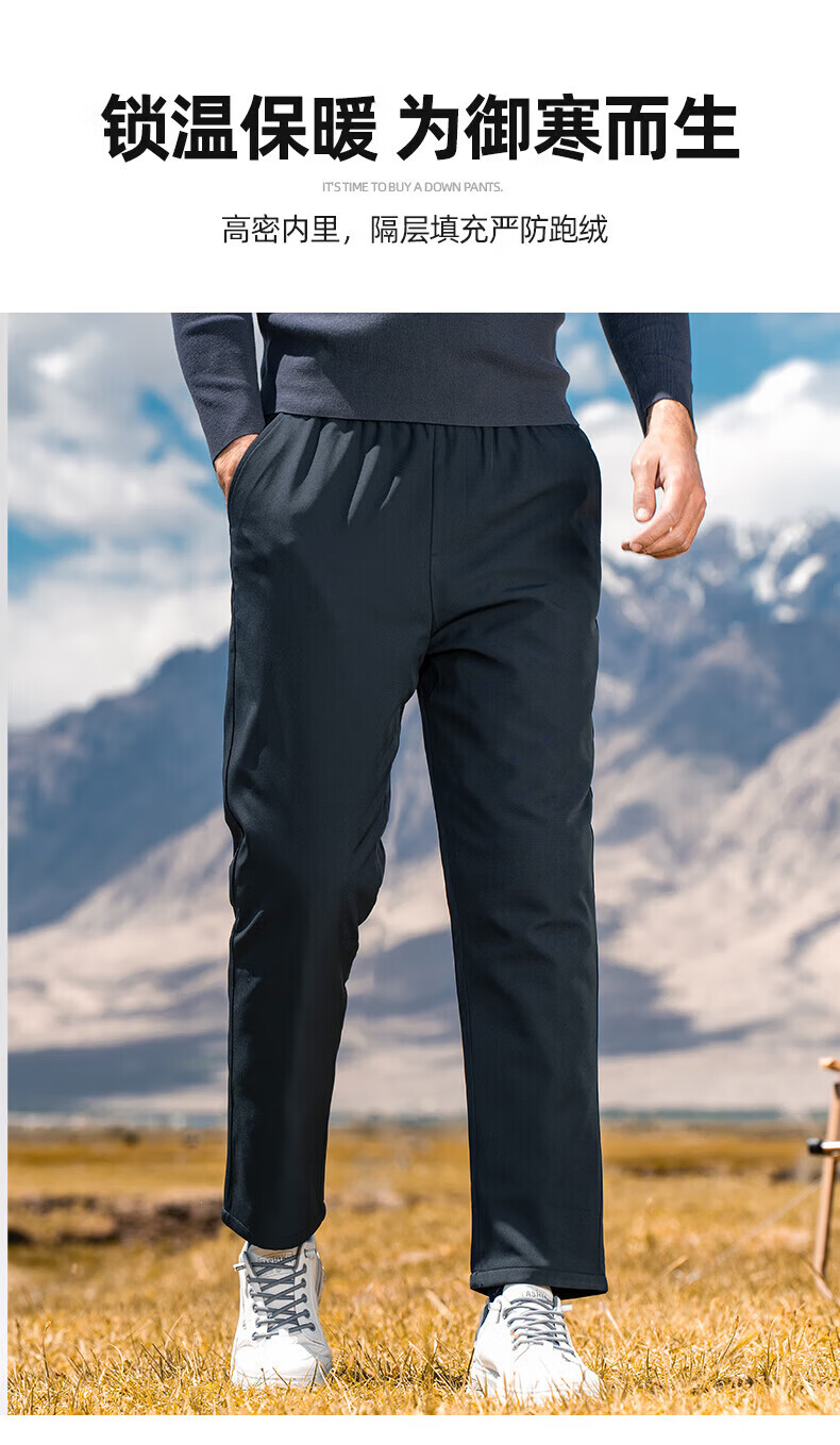 罗蒙【鹅绒】加绒羽绒裤男冬季新款中青年松紧腰宽松直筒加厚保暖裤男 黑色 XL 180【建议135-155斤】