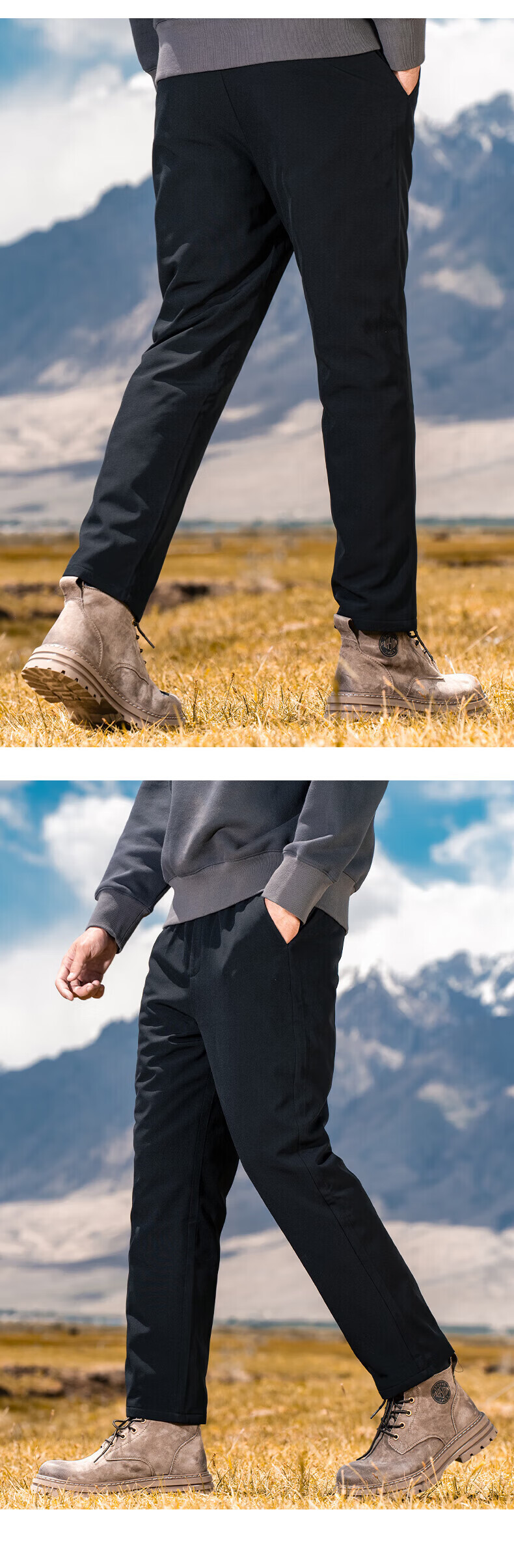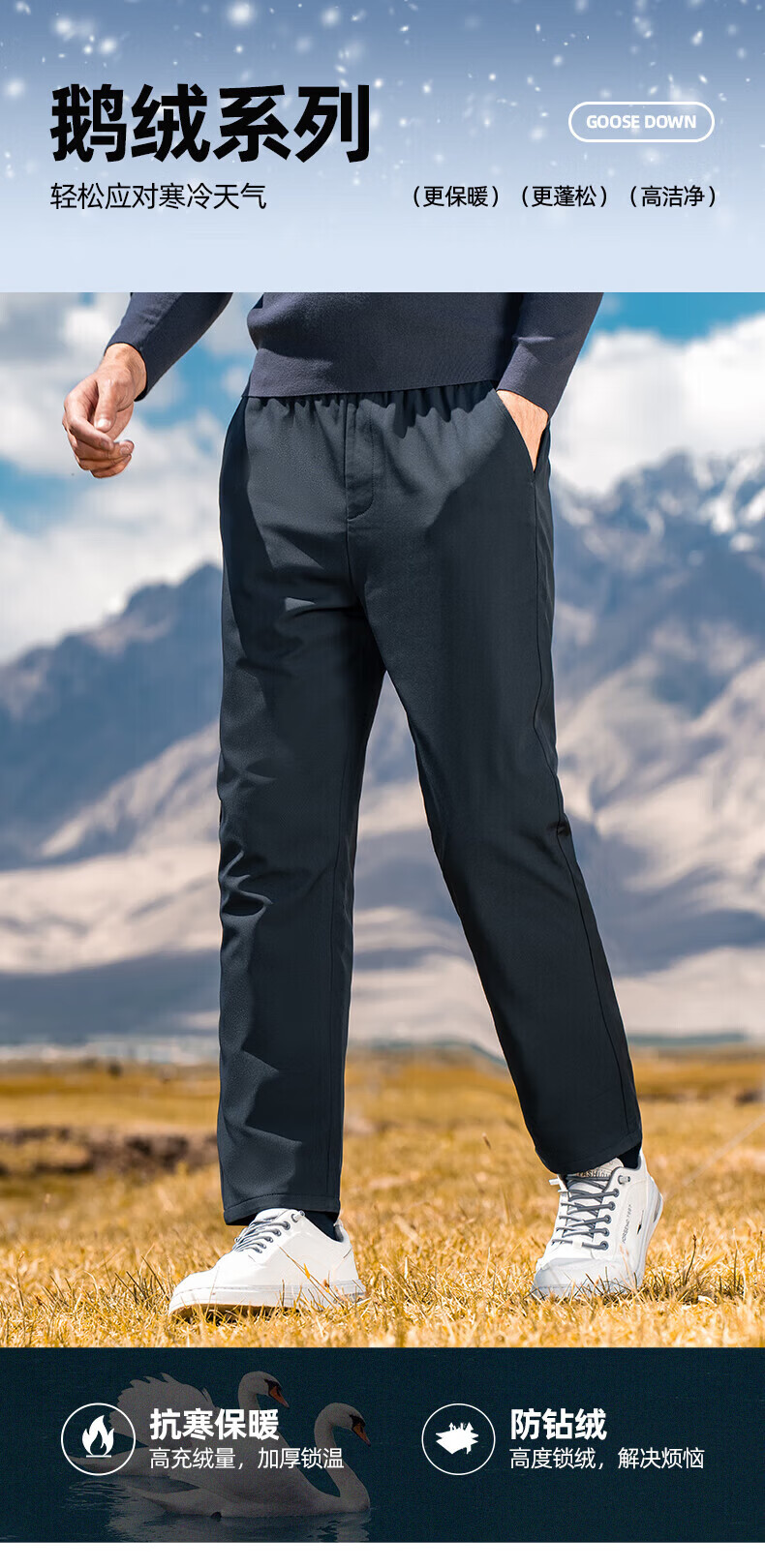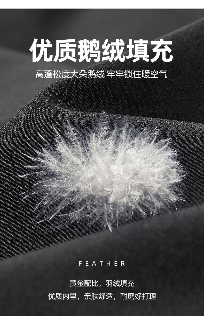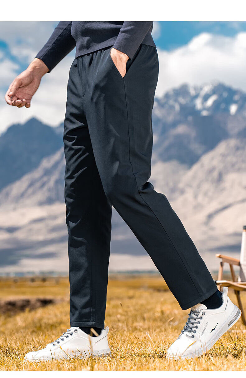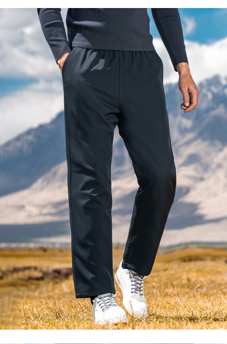 罗蒙【鹅绒】加绒羽绒裤男冬季新款中青年松紧腰宽松直筒加厚保暖裤男 黑色 XL 180【建议135-155斤】