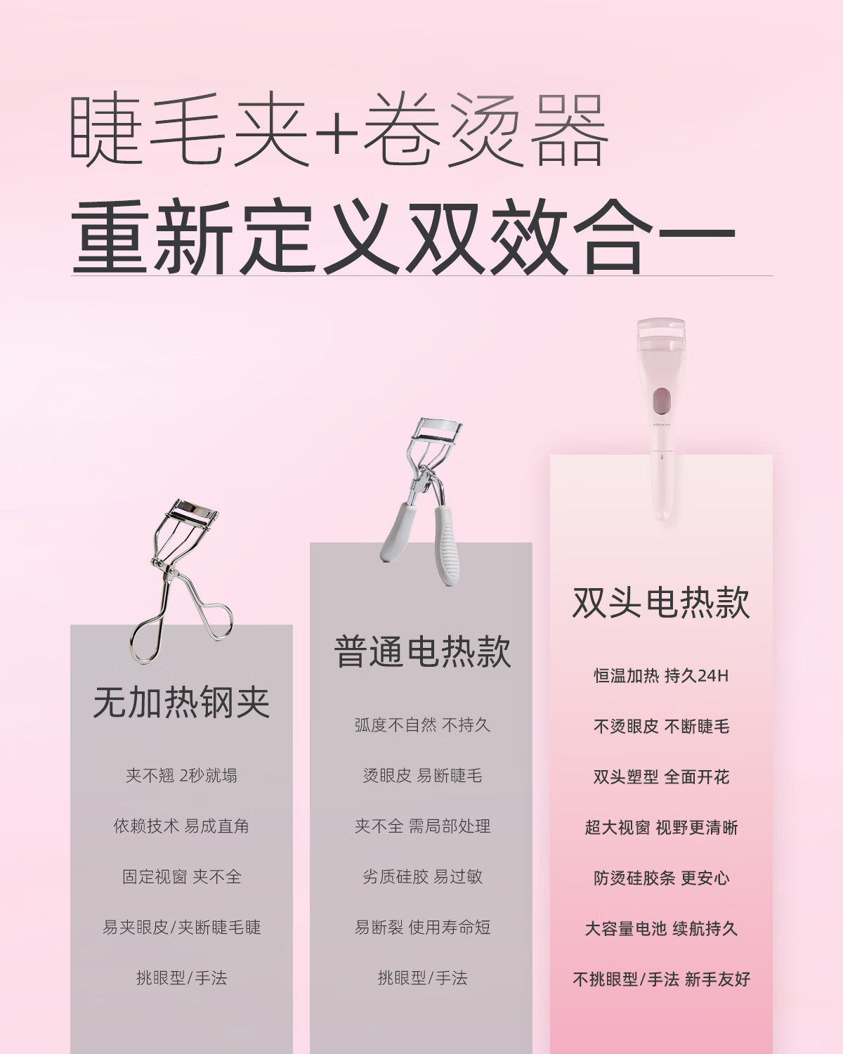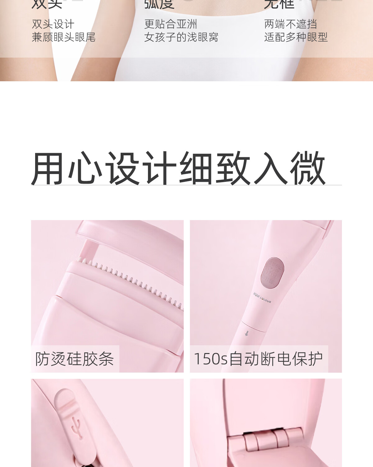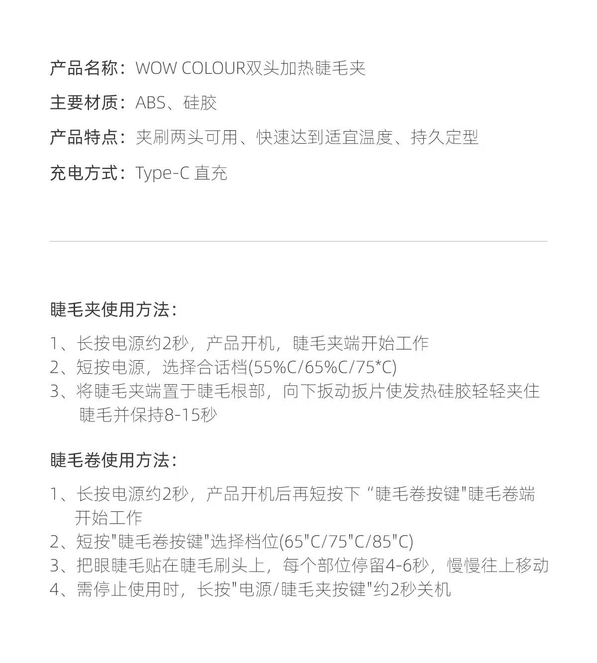 WOWCOLOUR电烫睫毛夹卷翘器 眼睫毛加热烫卷器电动发热 睫毛定型 【妆前妆后】双头加热睫毛夹 1件