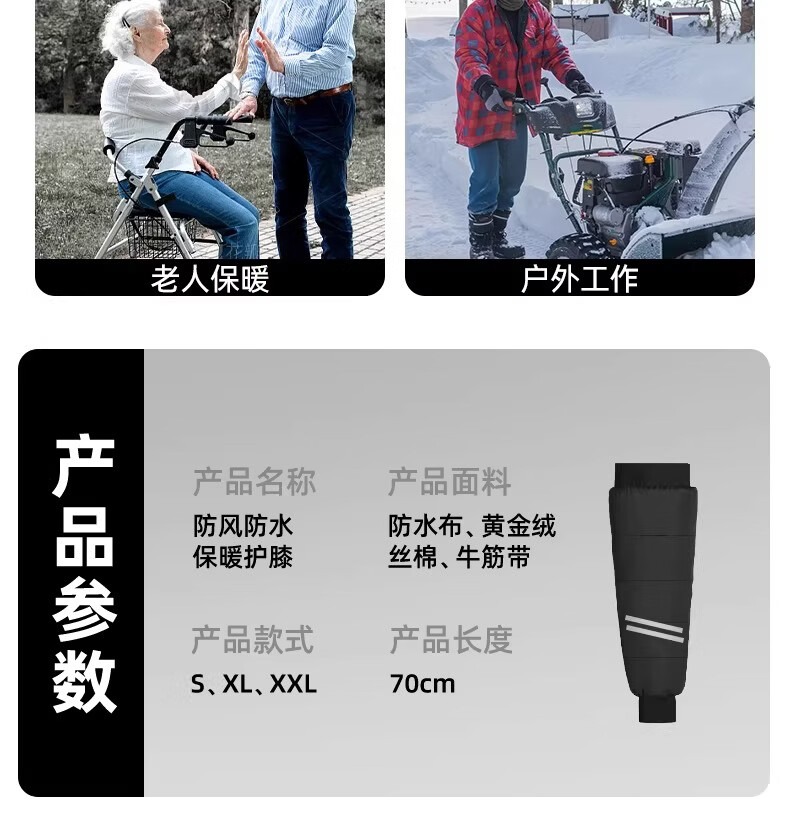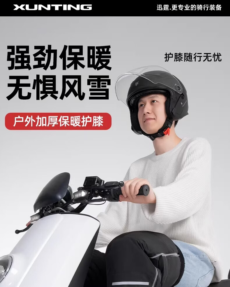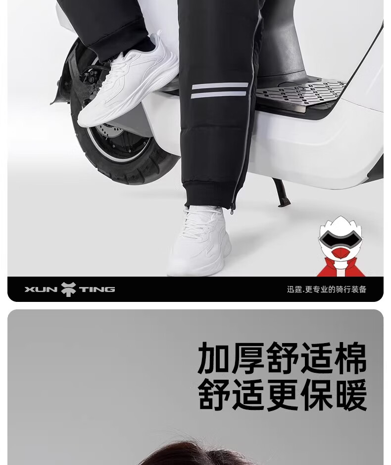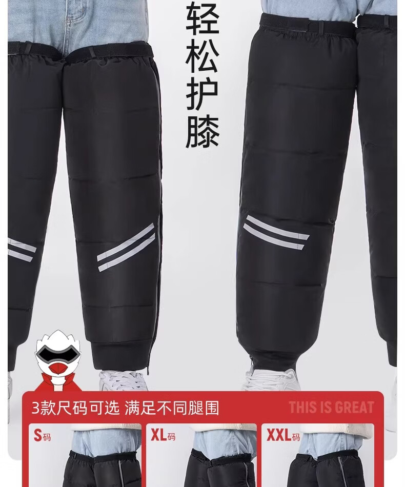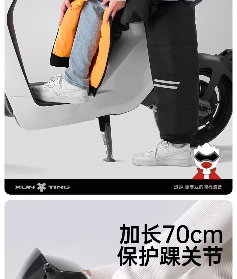 迅霆(XUNTING)电动摩托车保暖护膝女士冬季防风骑行护腿关节神器羽绒防寒骑车男 冬季款【加厚黄金绒】抽绳调节- 70cm