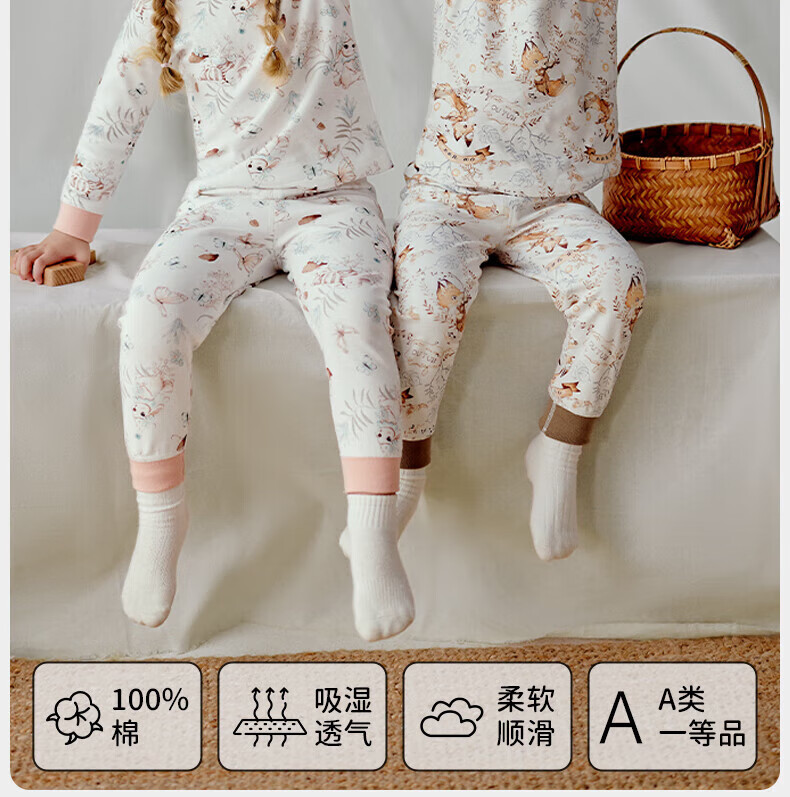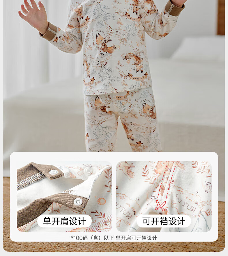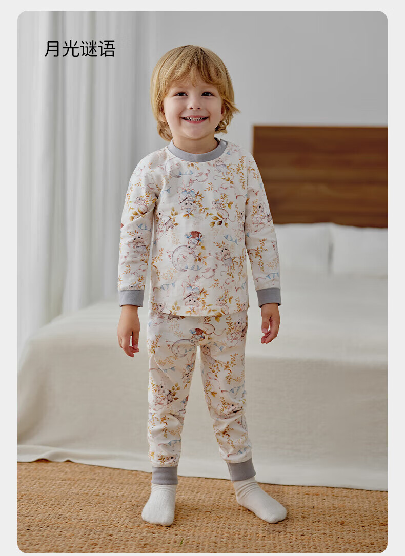 欧孕(OUYUN)儿童秋衣秋裤宝宝秋衣套装男童女童纯棉保暖内衣A类全棉睡衣 月光谜语 【7A抗菌新疆棉】 80 【建议身高:75-85cm】