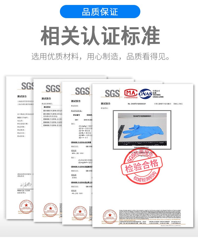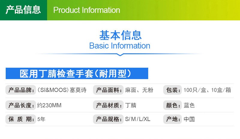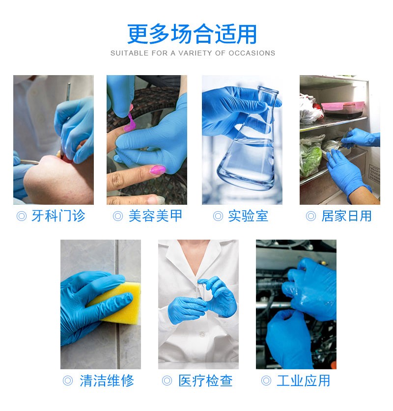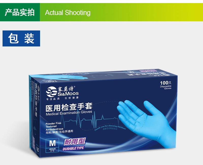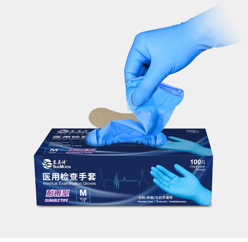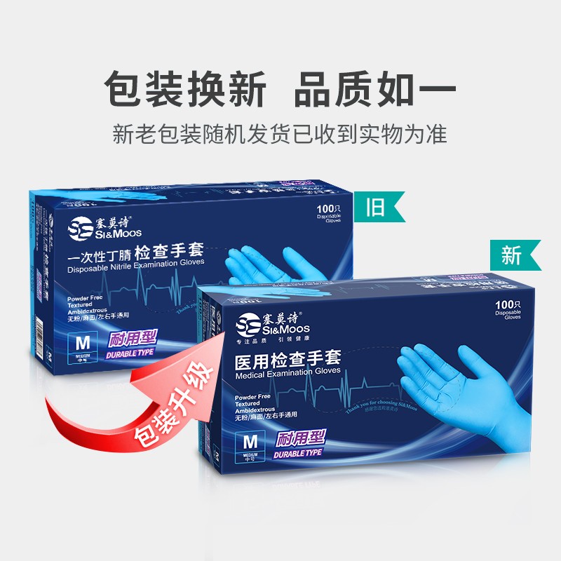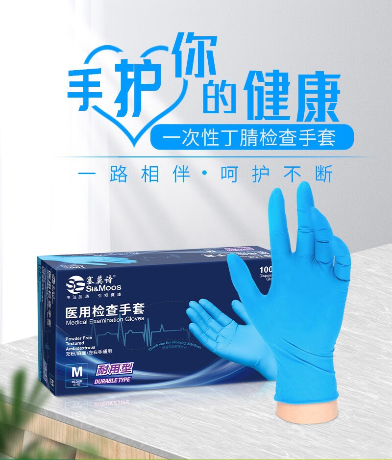 塞莫诗一次性丁腈检查手套医疗检查科研实验工业应用卫生清洁隔离防水 耐用型 蓝色医用丁腈整箱10盒装NM904BL S小号