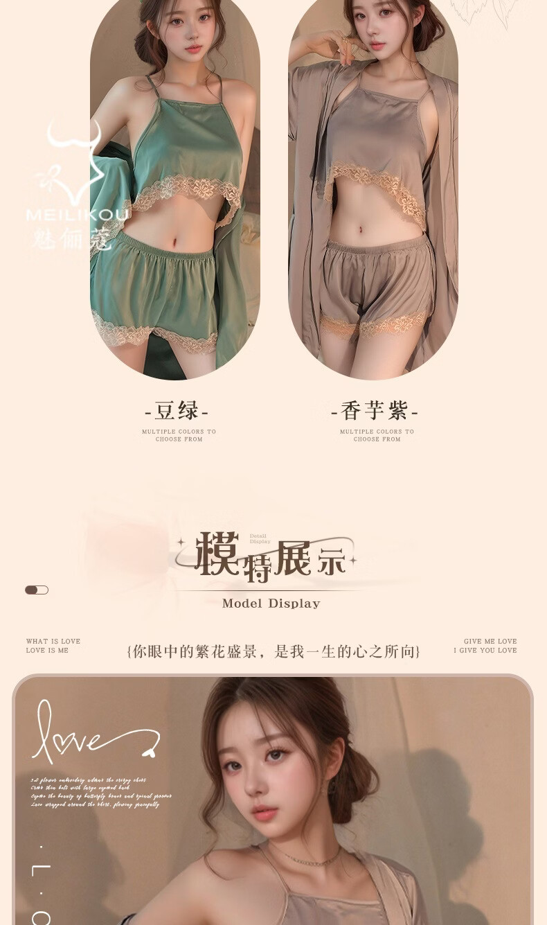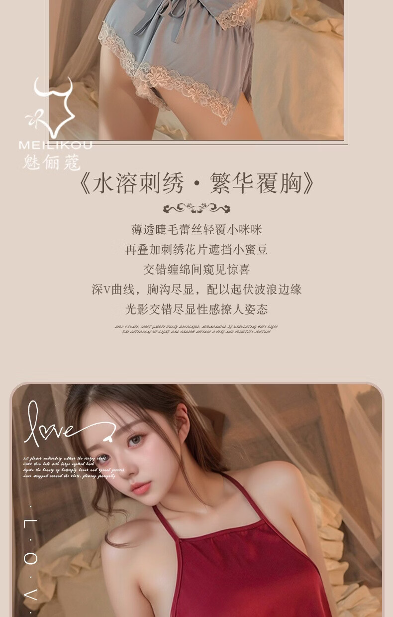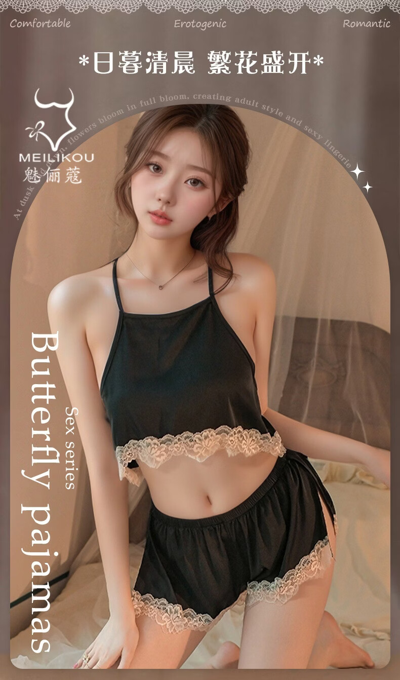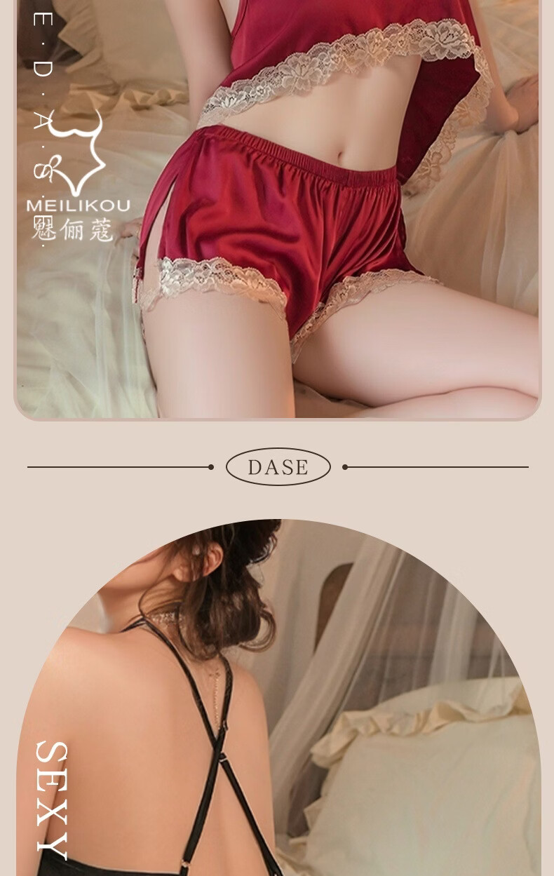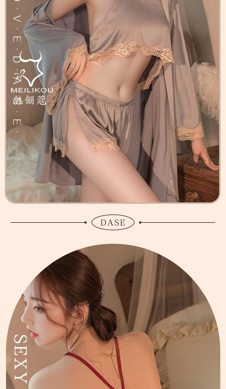 魅俪蔻薄款蕾丝纯欲风性感居家睡衣制服妖娆露背短裤2018 深香芋紫+外套 均码
