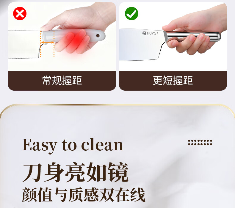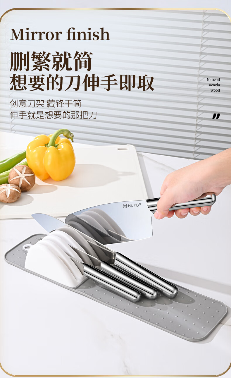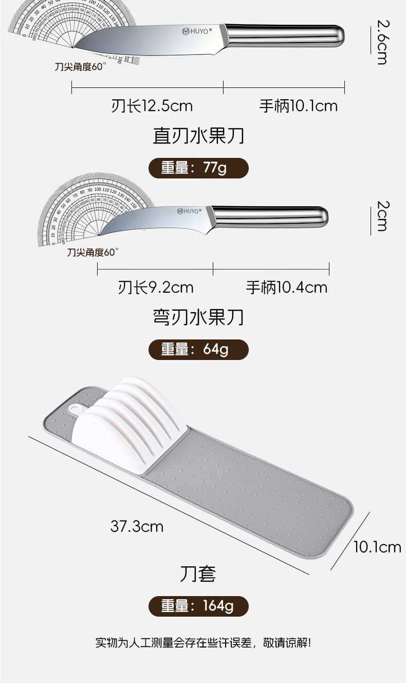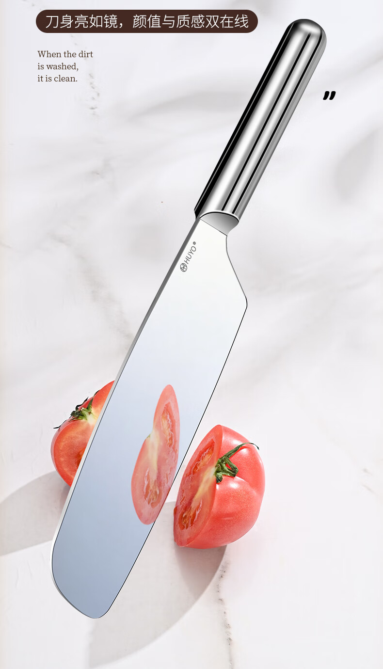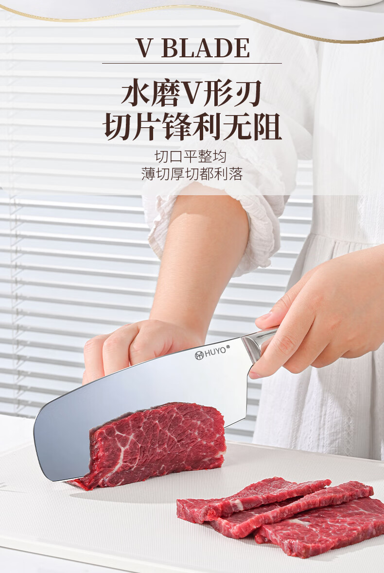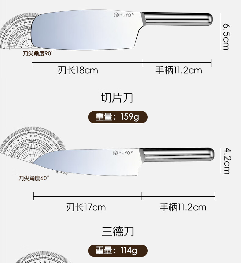 HUYO不锈钢菜刀家用女士专用小型刀具厨房切肉鱼生三德刀厨师切薄片刀 四件套【小菜刀+三徳刀+小弯刀+水果刀】送刀架