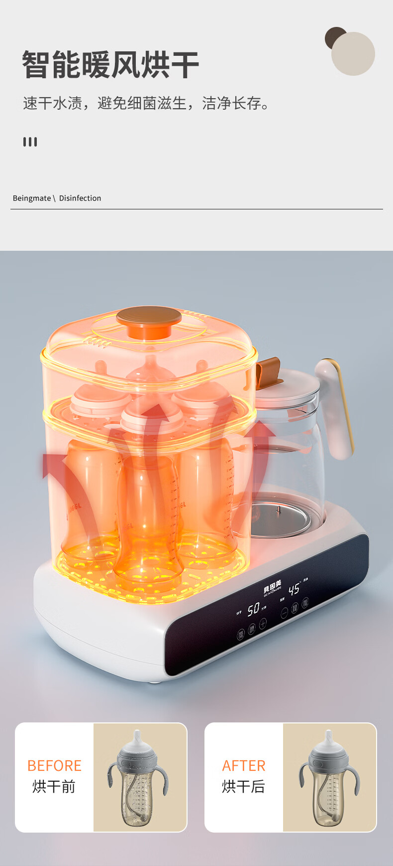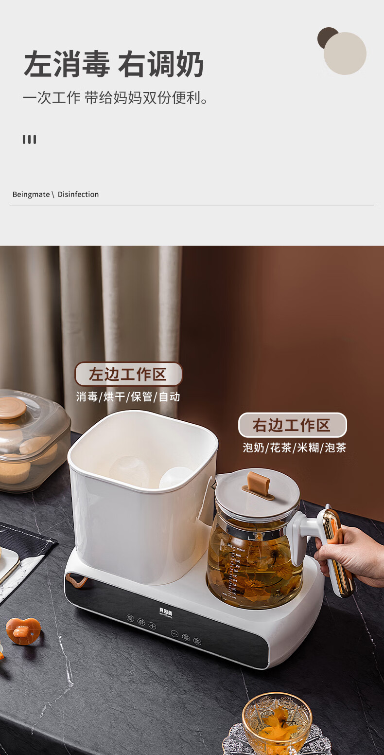 贝因美恒温热水壶奶瓶消毒器带烘干一体机暖奶器养生烧水壶 1.3L