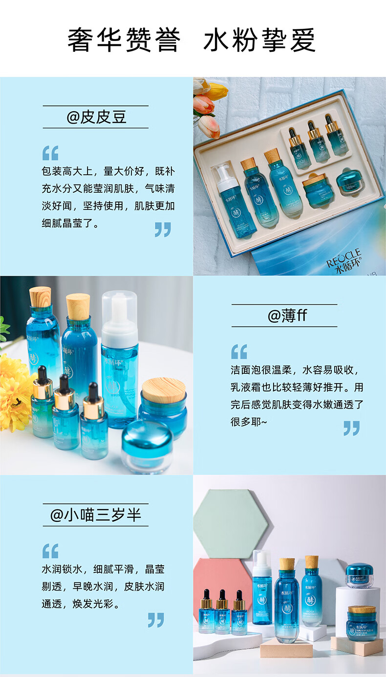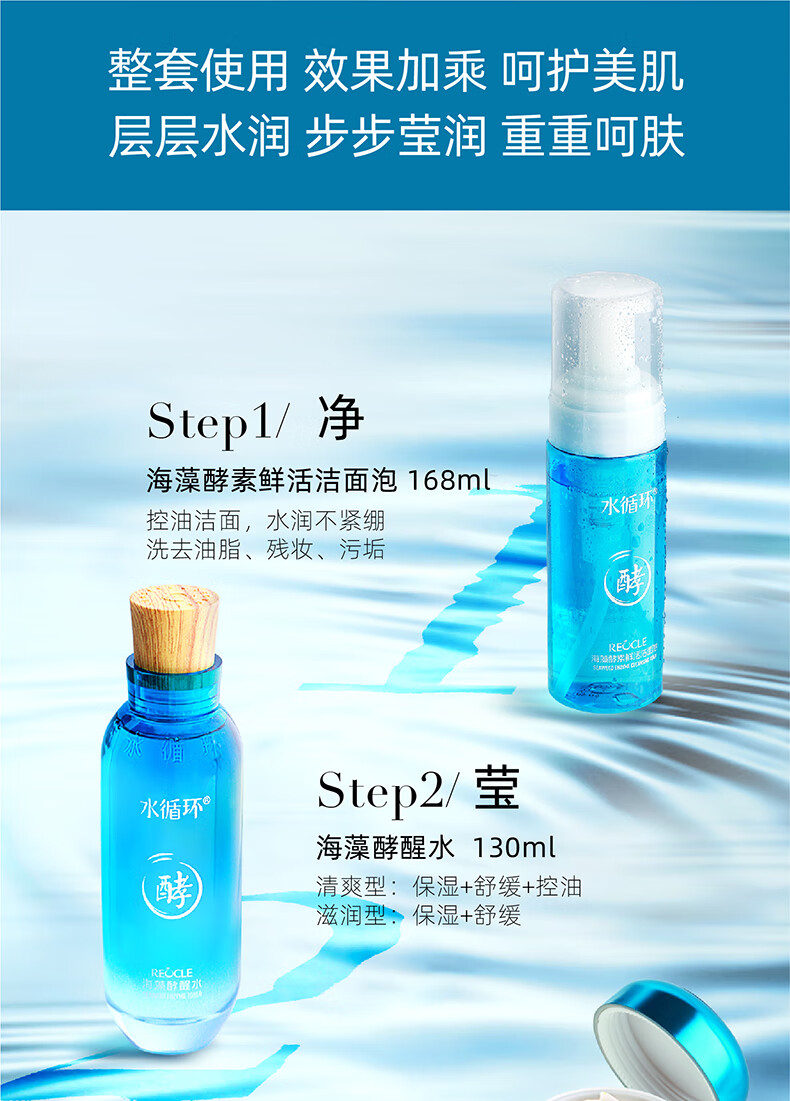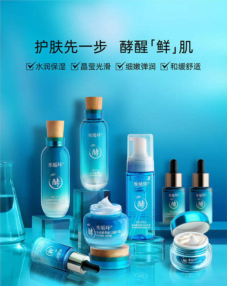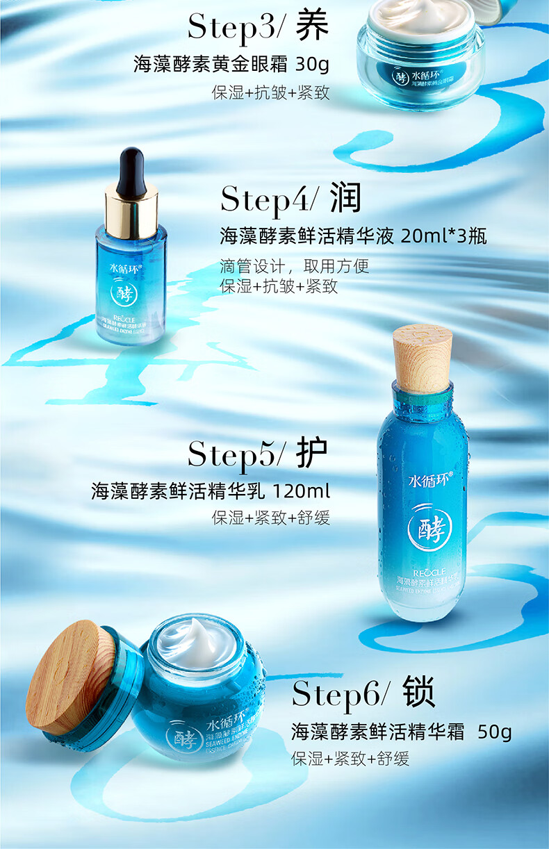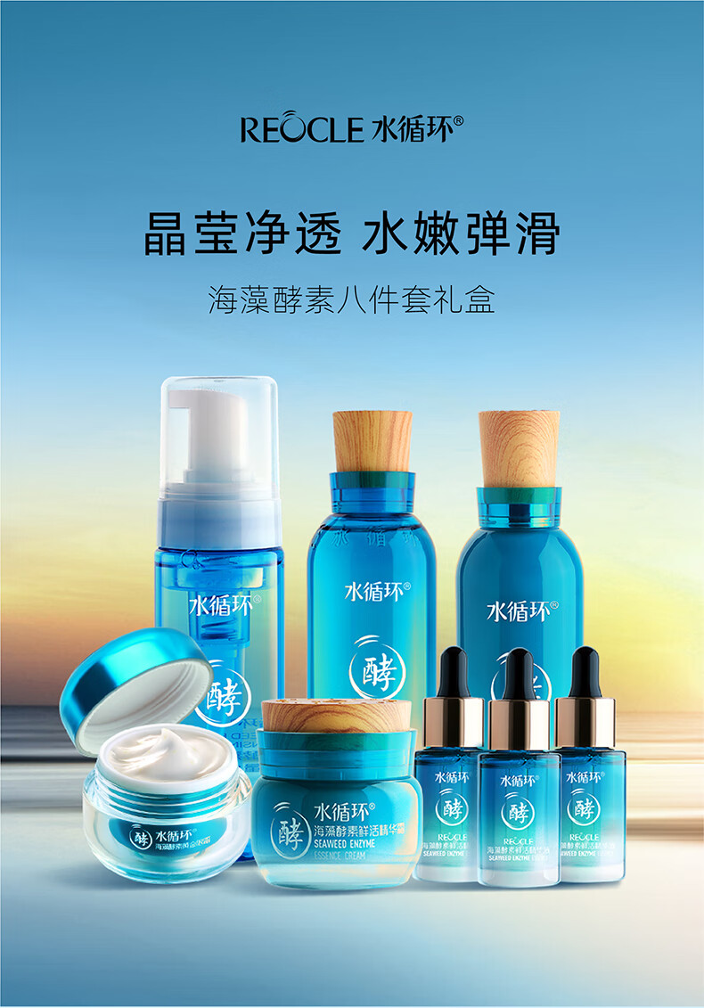 水循环(REOCLE)海藻酵素八件套礼盒护肤套装保湿洁面水乳面霜精华眼霜面部 八件套清爽(洁面水乳霜眼霜精华)