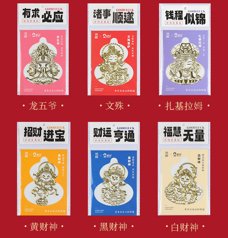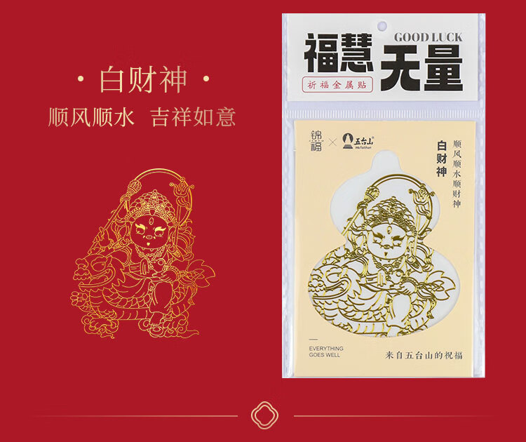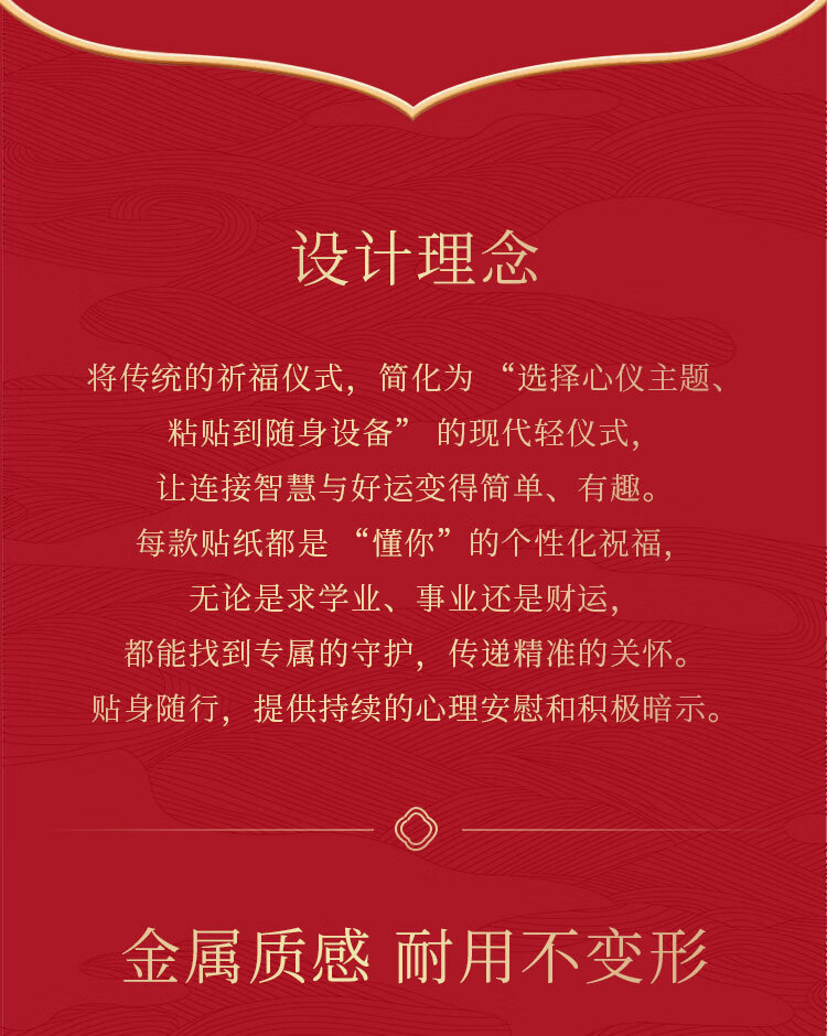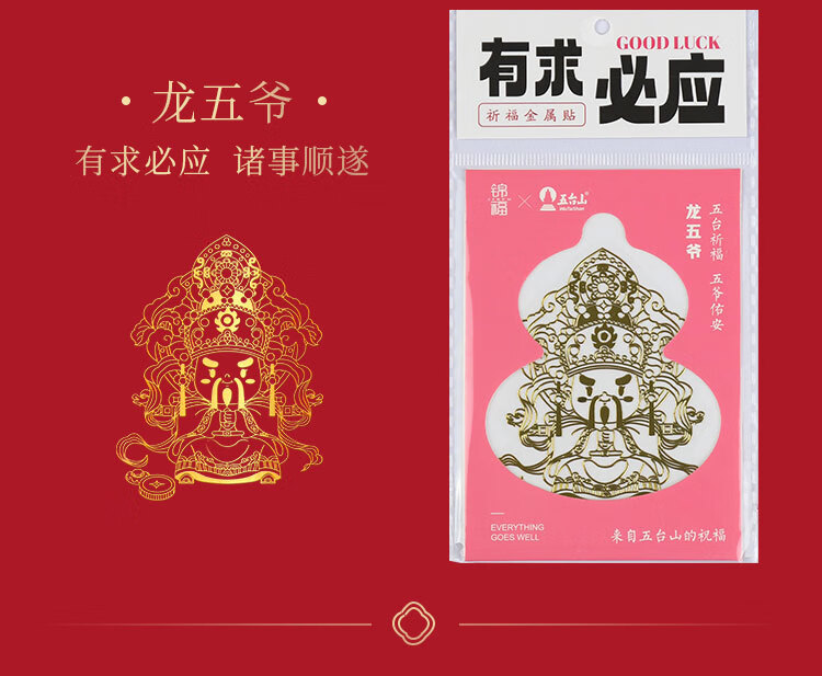 锦福五台山联名手机金属贴纸大手机后壳贴纸平安符装饰 祈福金属贴-龙五爷