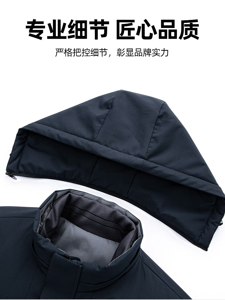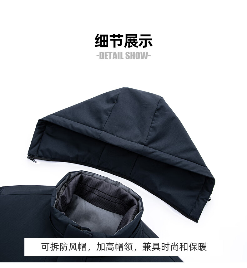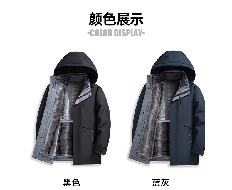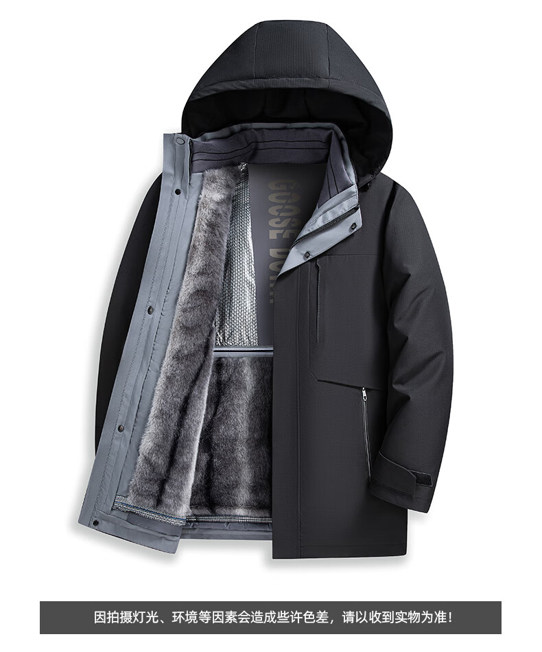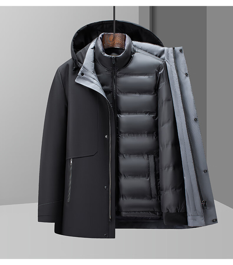 罗蒙(ROMON)一衣多穿可拆卸内胆连帽鹅绒羽绒服男士中长款保暖加厚防寒服外套 蓝灰色 XL 180(适合135-155斤)