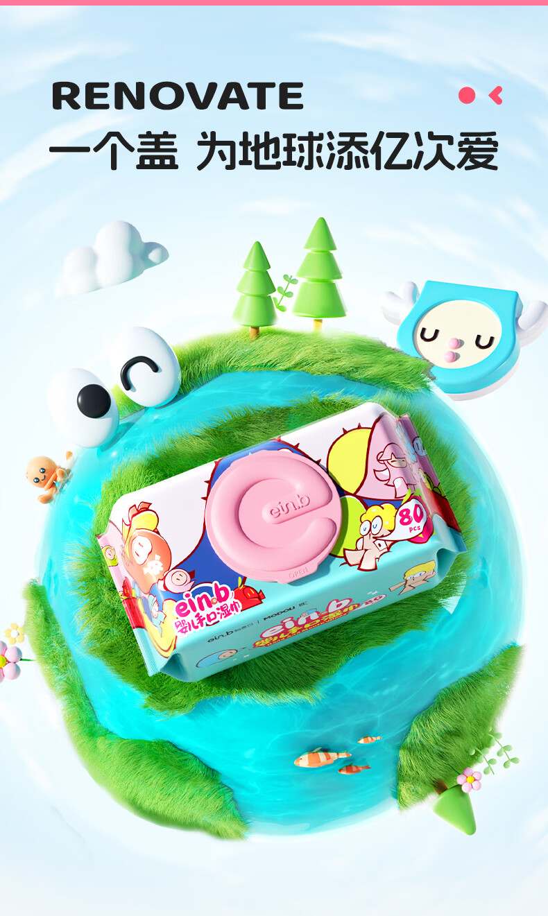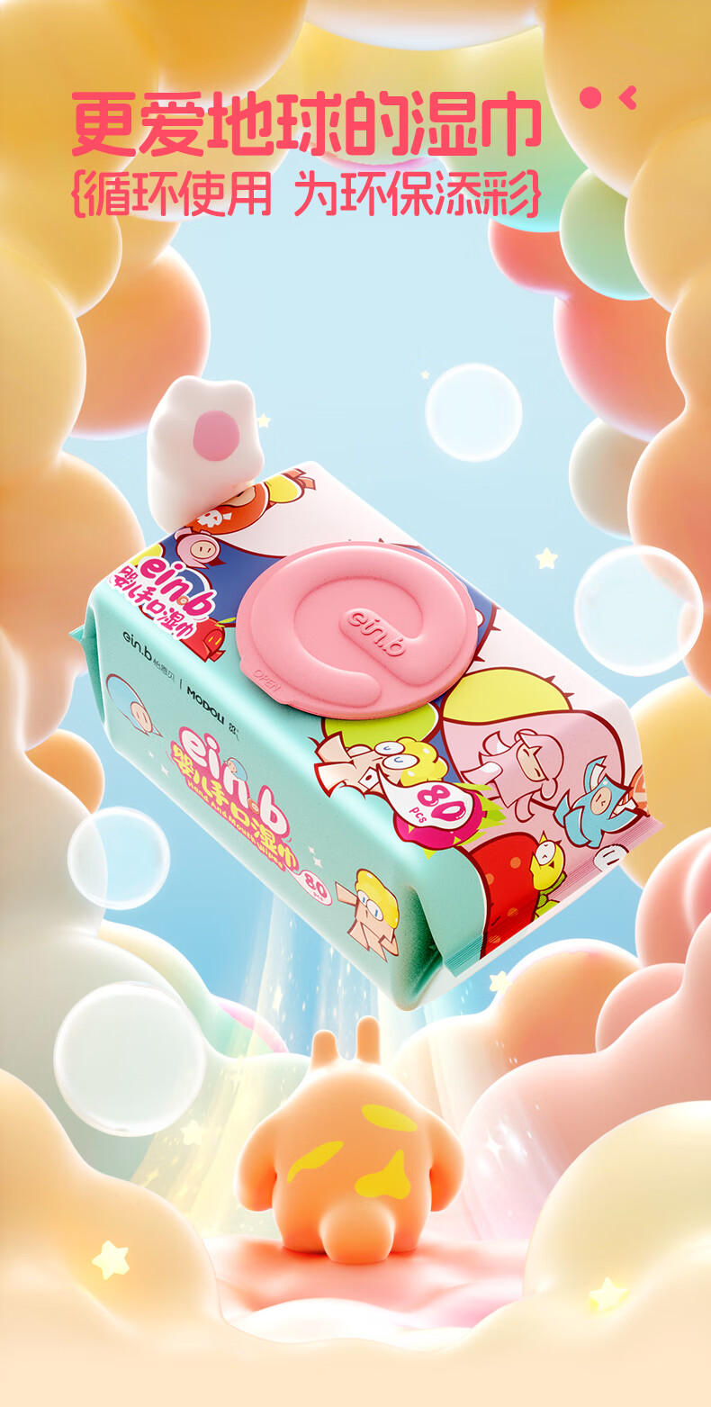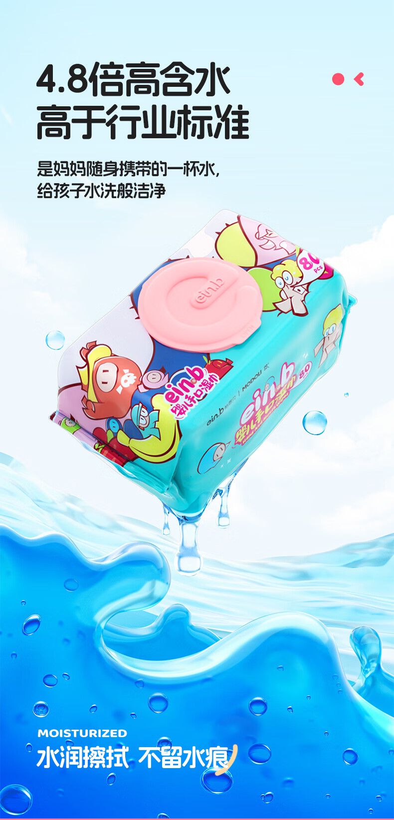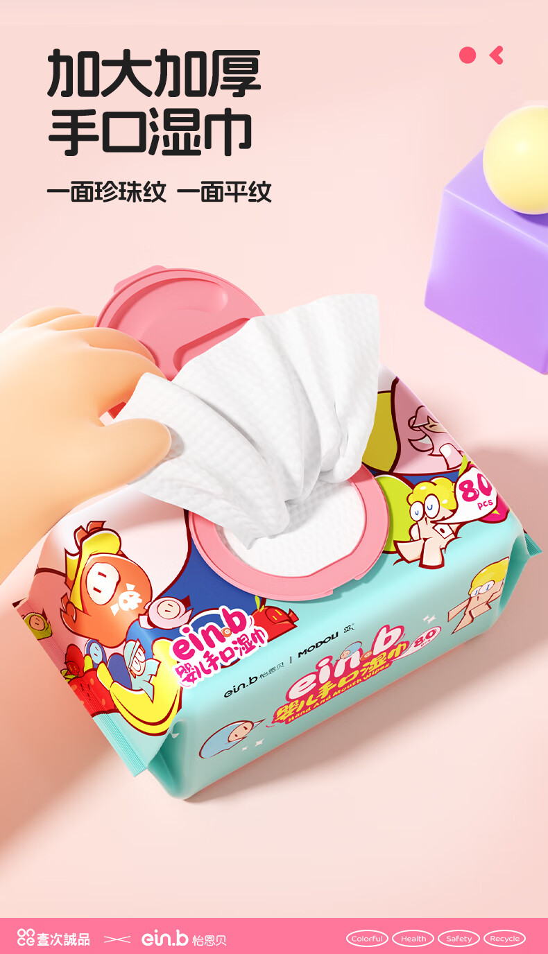 怡恩贝婴儿湿巾 80抽*5包珍珠纹升级加厚湿纸巾男女宝宝手口湿巾大包装