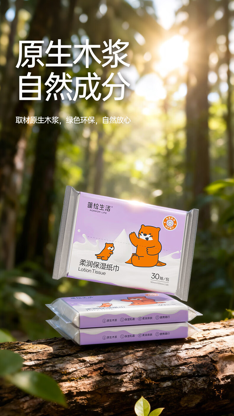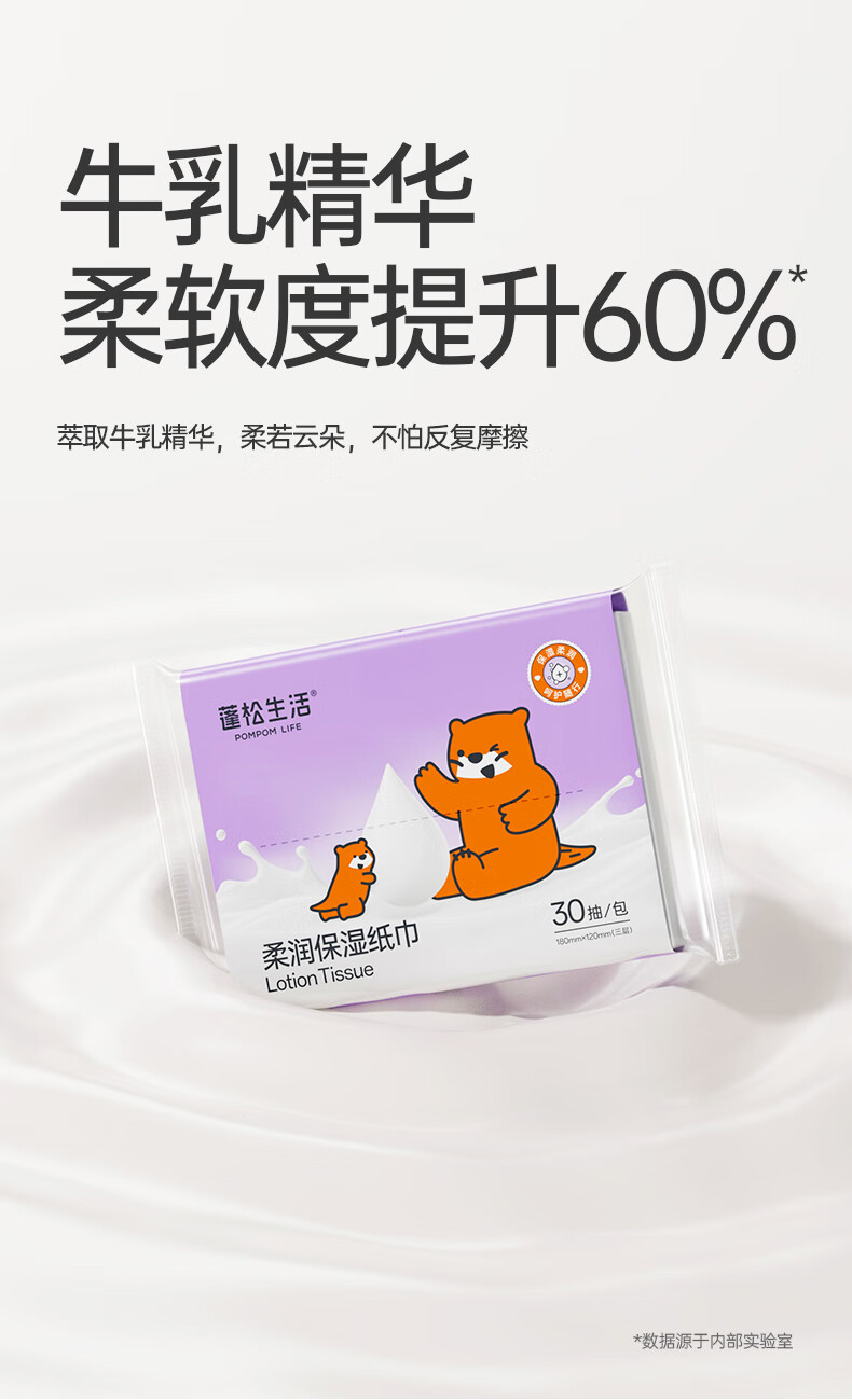 蓬松生活宝宝乳霜纸 婴幼儿保湿云柔巾 学生便携柔纸巾 提装抽纸鼻敏感肌 3层 30抽*30包
