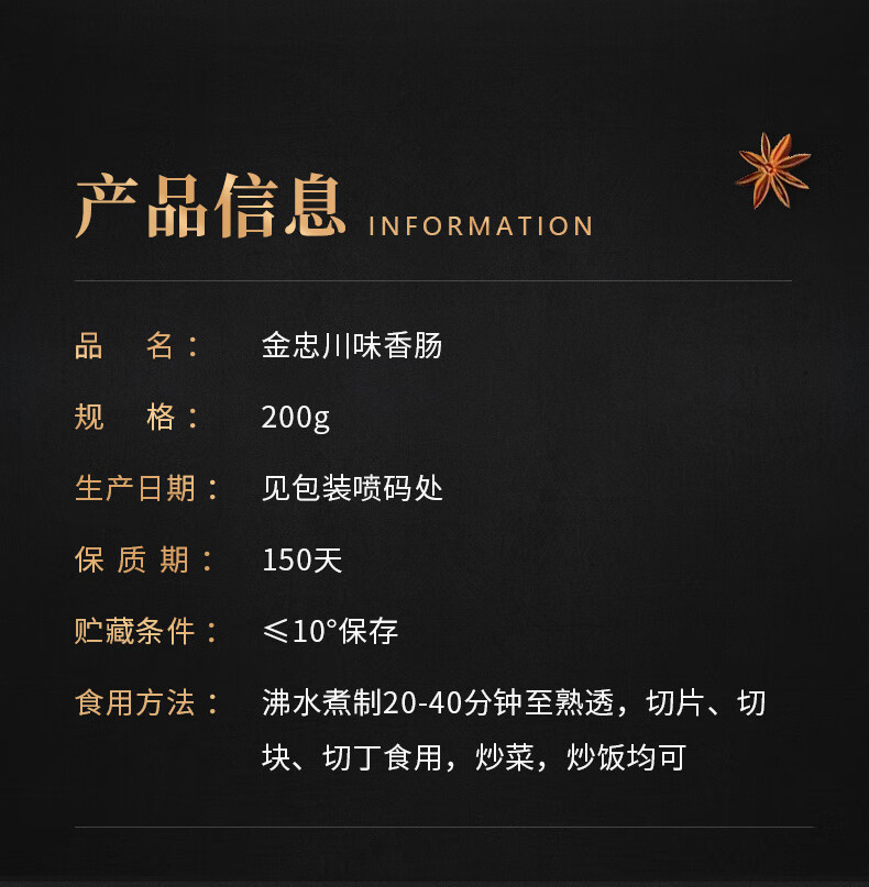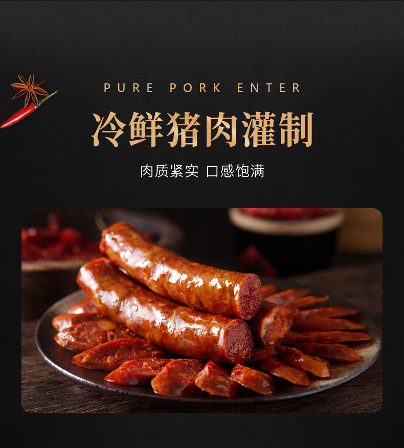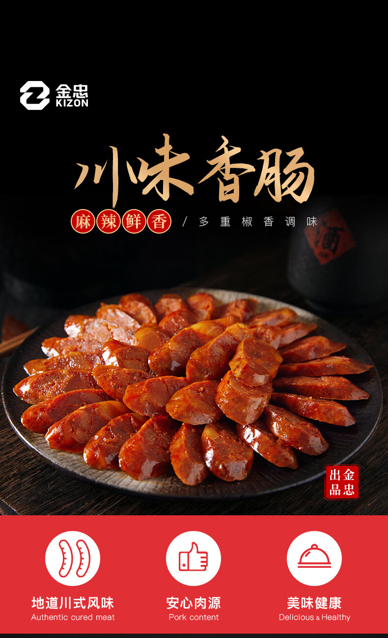 金忠食品(JINZHONG FOOD)川味腊肠四川麻辣香肠香辣腊肉肠烟熏腊味广式香肠腊肉甜酒风酱肉 酱五花230g