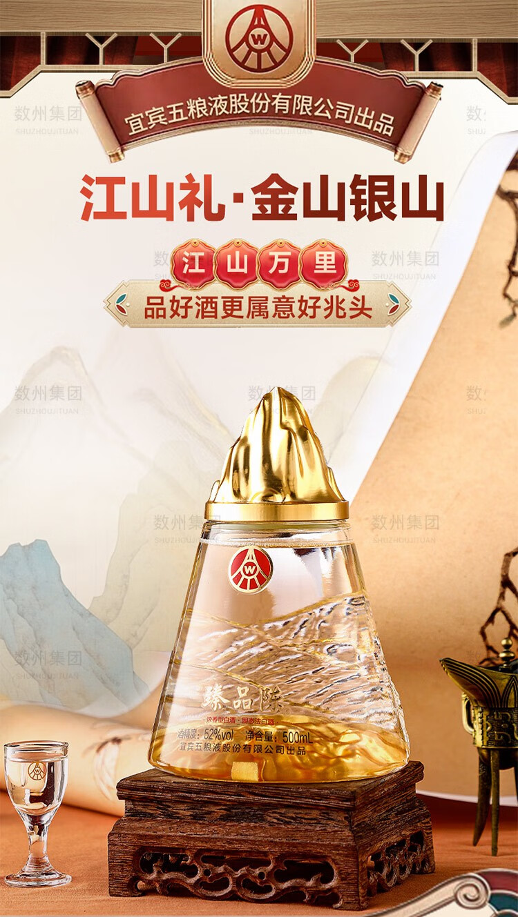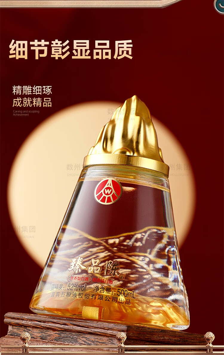 五粮浓香五粮液臻品陈系列52度浓香型白酒 整箱白酒礼盒 商务送礼纯粮酒水 52度 500mL 2瓶 宜宾出品双支礼盒