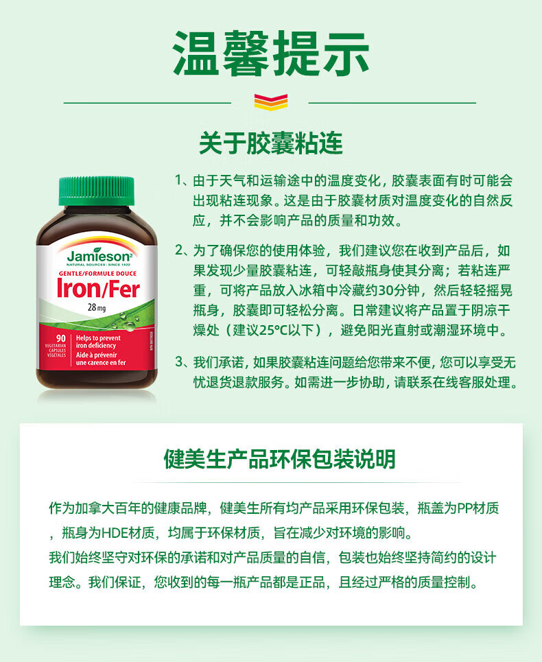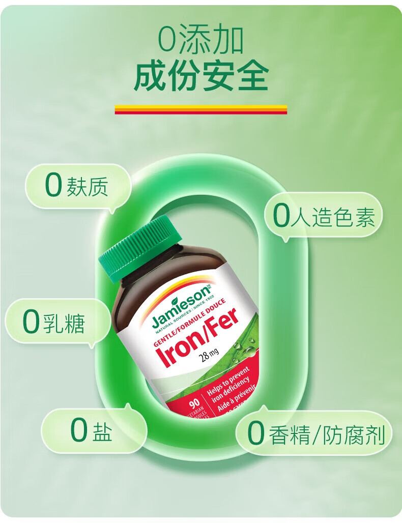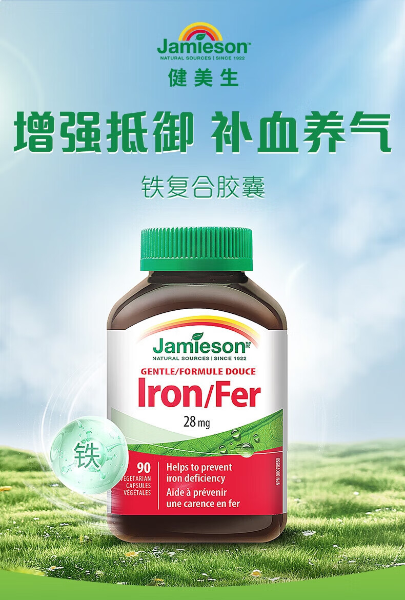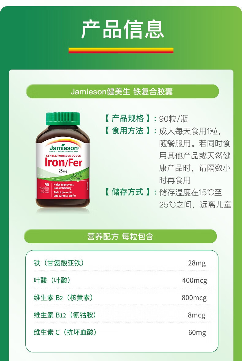 健美生(Jamieson)铁复合胶囊甘氨酸亚铁维B维C成人孕妇补铁红润气色官方直营 1瓶【 1瓶【共90颗】铁胶囊-尝鲜 90粒*1瓶