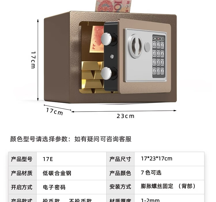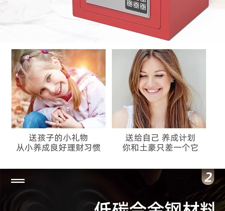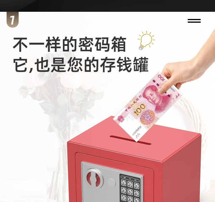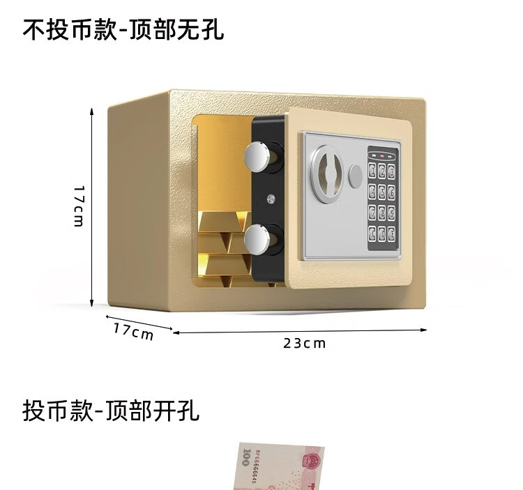 袖悠存钱罐成人储钱罐密码箱保险柜家用大容量可存可取儿童男女孩礼物 【土豪金-投币+钥匙】小号存50W