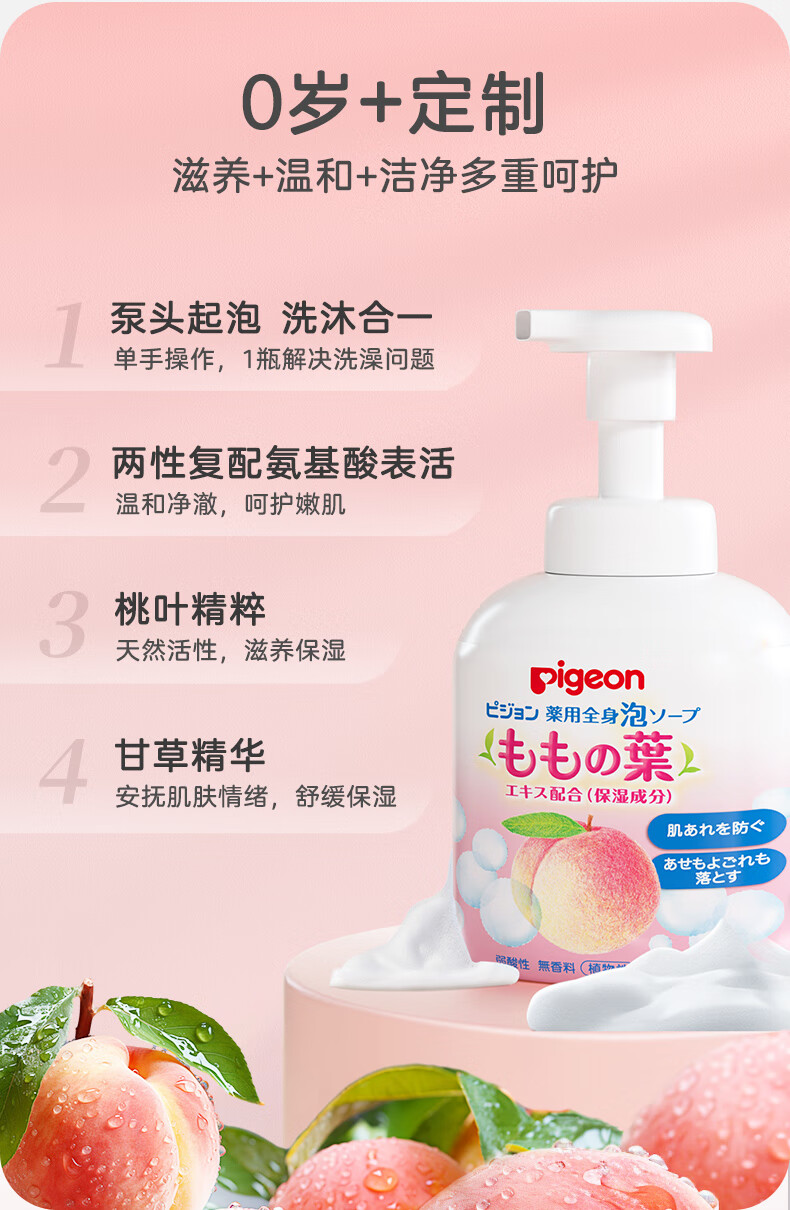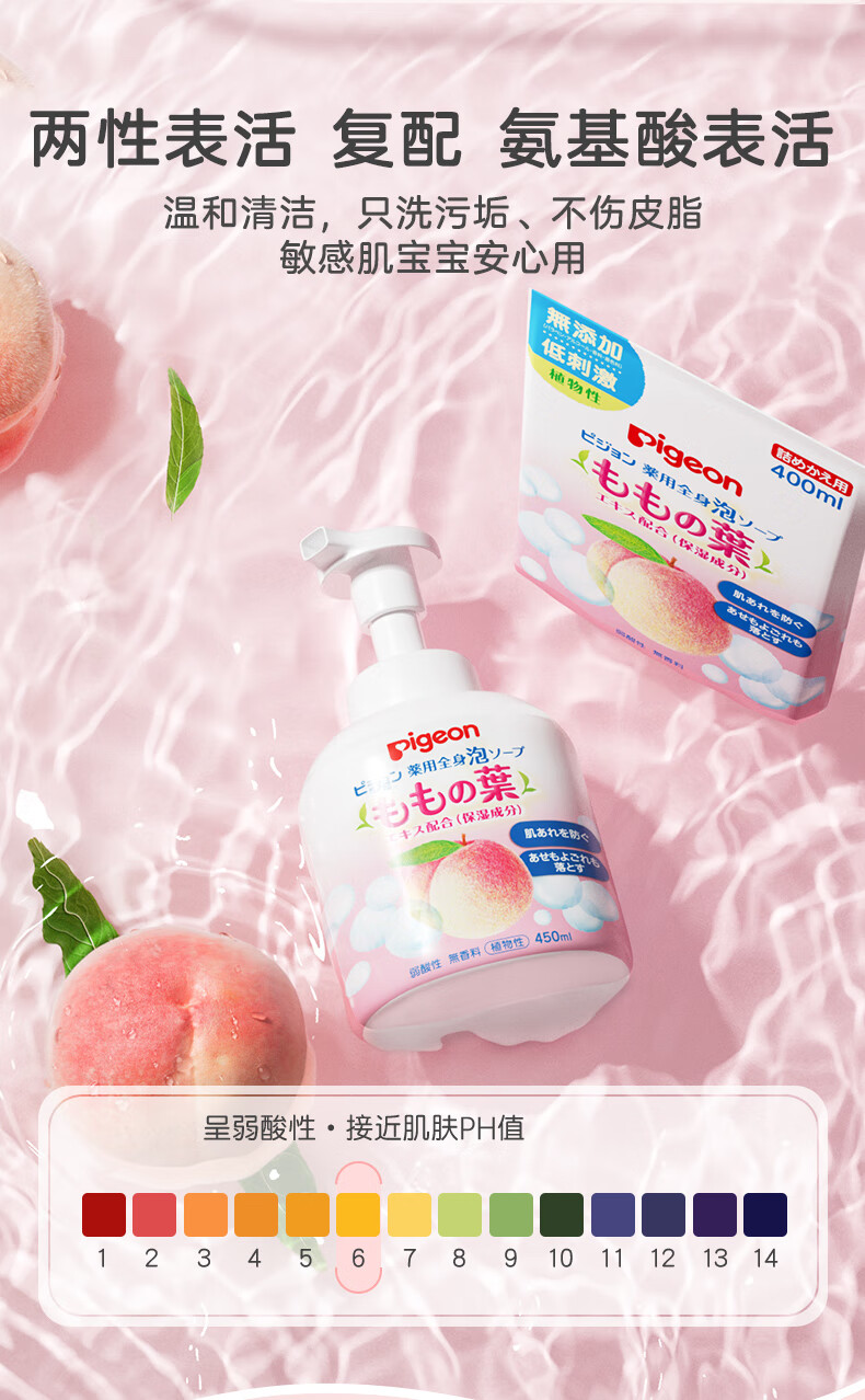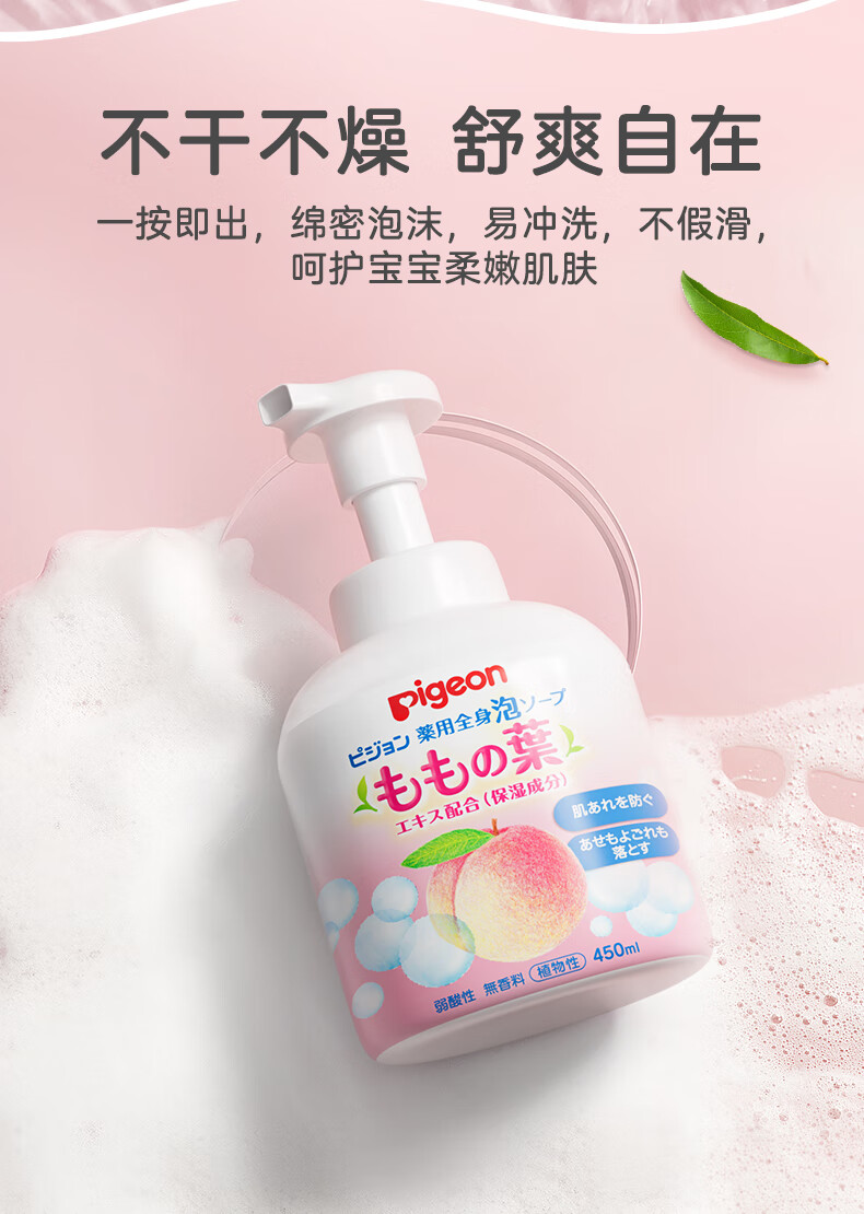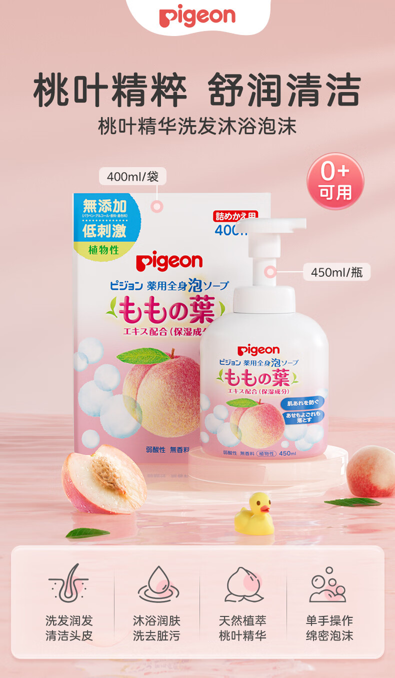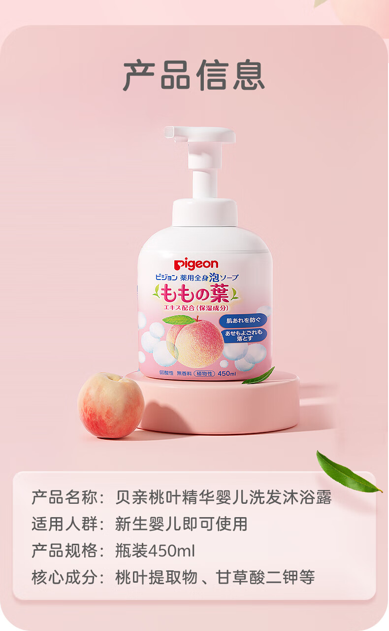 贝亲(Pigeon)婴儿儿童洗发水沐浴露 宝宝洗发沐浴二合一 桃叶精华温和保湿450g