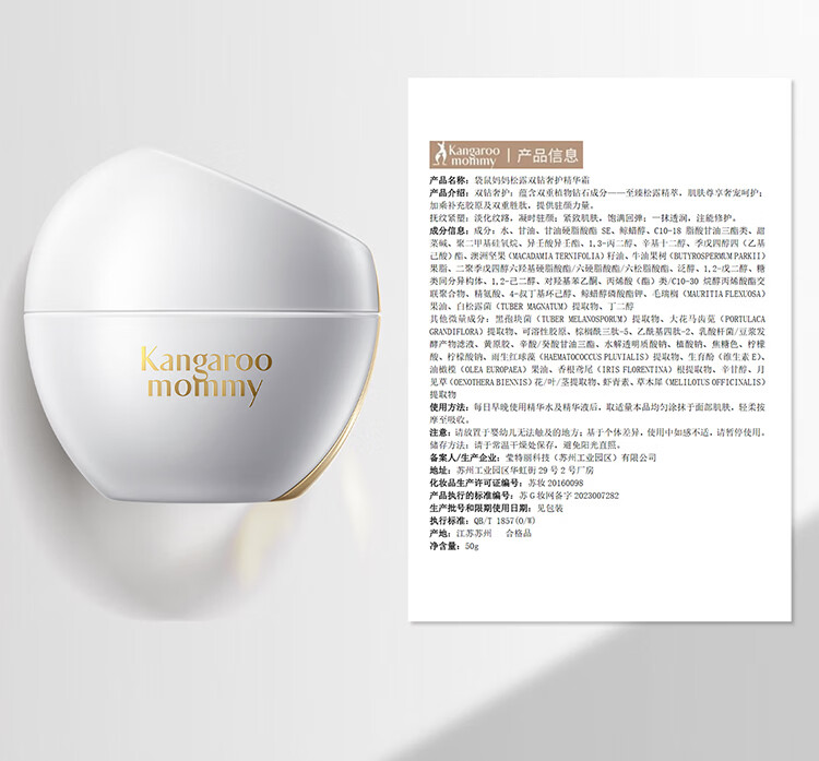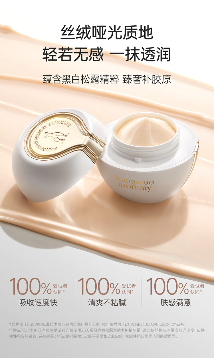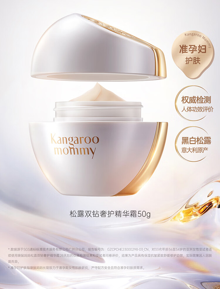 袋鼠妈妈黑白松露双抗精华霜准孕妇护肤品抗皱紧致淡斑抗衰老专用护肤面霜