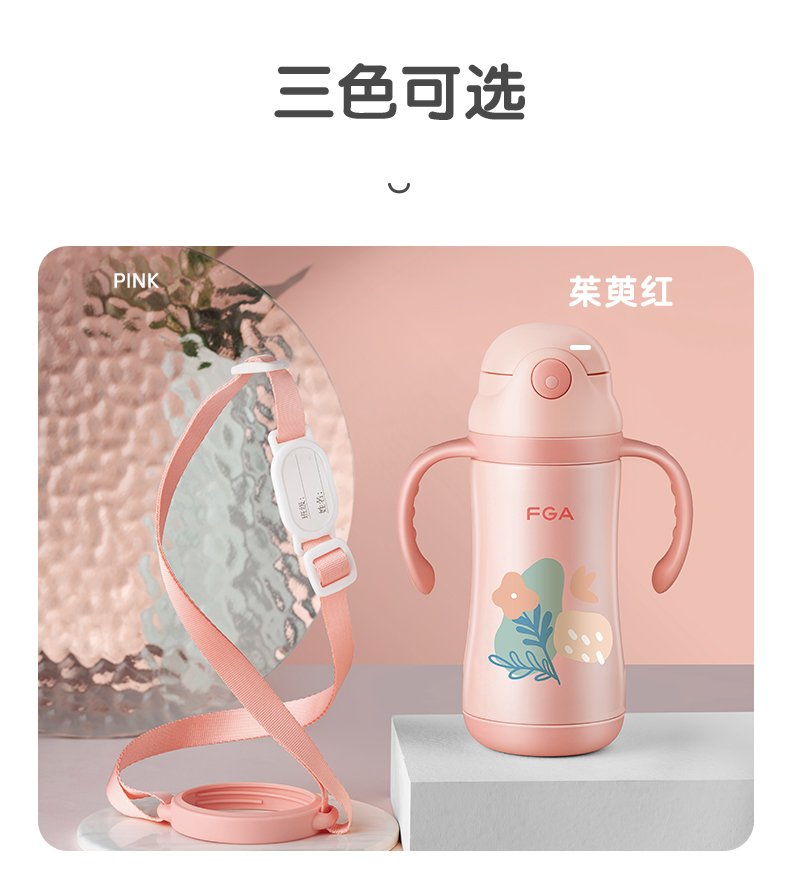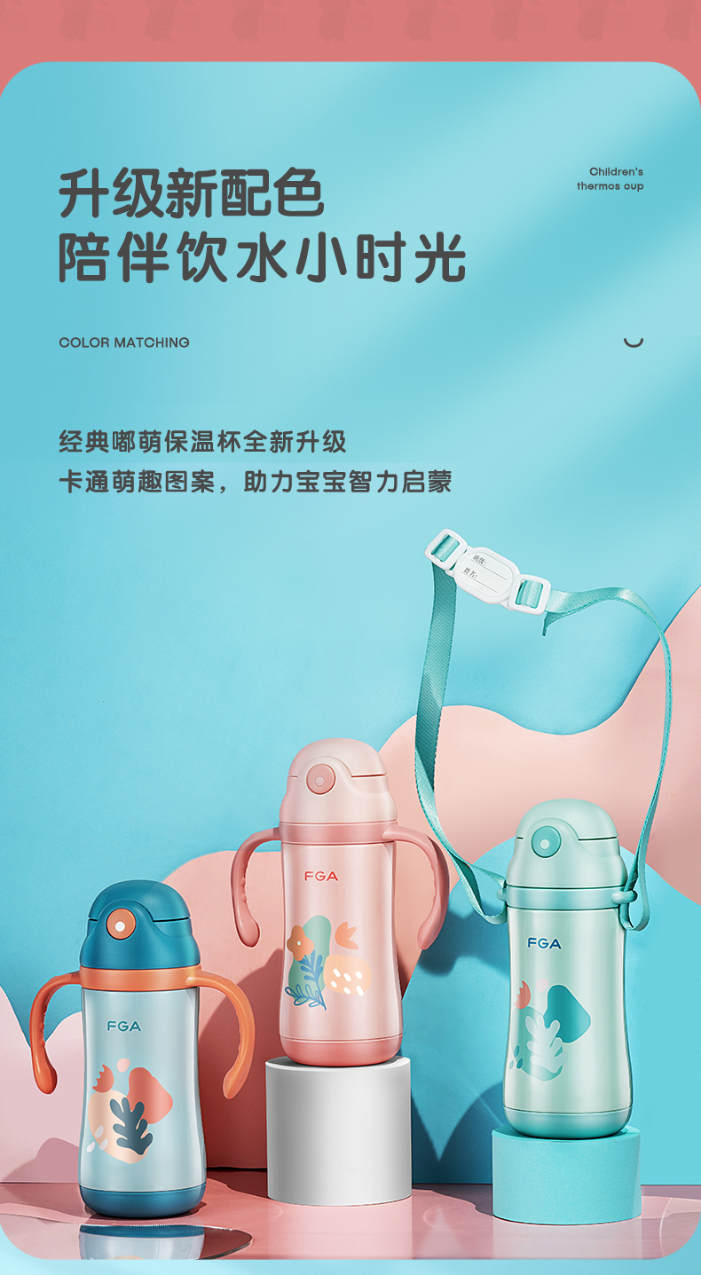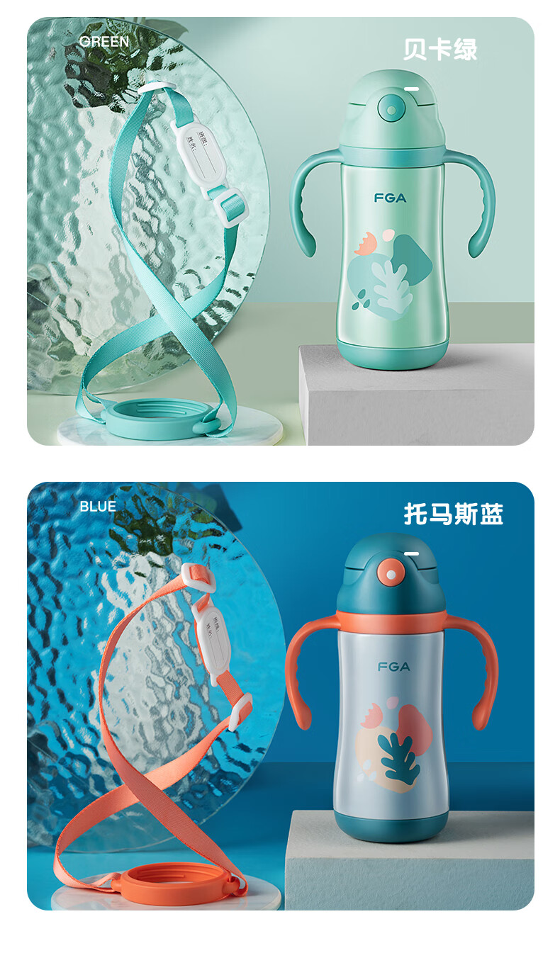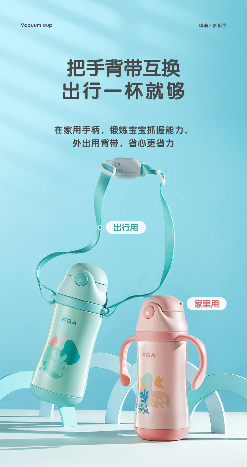 FGA富光儿童保温杯幼儿园宝宝吸管学饮杯316不锈钢把手喝水壶杯子蓝