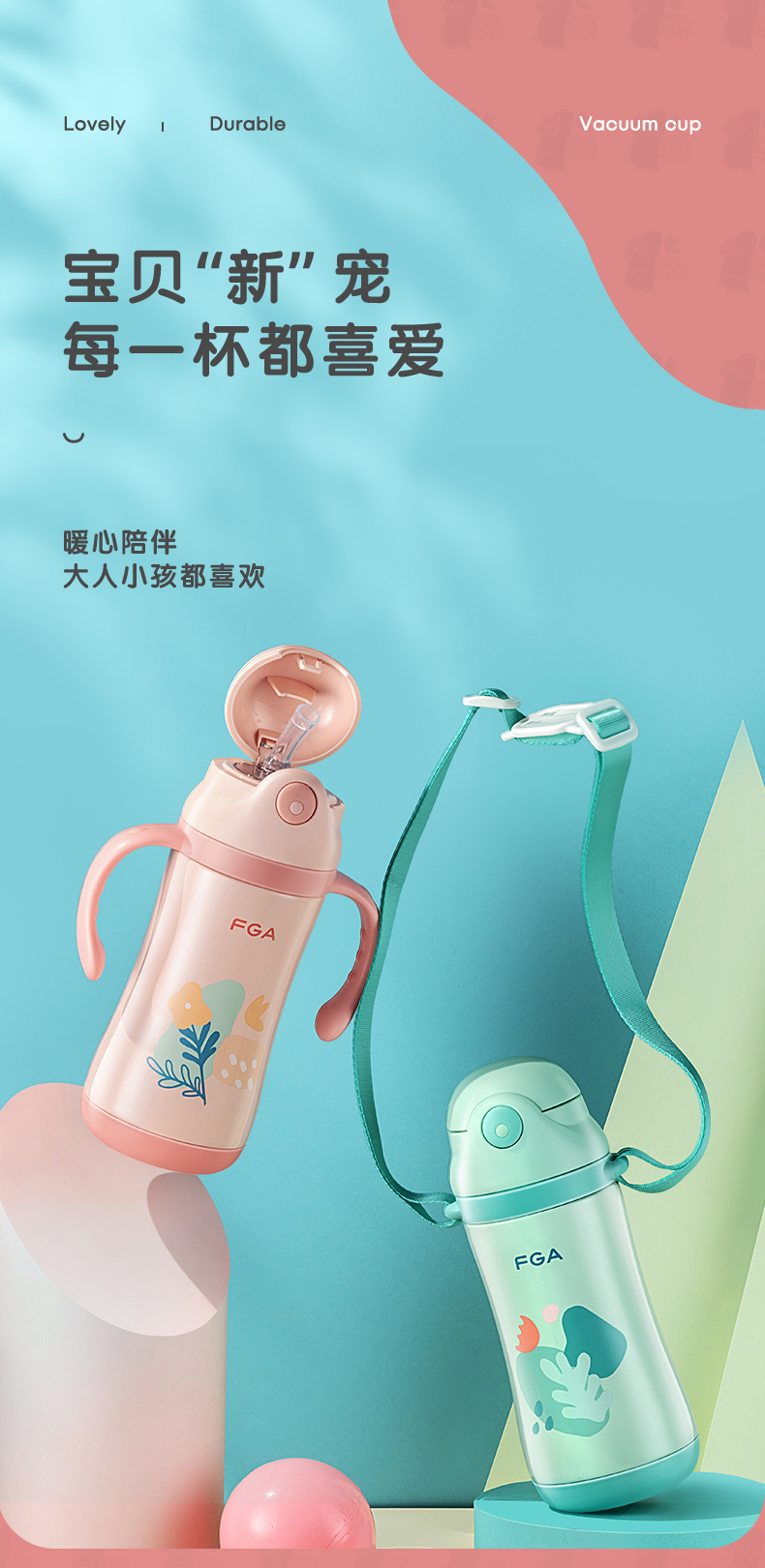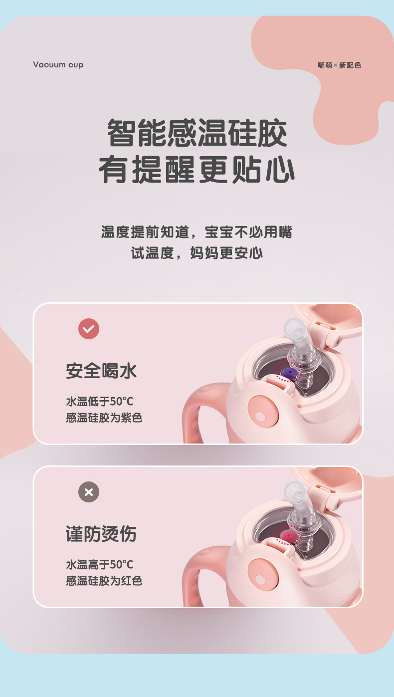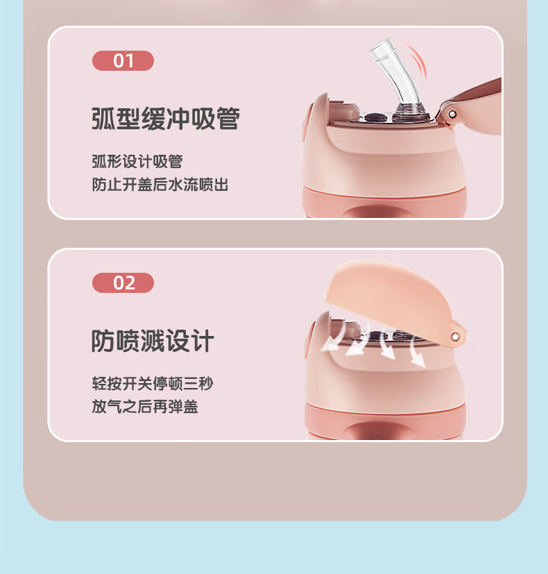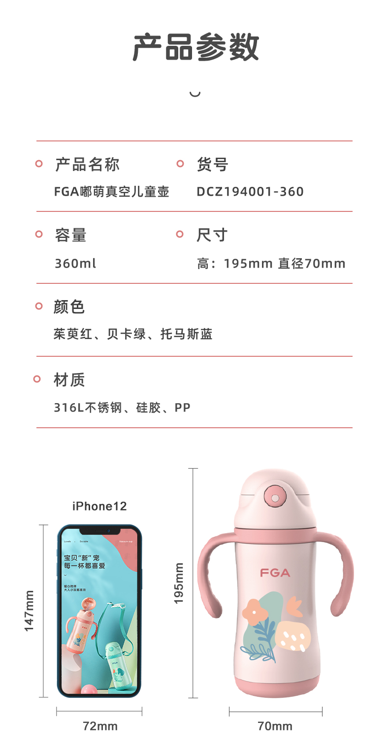 FGA富光儿童保温杯幼儿园宝宝吸管学饮杯316不锈钢把手喝水壶杯子蓝