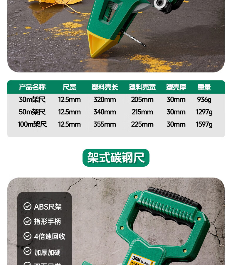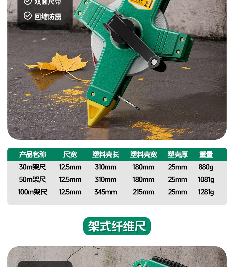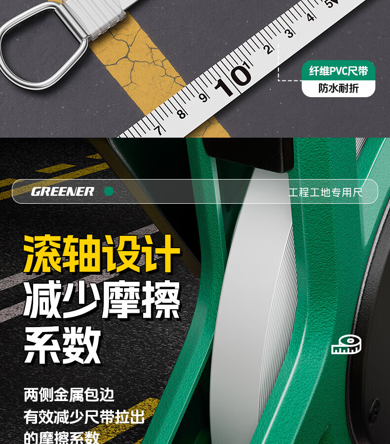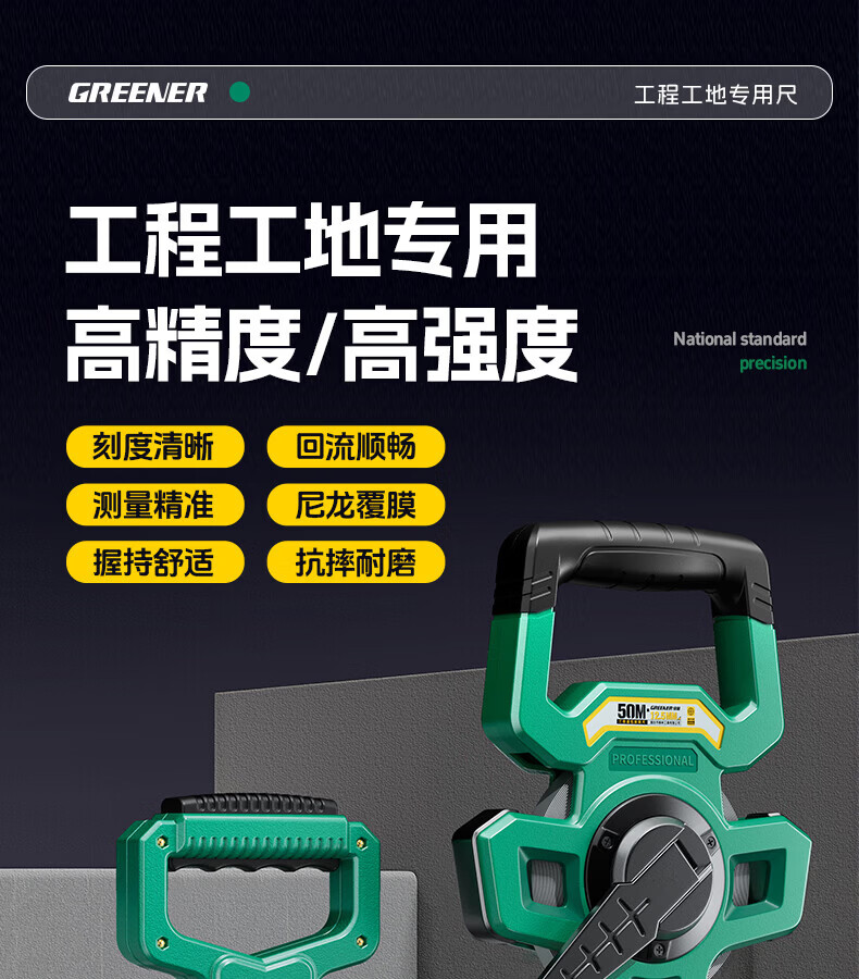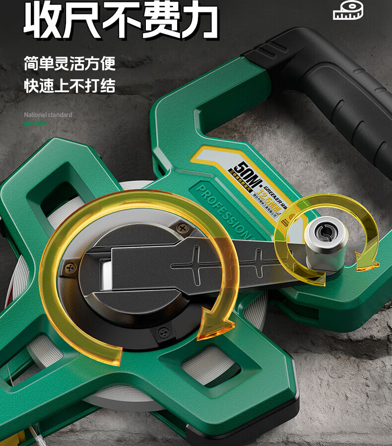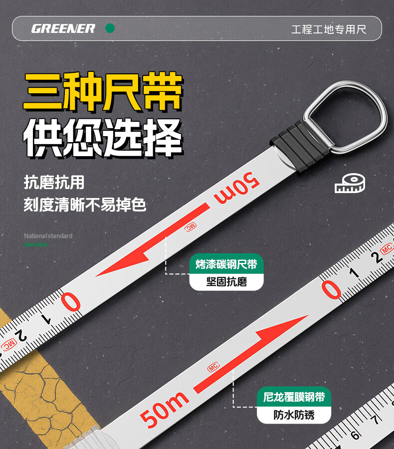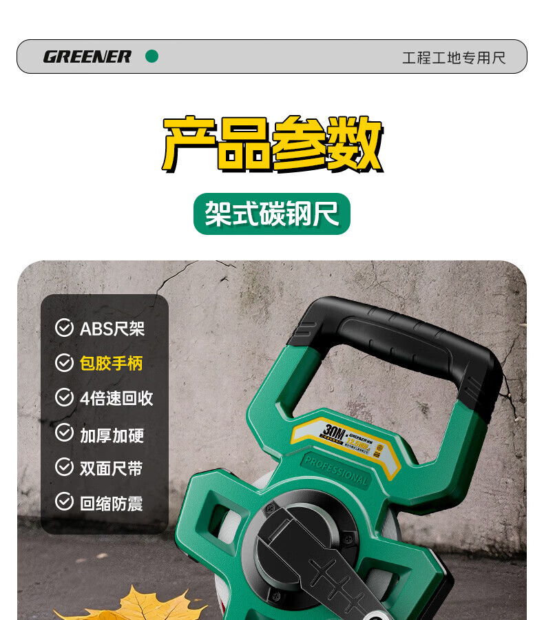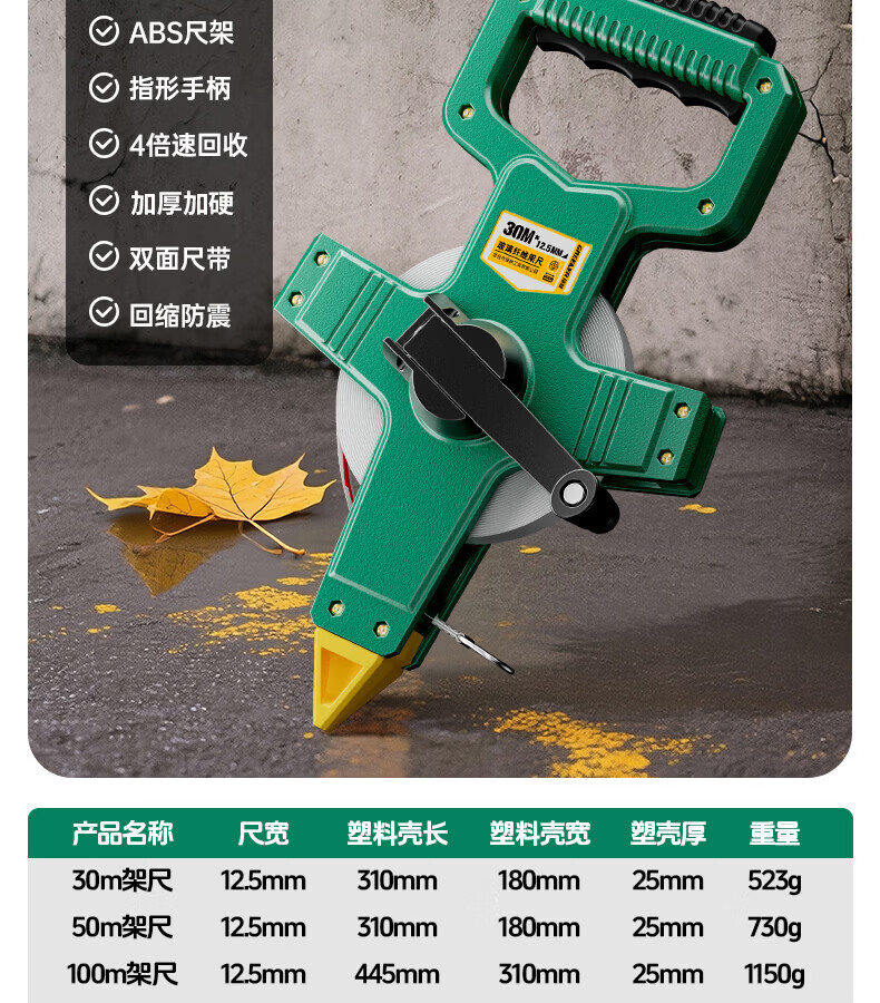 绿林(GREENER)皮卷尺测量土地长卷尺30 50 100米纤维软尺钢卷尺盒尺工业级 [加厚款]玻璃纤维尺带架尺(30米)