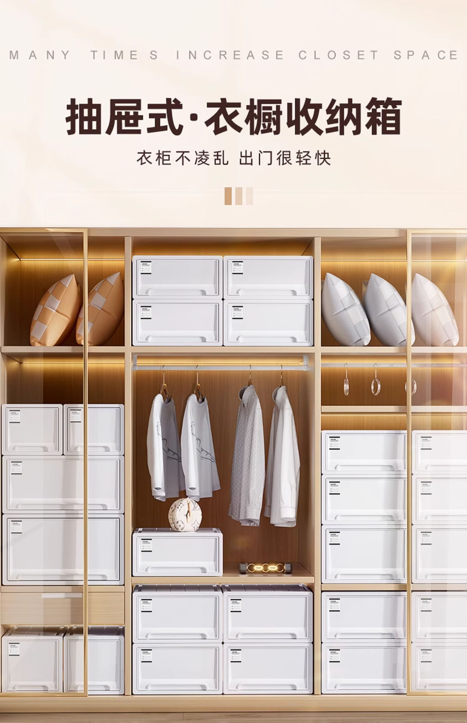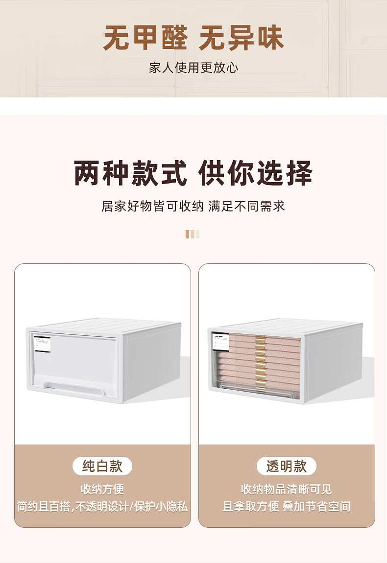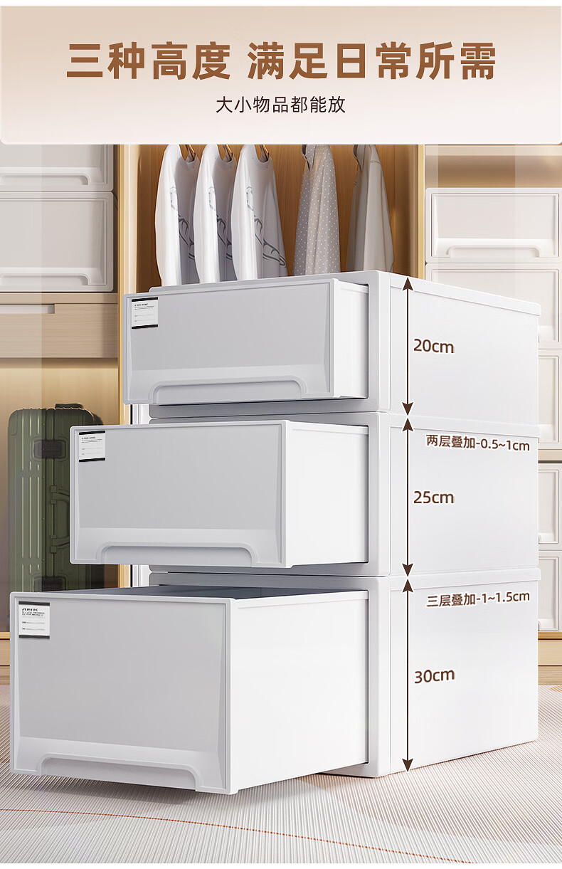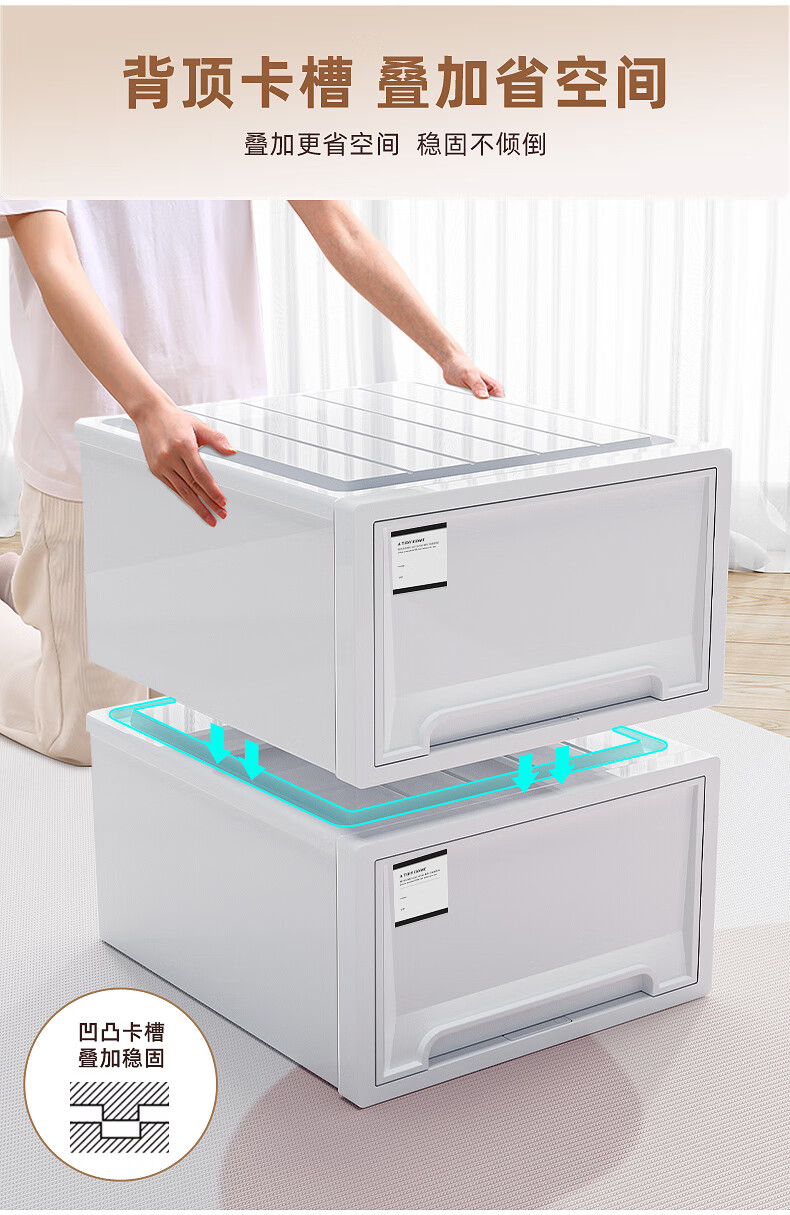 稻草熊(DOCOXO)抽屉式收纳箱衣物储物收纳盒塑料透明家用整理箱收纳柜 纯白中号