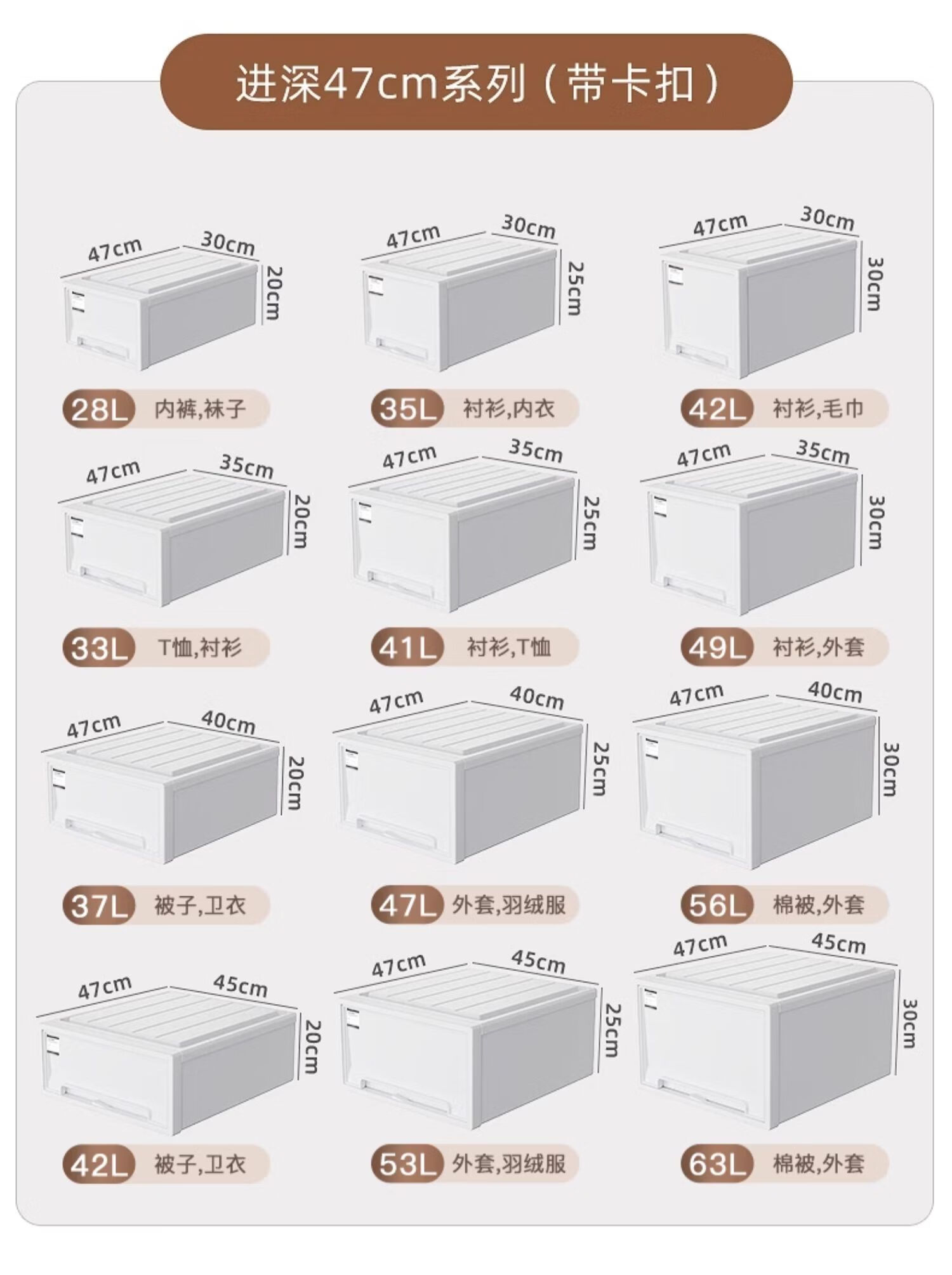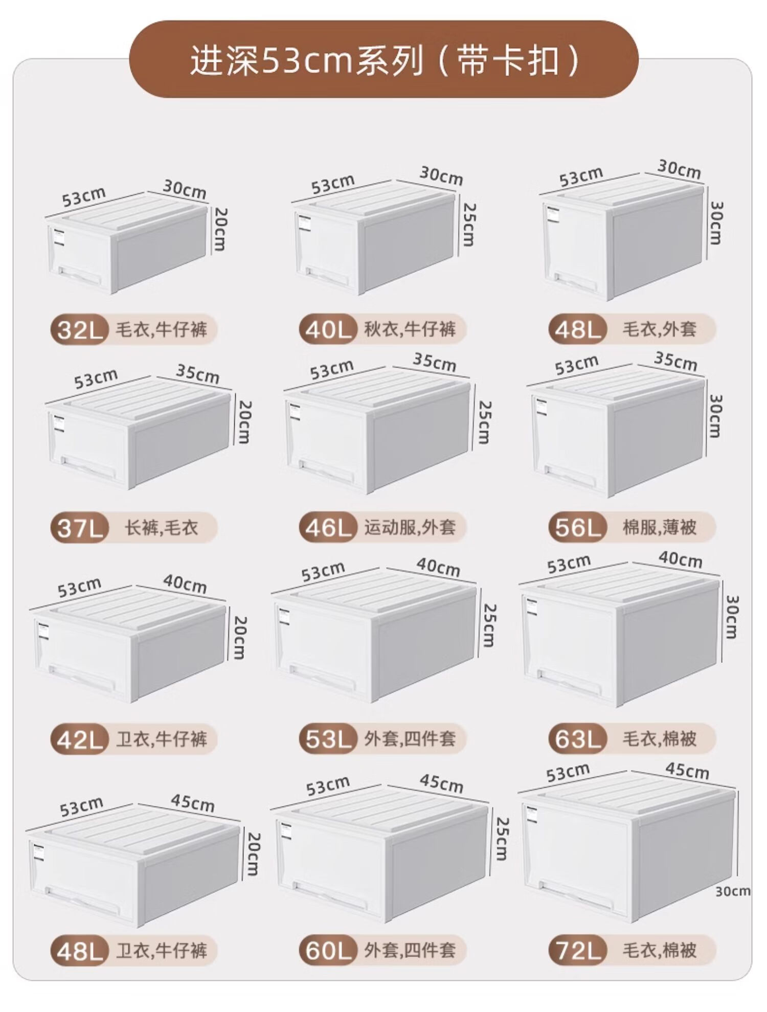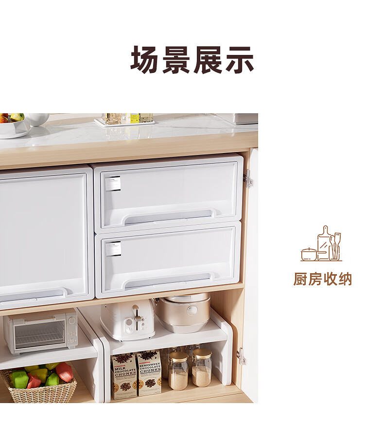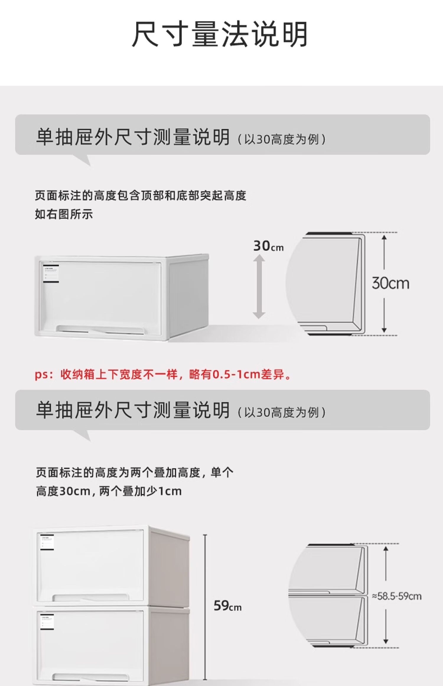 稻草熊(DOCOXO)抽屉式收纳箱衣物储物收纳盒塑料透明家用整理箱收纳柜 纯白中号