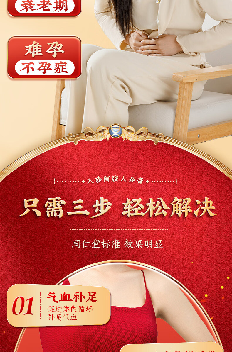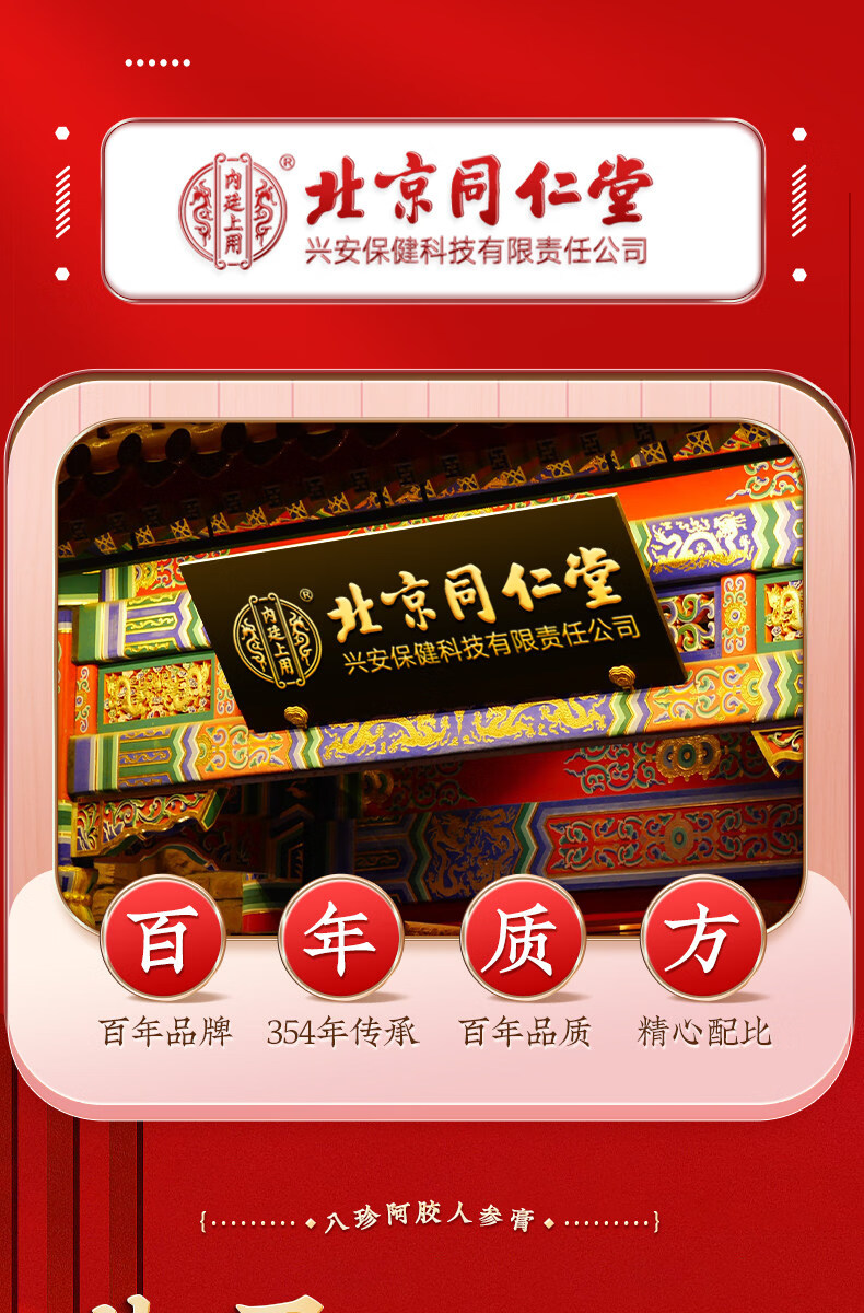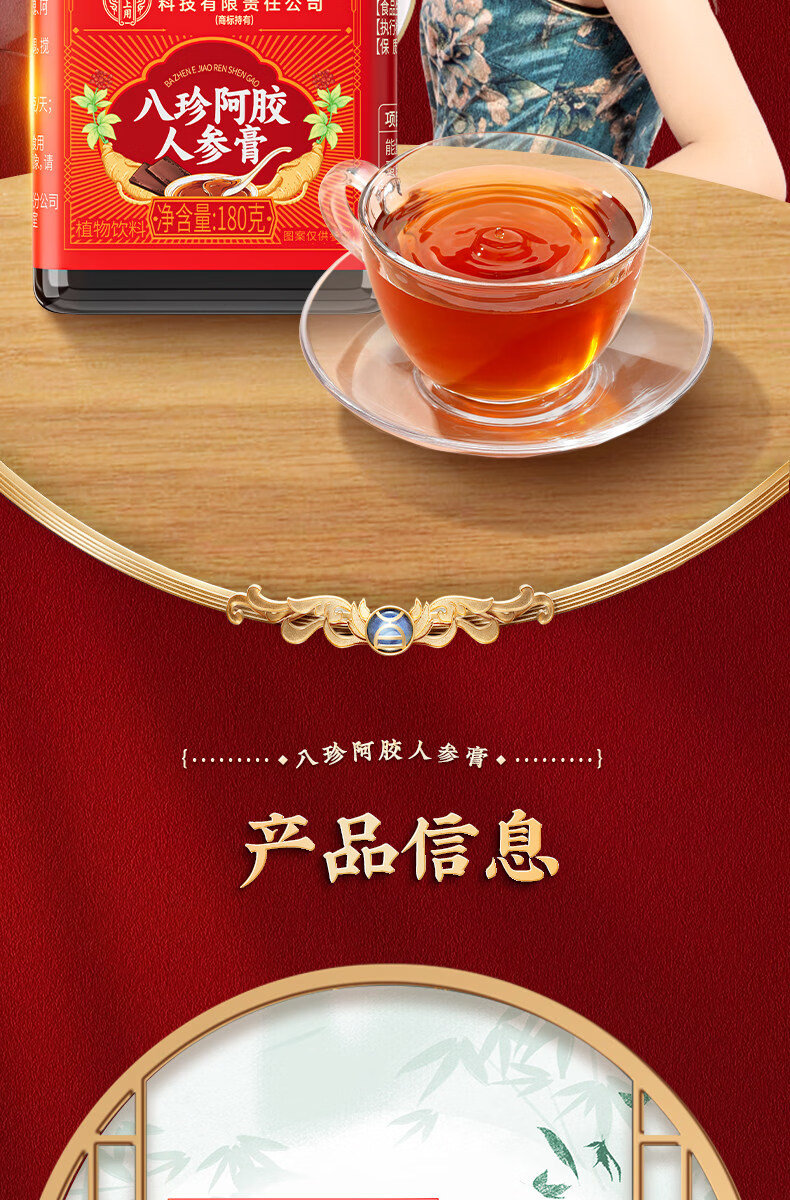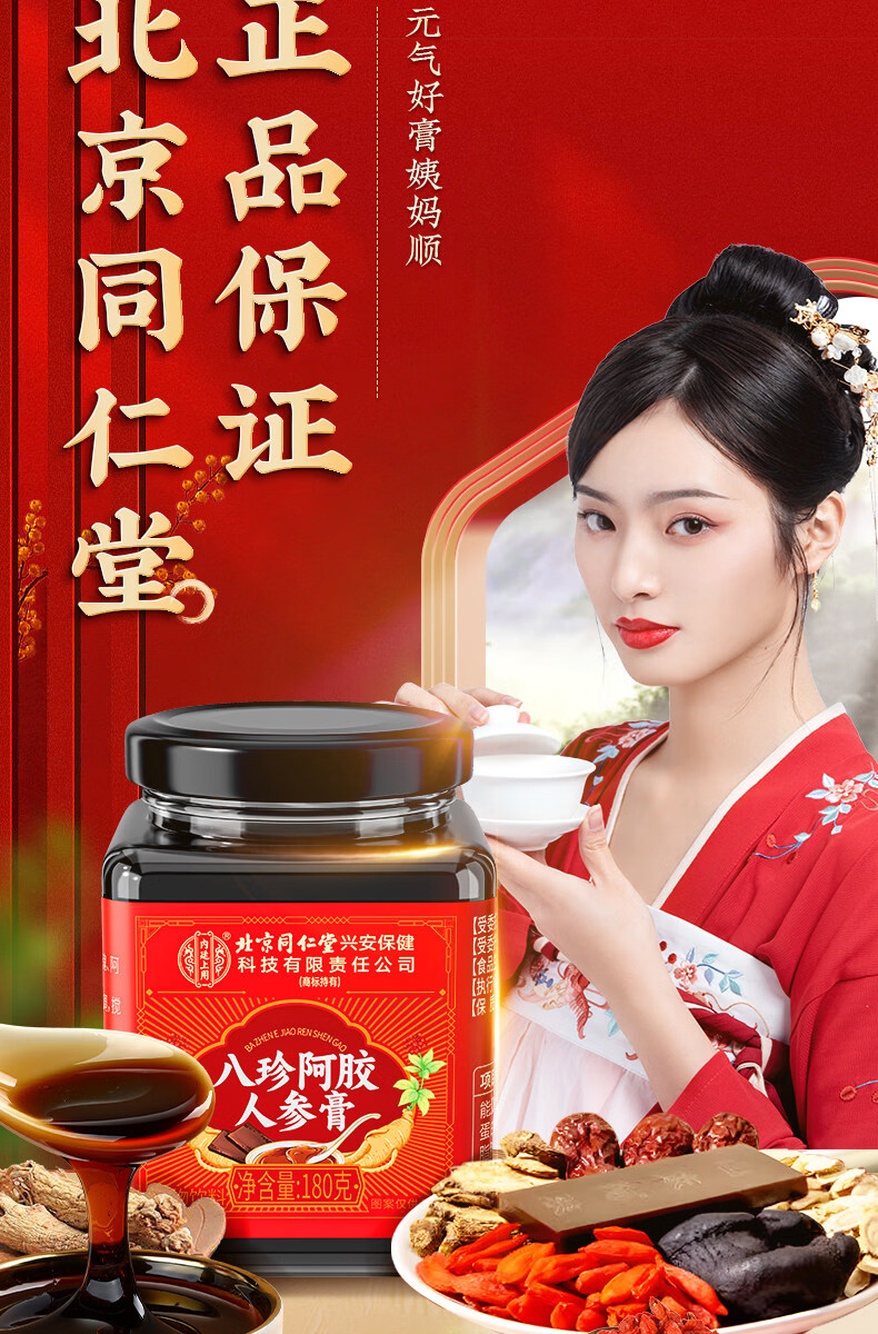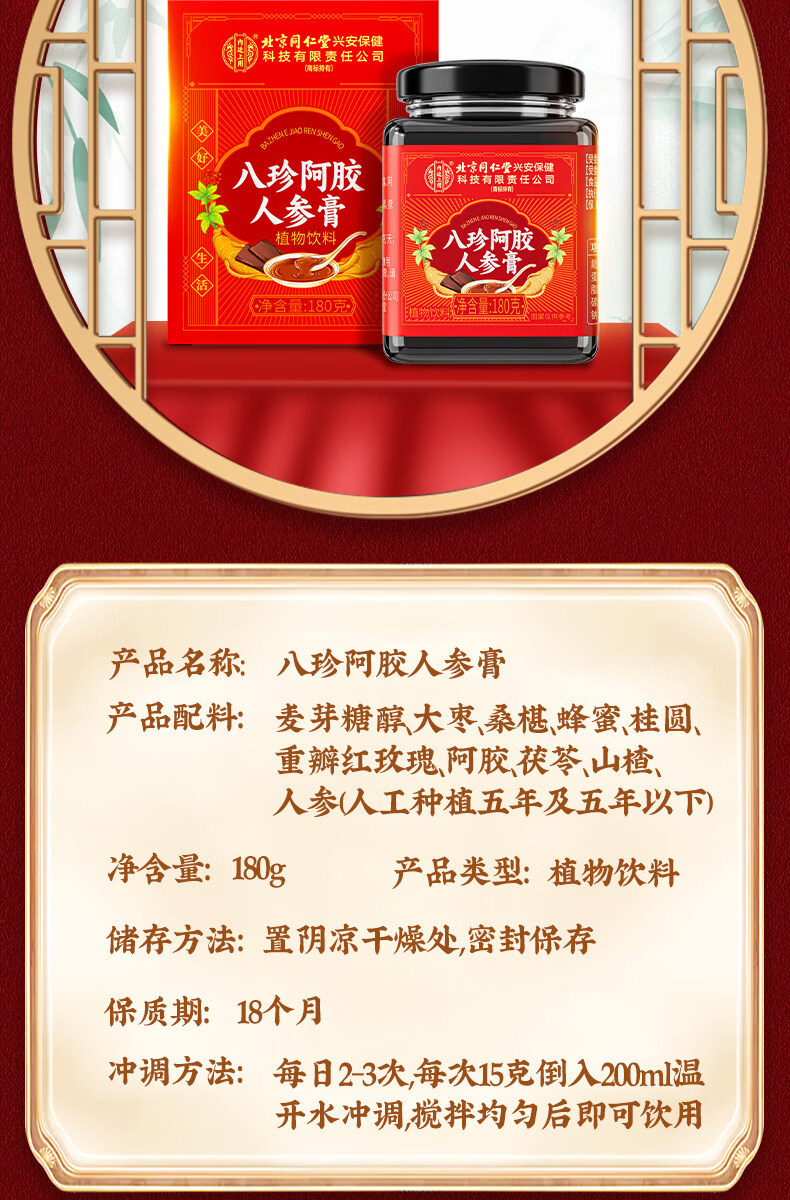 北京同仁堂八珍阿胶人参膏0添加辅助补气血姨妈量少内调滋补膏女生养颜养生 【1罐体验装】 180g*1罐
