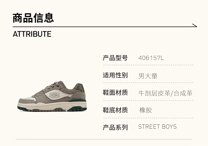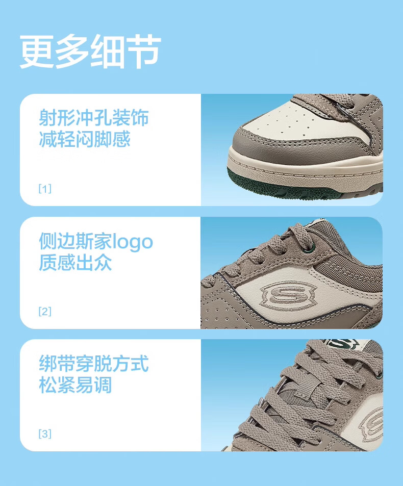 Skechers斯凯奇儿童板鞋春秋低帮休闲复古男童厚底轻便防滑运动鞋310230L