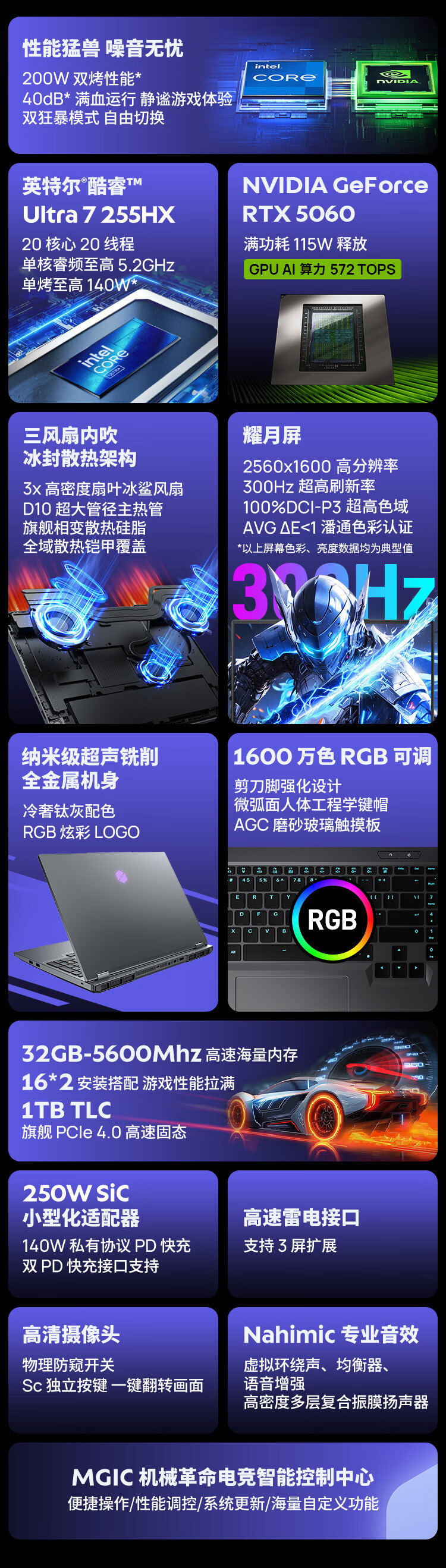 机械革命【国家补贴】耀世16Ultra 16英寸AI高静游戏笔记本电脑(U7-255HX 32G 1T RTX5060 灰)