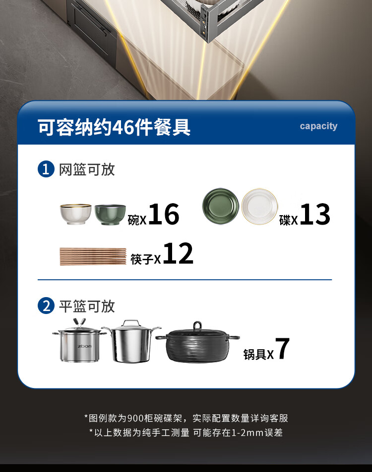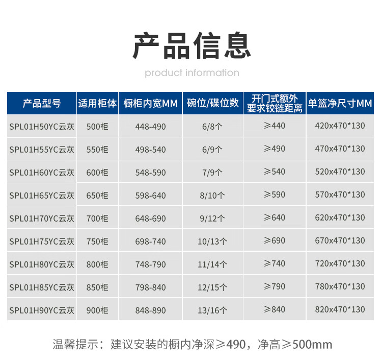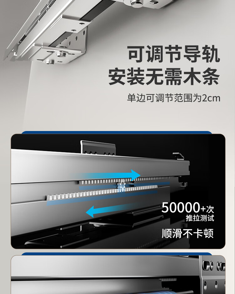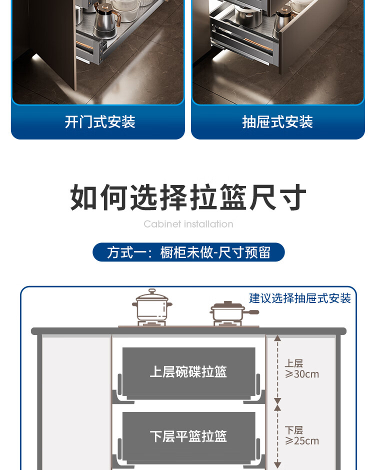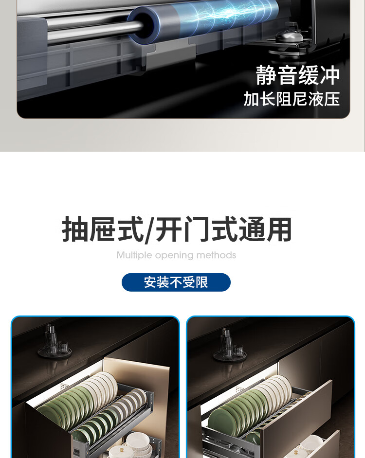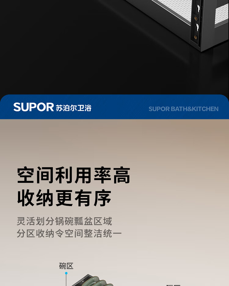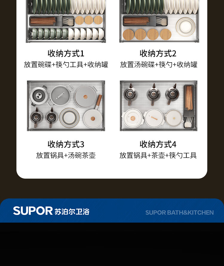 苏泊尔厨房拉篮抽屉式铝合金双层碗篮厨具铝合金碗碟收纳置物架橱柜拉篮 顶峰系列-云灰铝合金+304碗碟拉篮500柜
