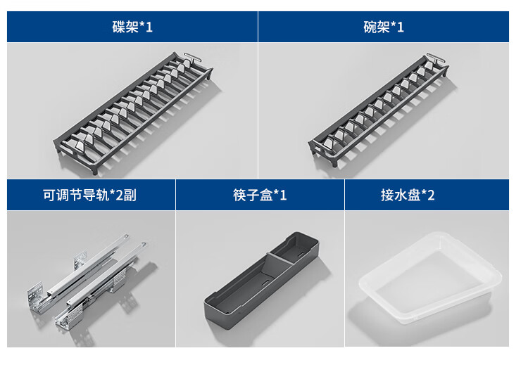 苏泊尔厨房碗碟置物架抽屉收纳盒分隔内置橱柜沥水碗架碗筷盘子拉篮配件 枪灰碟架46CM