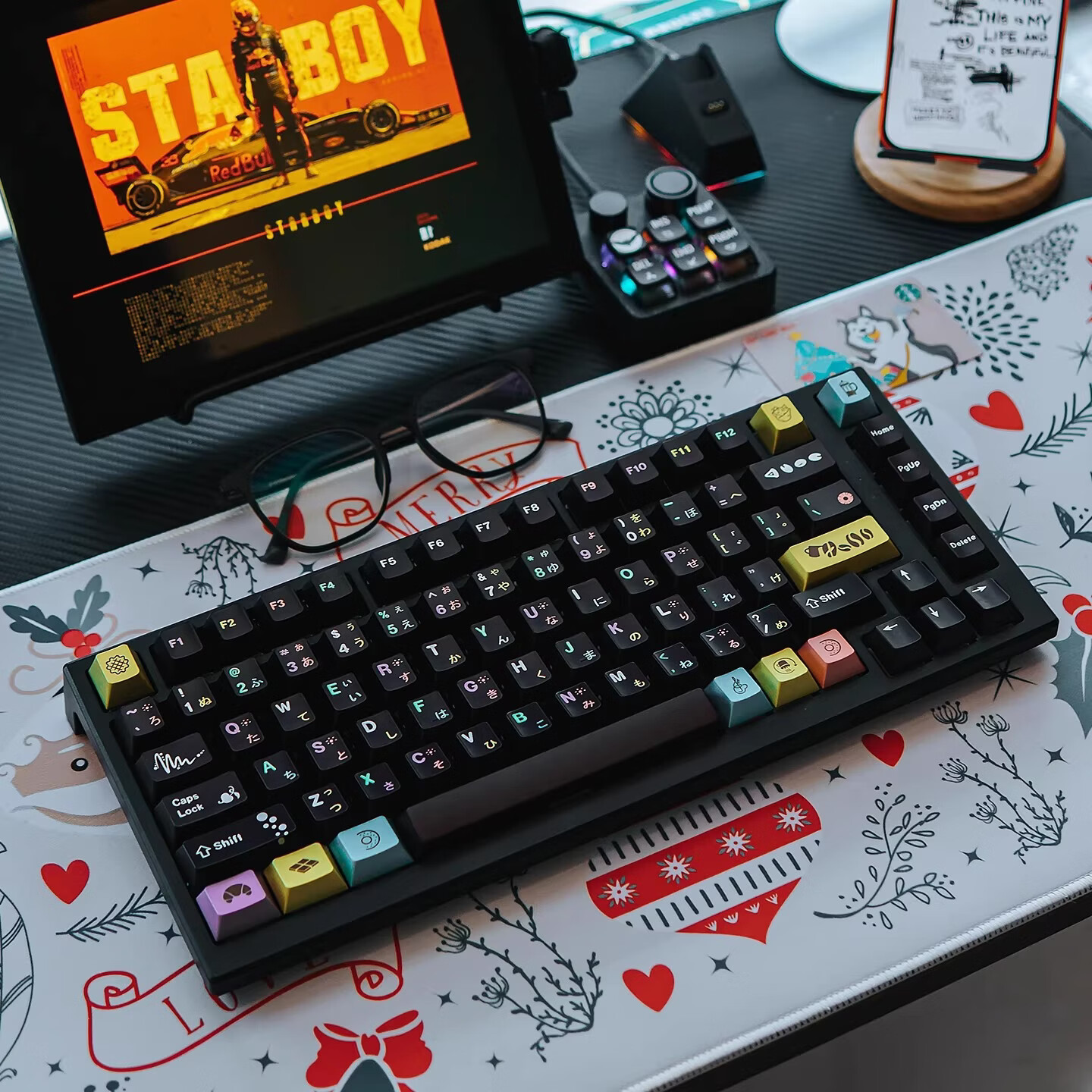 MINTCAPS薄荷糖黑色下午茶金属质感机械键盘键帽磨砂PBT热升华原厂适65/75 下午茶-喷金属漆