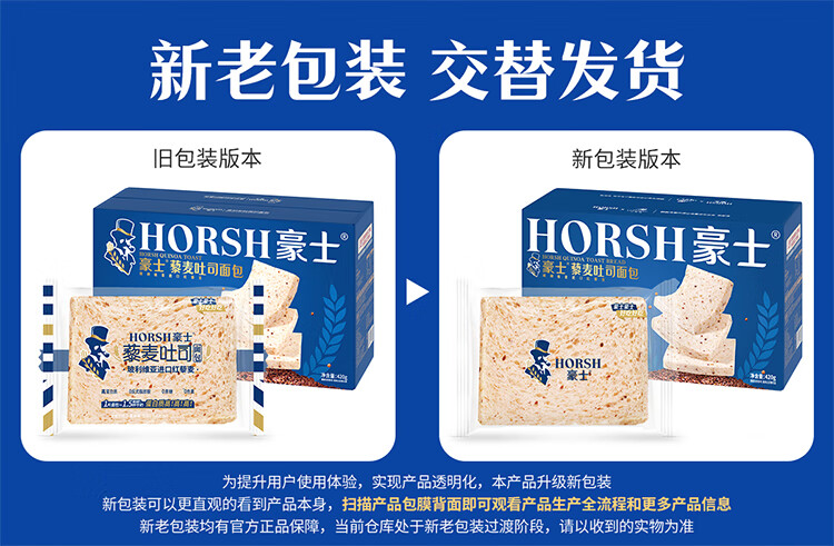 豪士面包全麦藜麦吐司420g早餐休闲零食0蔗糖办公室糕点年货节礼盒