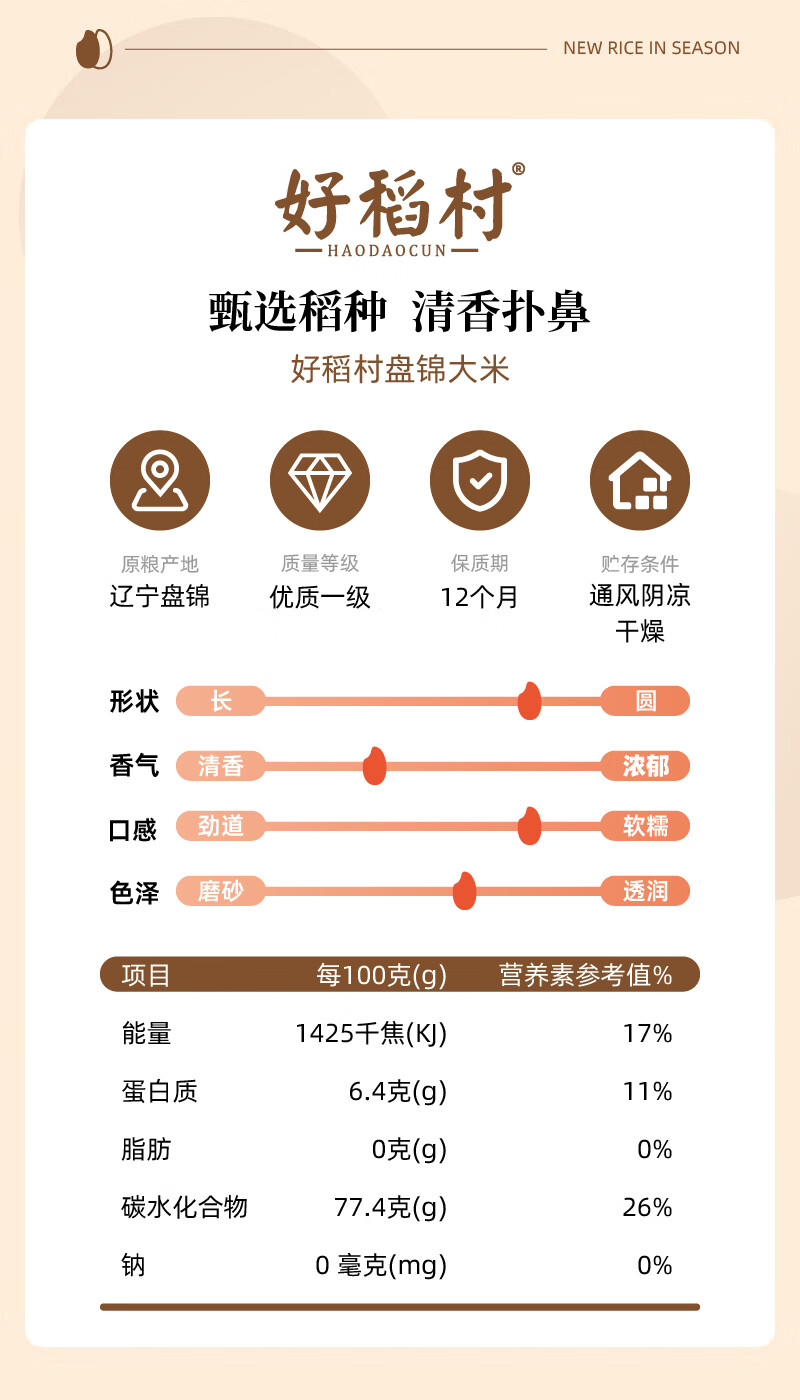 好稻村当年当季新米上市东北大米盘锦大米新米尝鲜 好米尝着买 500g
