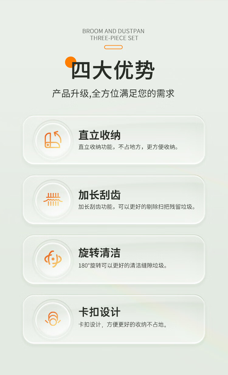 佳帮手扫把簸箕套装魔术扫把三件套扫地扫帚刮水除尘折叠梳齿型畚箕