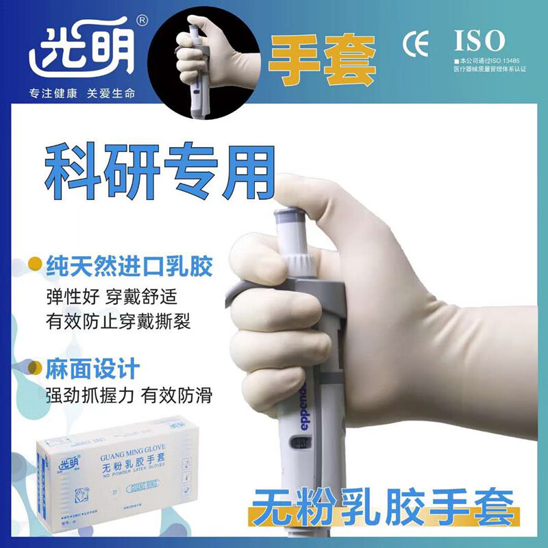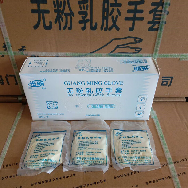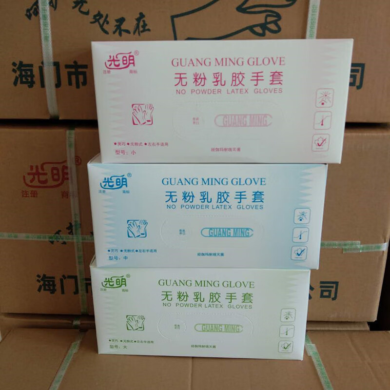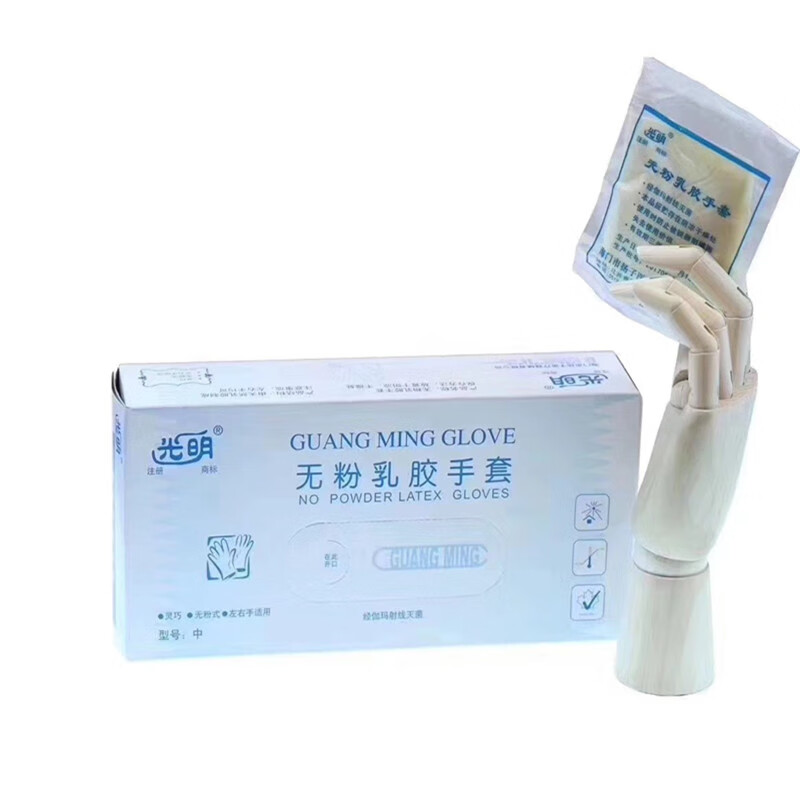 光明一次性无粉乳胶手套绿色芦荟丁腈手套PE手套灭菌包装 乳白色无粉乳胶5盒 L