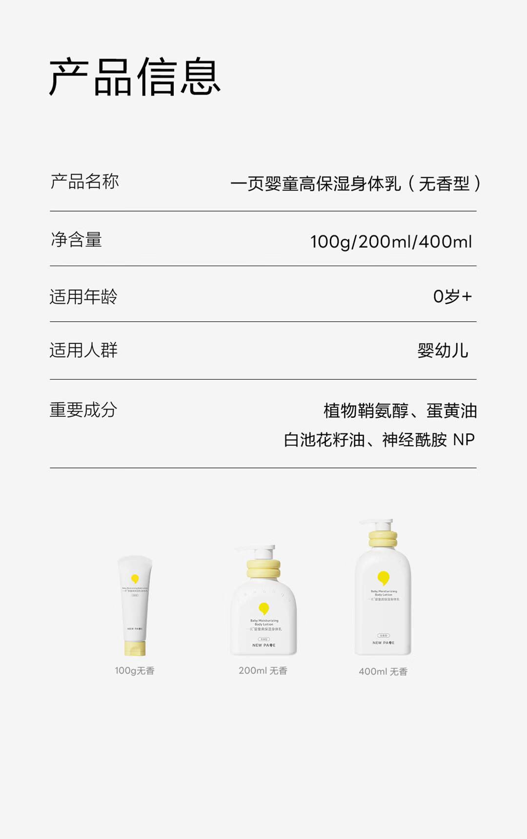 newpage一页儿童身体乳婴儿润肤乳0岁+可用滋润舒缓保湿乳100g