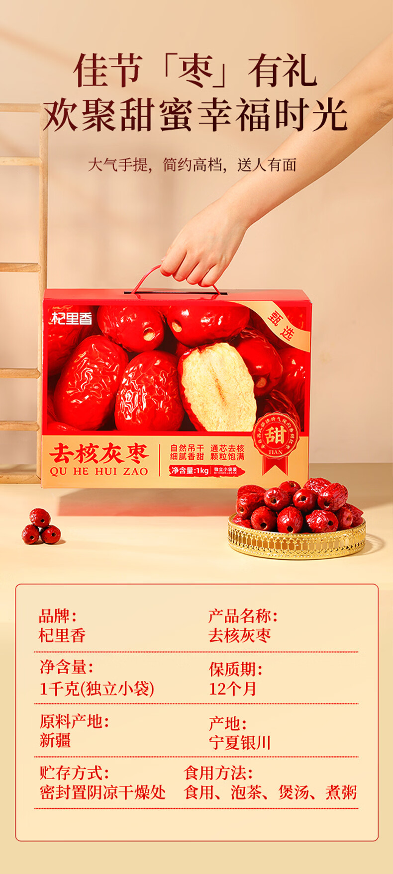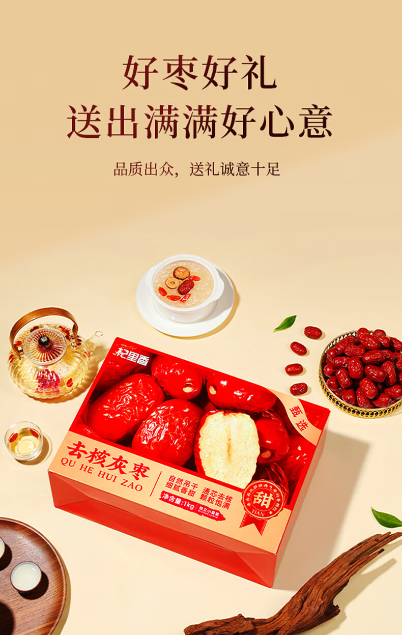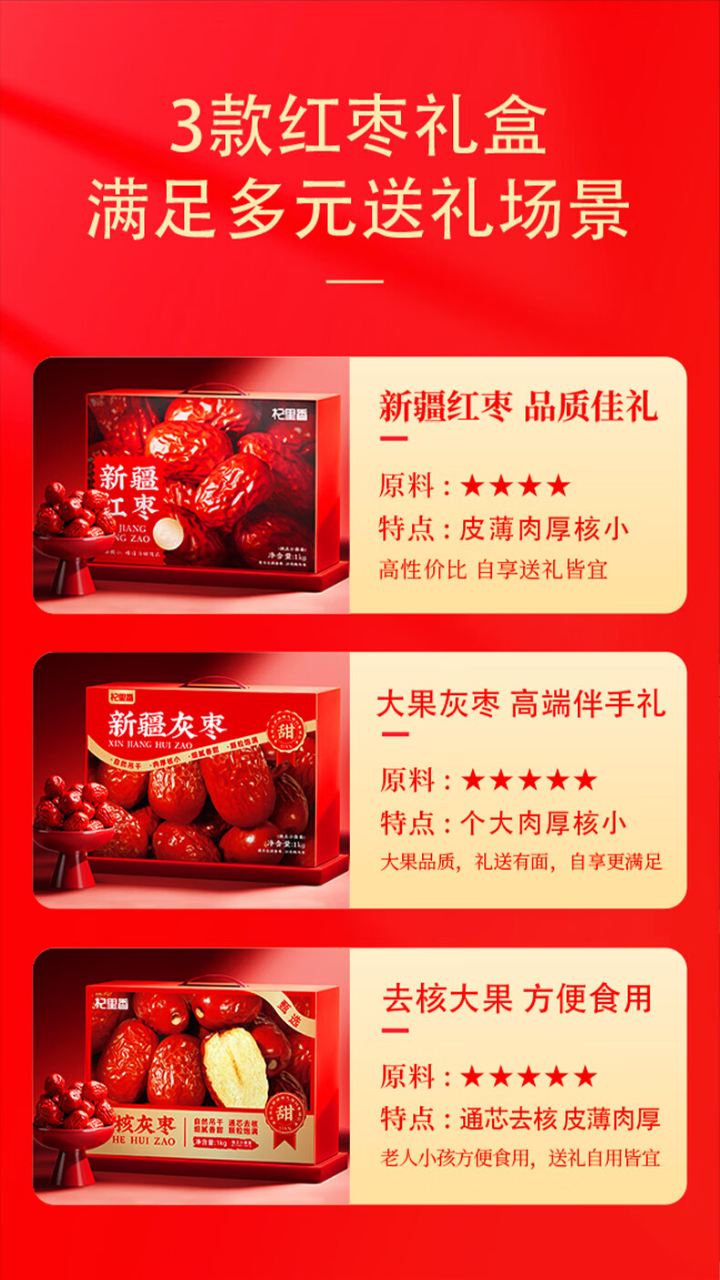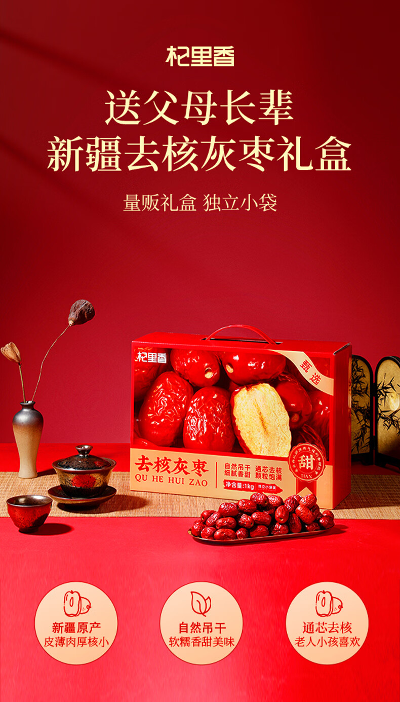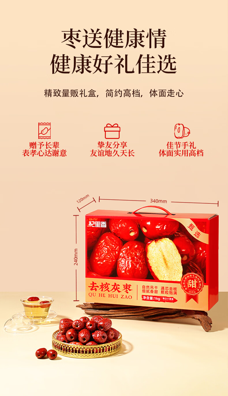 杞里香新疆大红枣年货礼盒1kg 大果灰枣补品干货礼盒送长辈父母过年礼物
