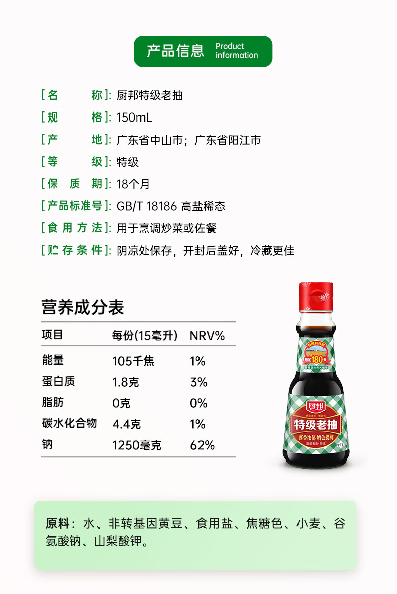 厨邦酱油 老抽系列 特级老抽【特级酱油】150ml 小瓶卤煮红烧酱油