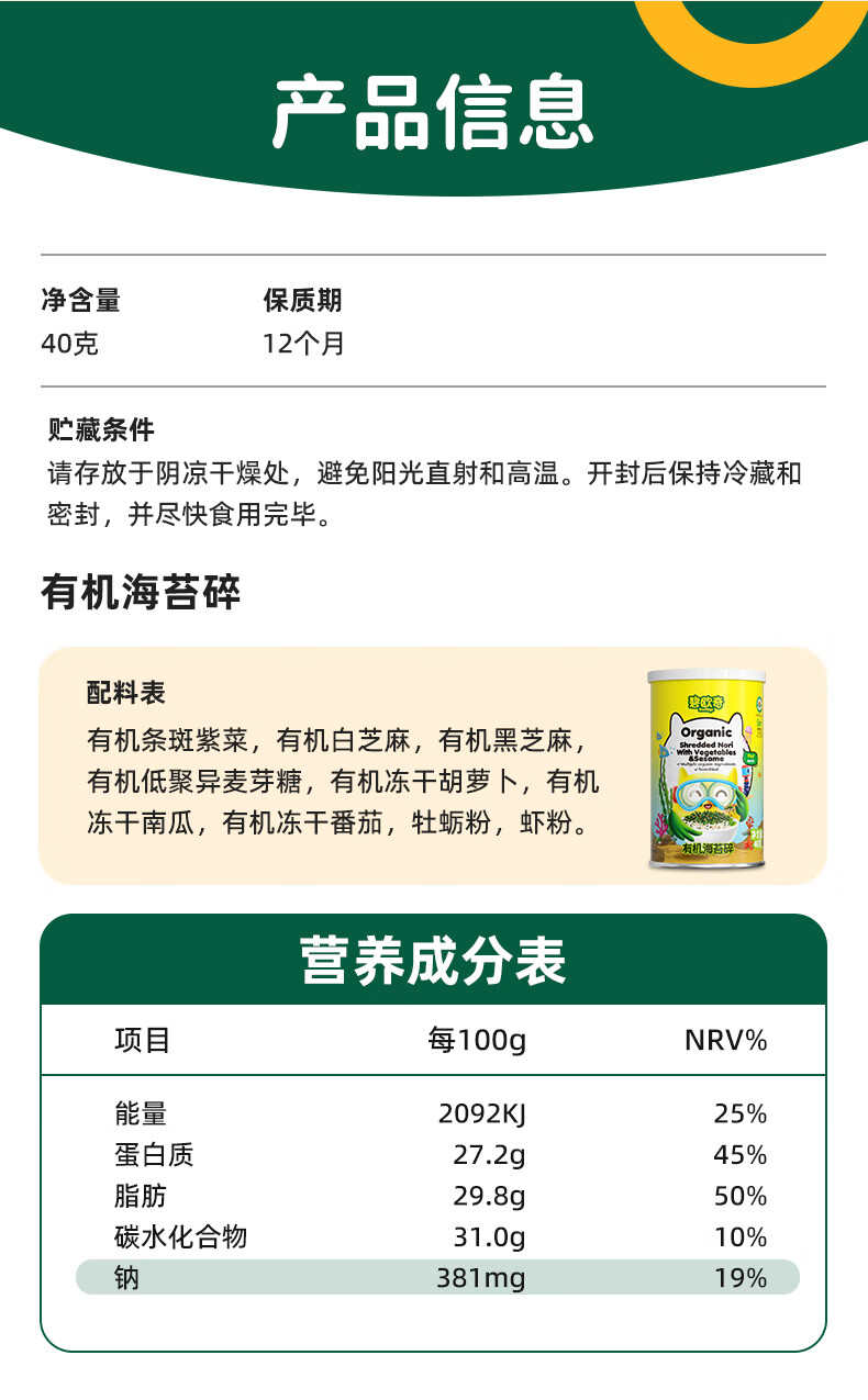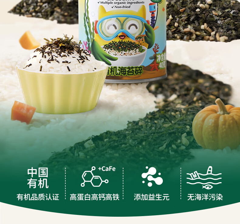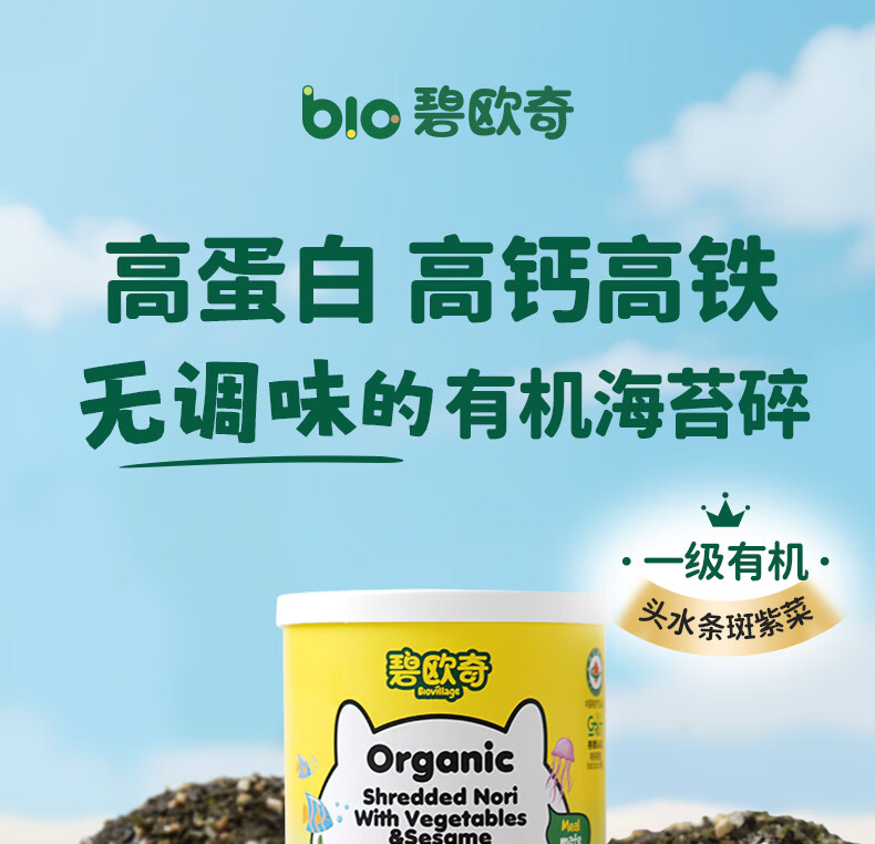 碧欧奇有机海苔拌饭碎40g 儿童拌饭料无调味高钙高铁送宝宝婴幼儿辅食谱