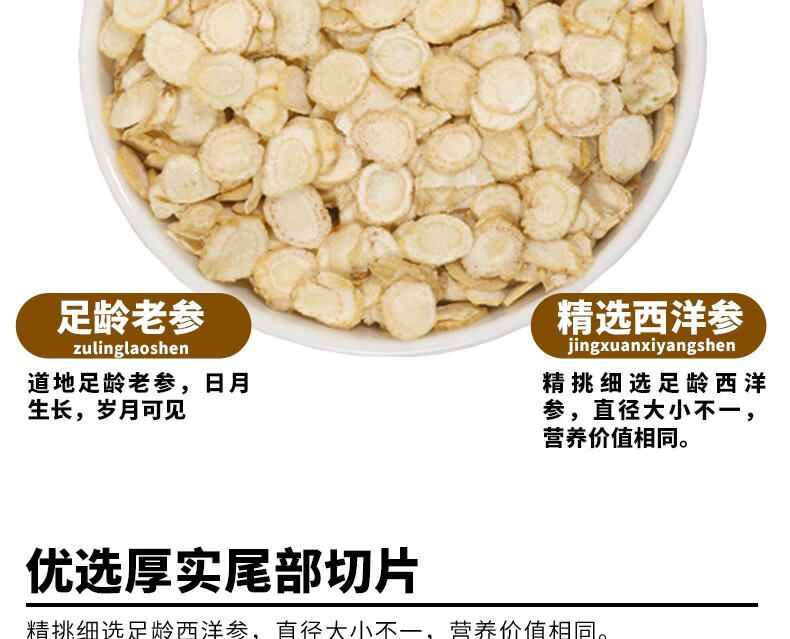 赏语柠香 西洋参(直径小于0.8cm )花旗参长白山泡水用泡酒用可搭枸杞 100克