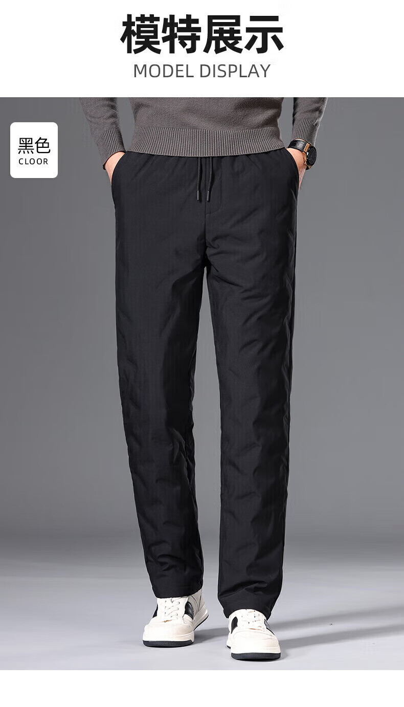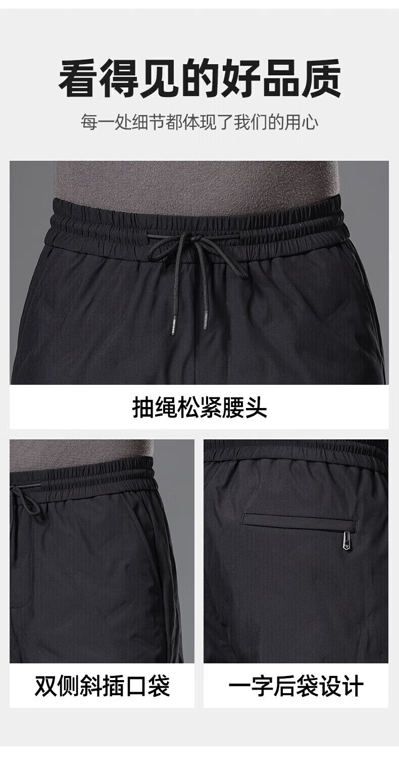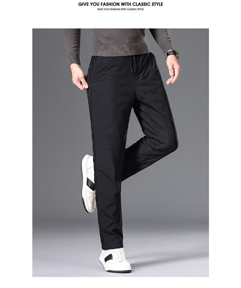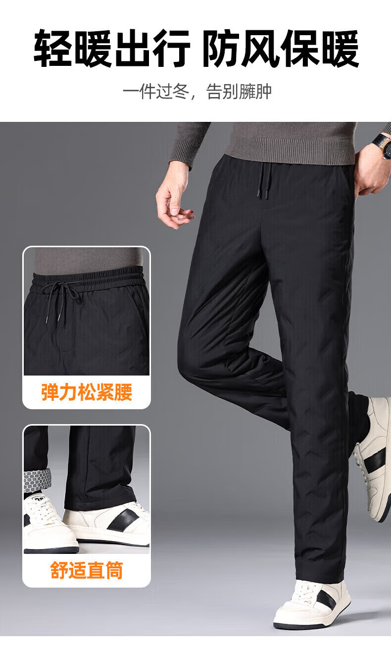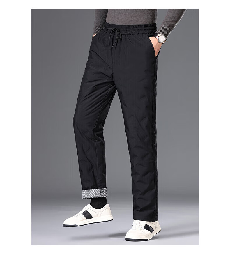 罗蒙外穿羽绒裤男中青年户外休闲百搭2025冬季新款加厚保暖直筒长裤男 黑色 M (170)