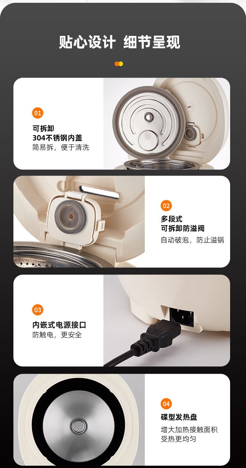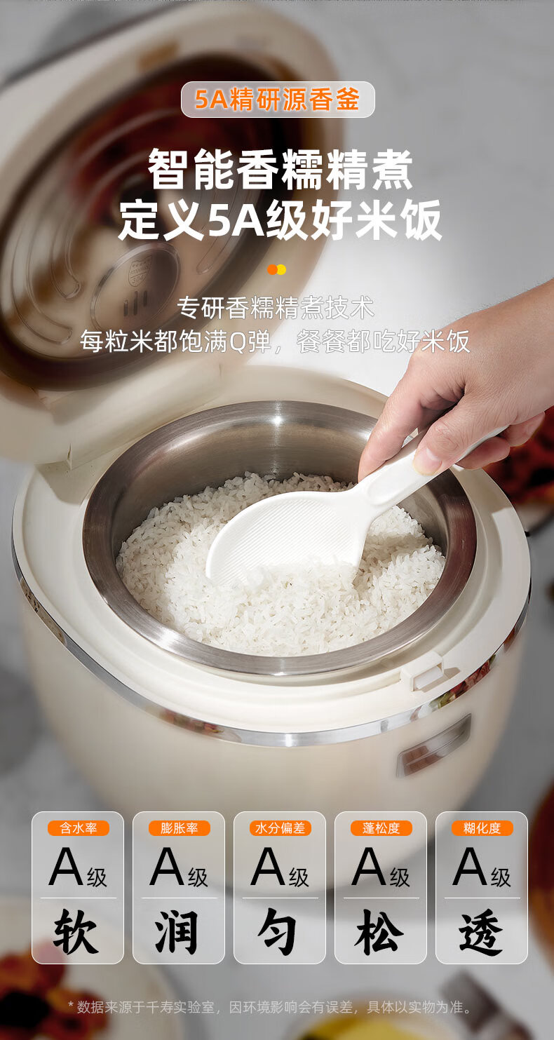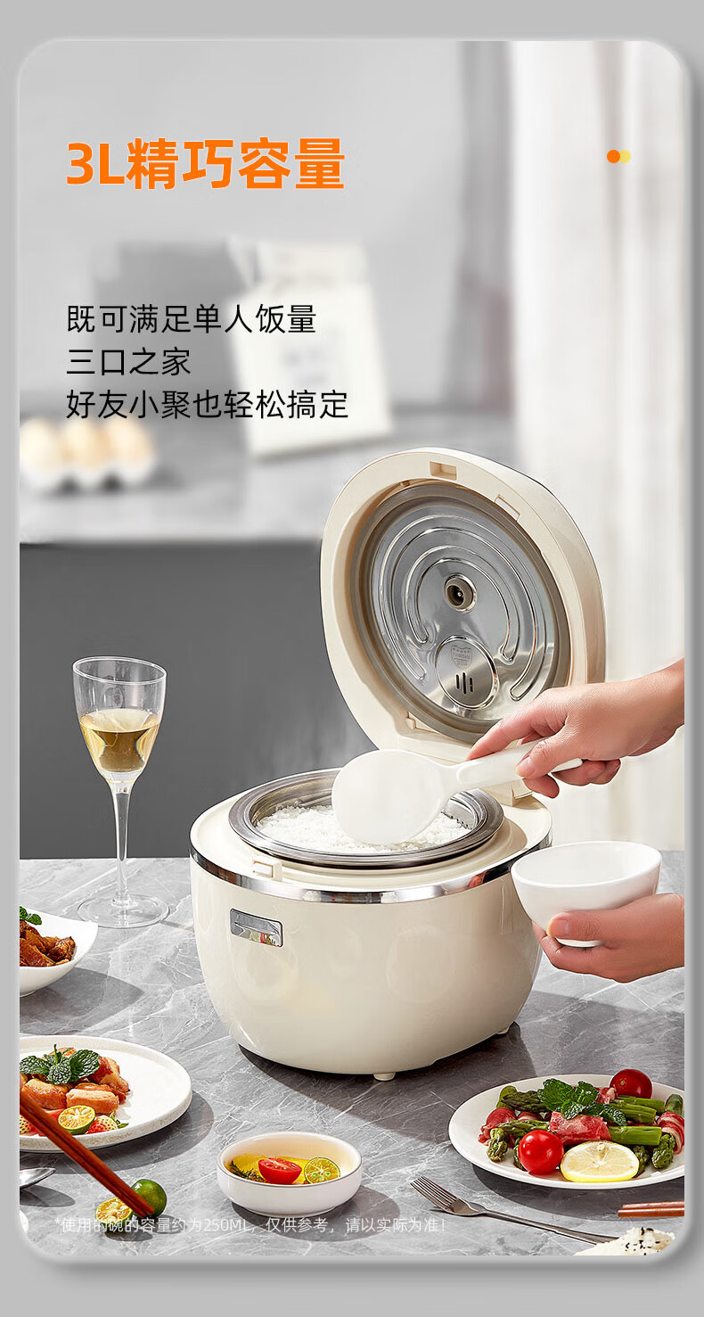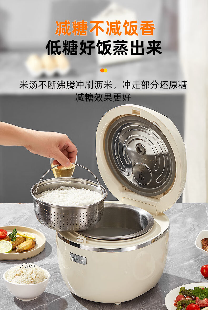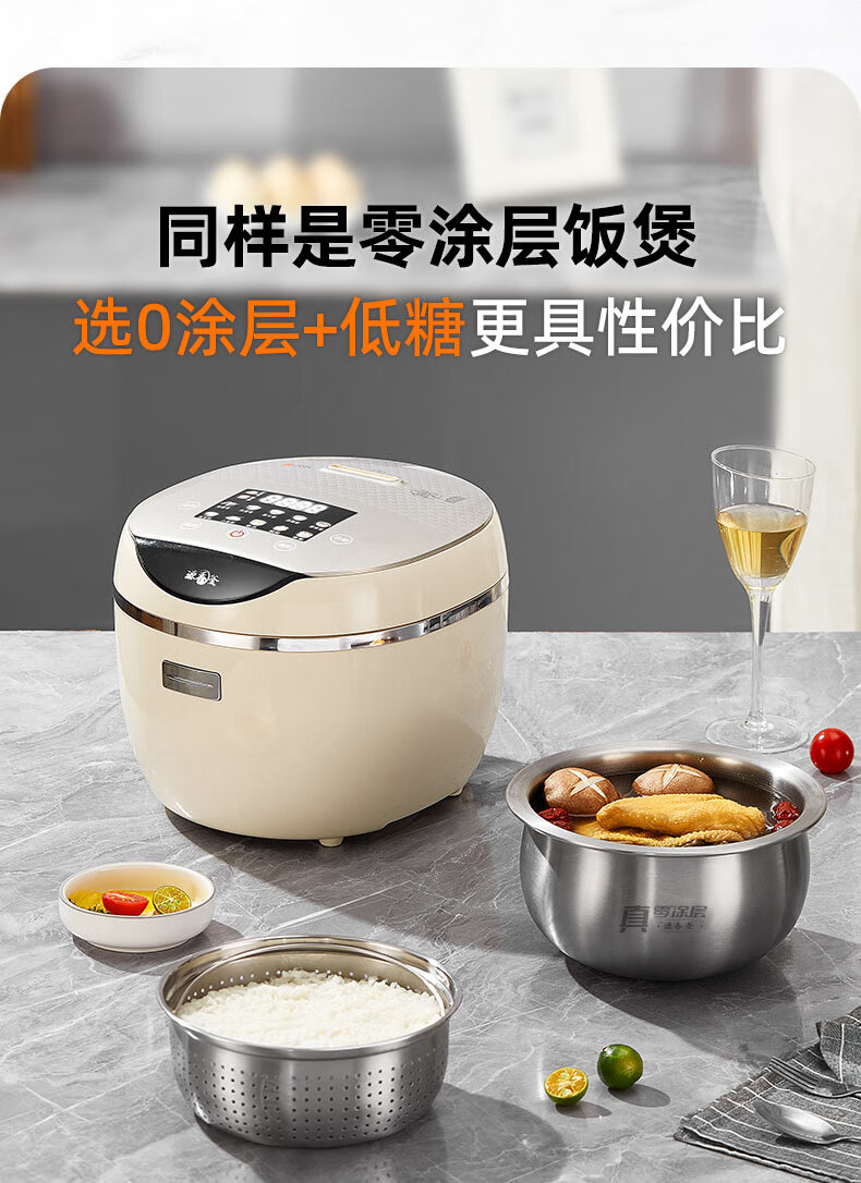 千寿(QUASH0)316不锈钢内胆 低糖电饭煲 0涂层脱降控减糖饭煲 家用米汤分离沥米电饭锅1-2-3-4个人用 白色升级加厚球釜内胆 3L 1-4人适用 【304不锈钢内盖+316不锈钢内胆】