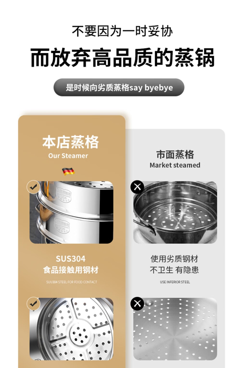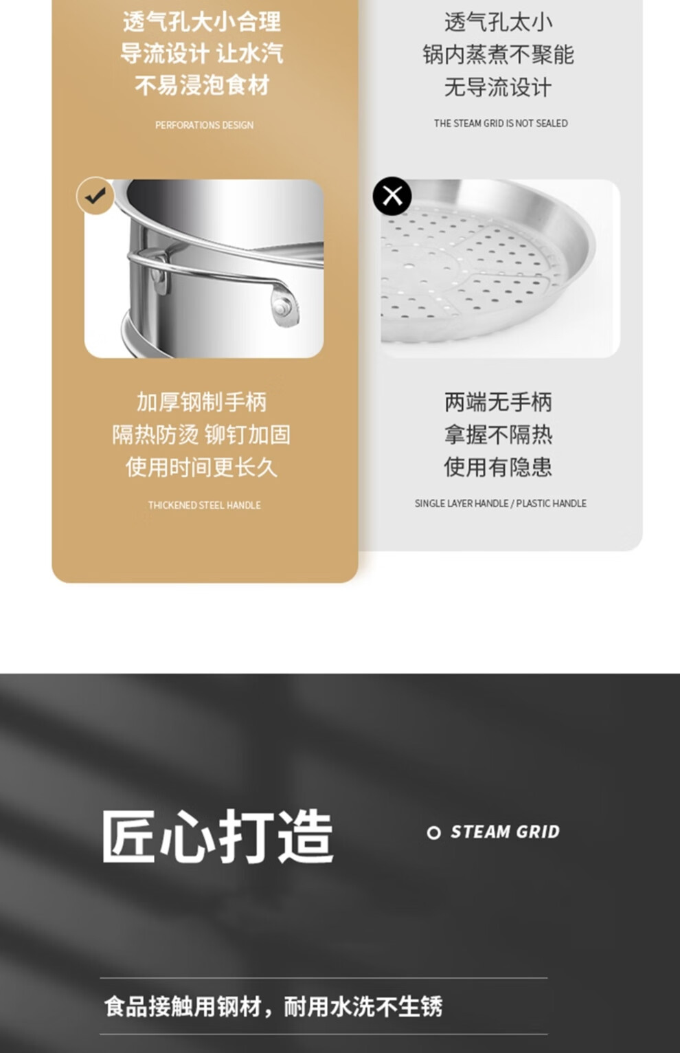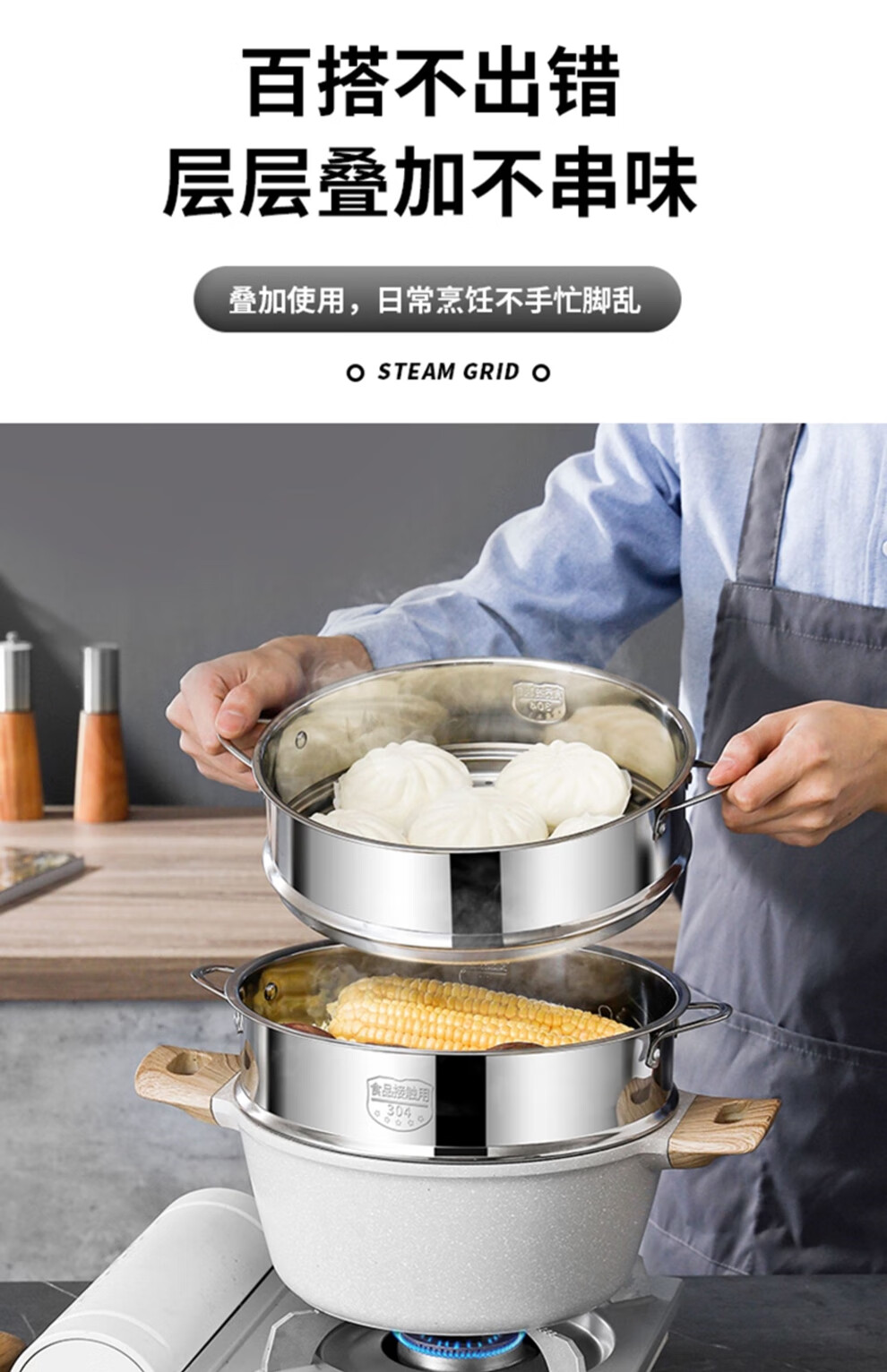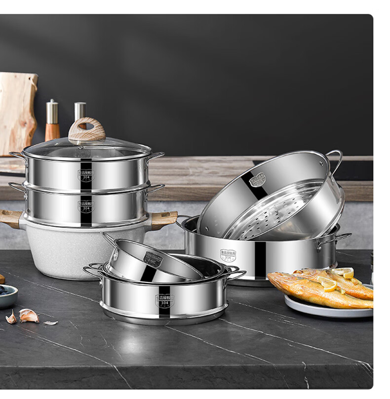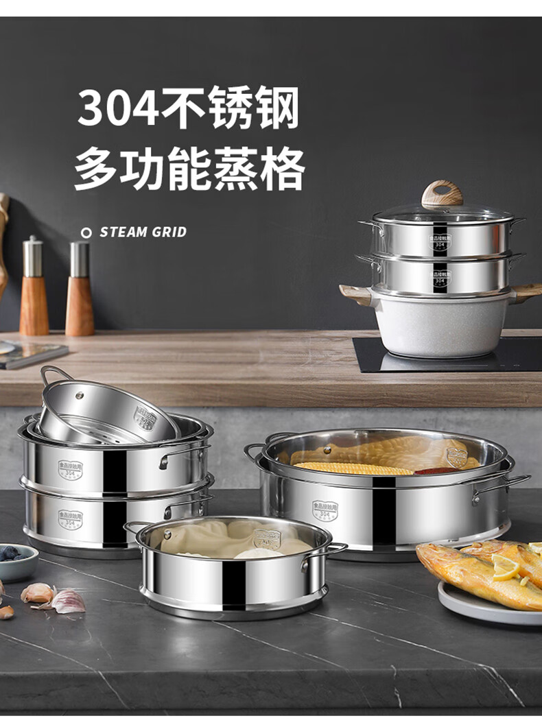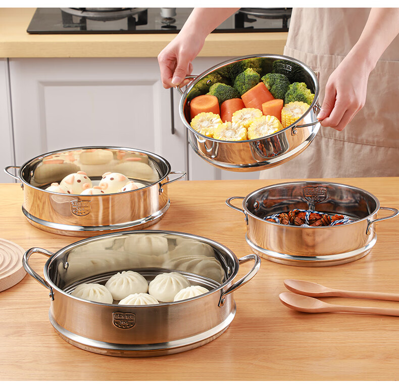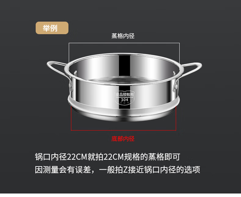 日禾盛唐蒸屉家用蒸锅蒸格蒸馒头蒸架蒸隔层蒸格小锅配耐用不锈钢蒸屉 304加厚28cm(配锅口径27.8-28.2cm)